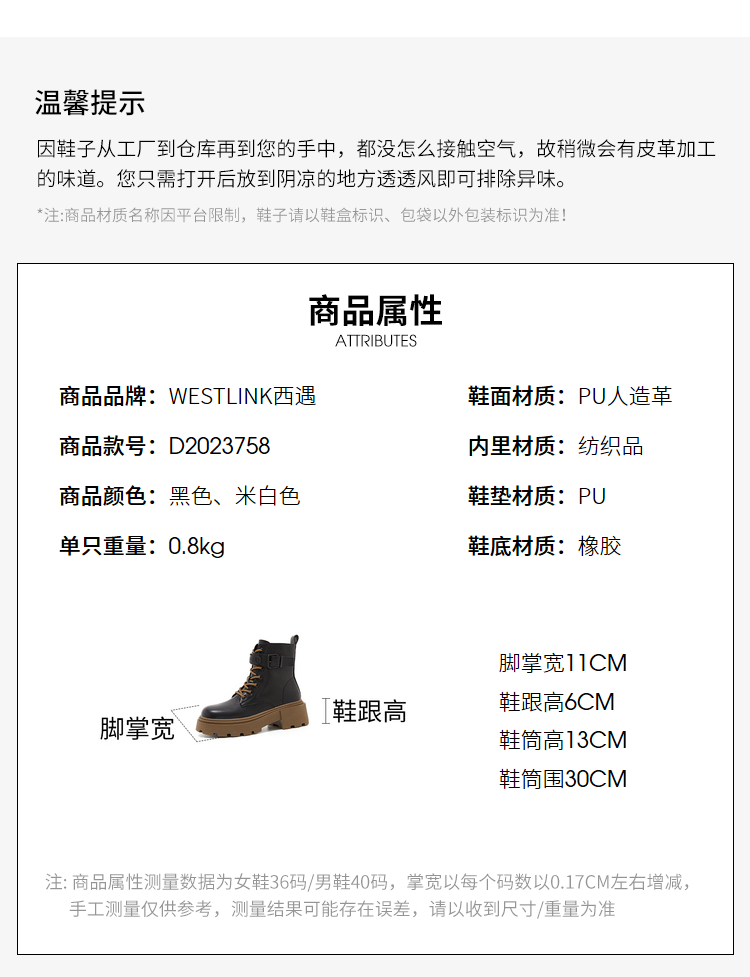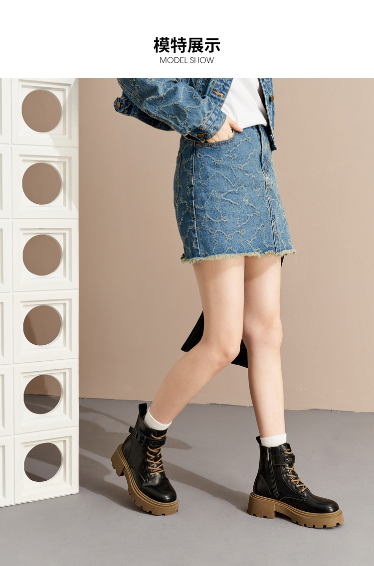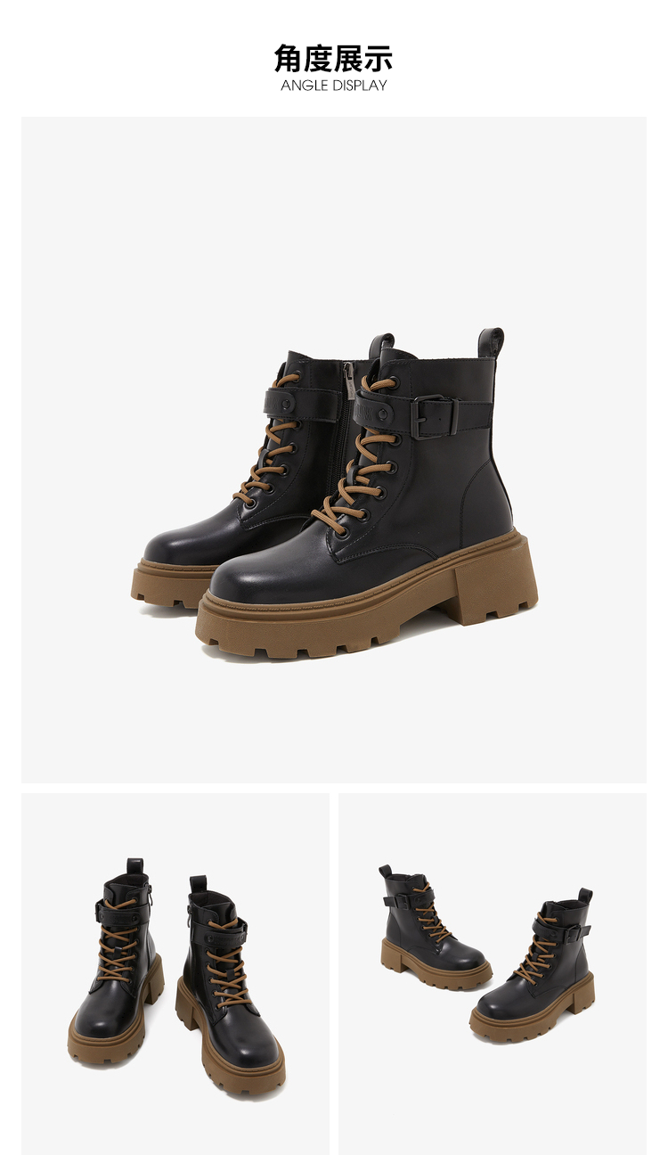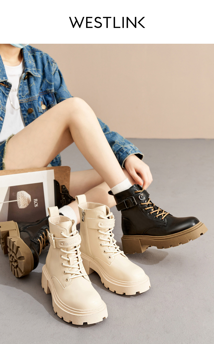 西遇厚底马丁靴女2022年秋冬季新款时尚百搭小个子粗跟帅气短筒靴D2023758