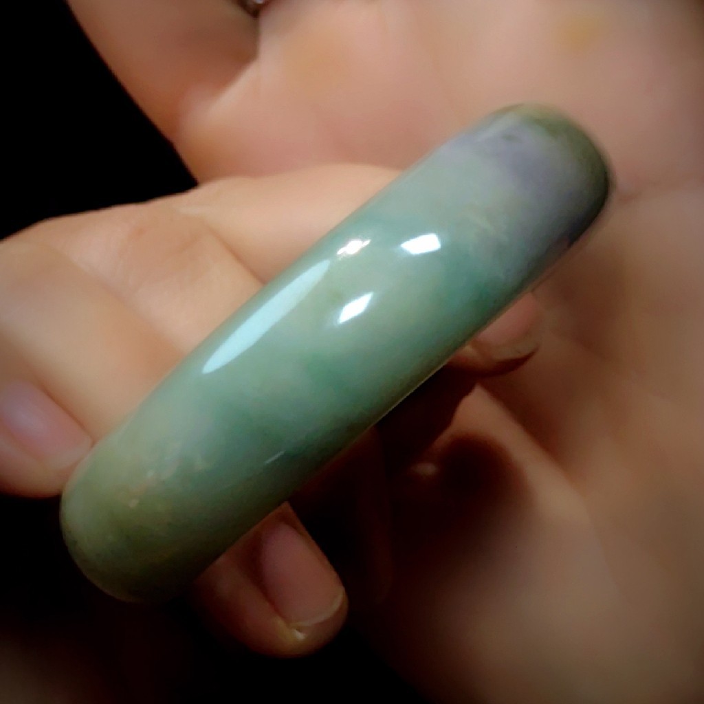 是一只糯种飘翠飘春色的宽版手镯,这只手镯比较挑剔肤色,皮肤白皙的小主会和手镯产生非常高级的化学反应,相互映衬出彩。