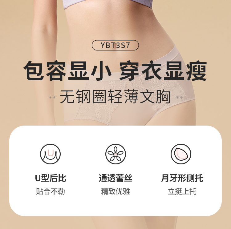 都市丽人内衣完美包容常规文胸锁边蕾丝超薄文胸3/4杯四排扣软钢圈YBT3S7