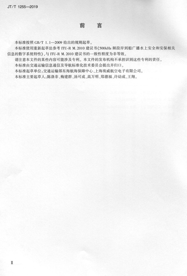书名:海上数字广播(NAVDAT)系统技术要求 JT/T1255——2019