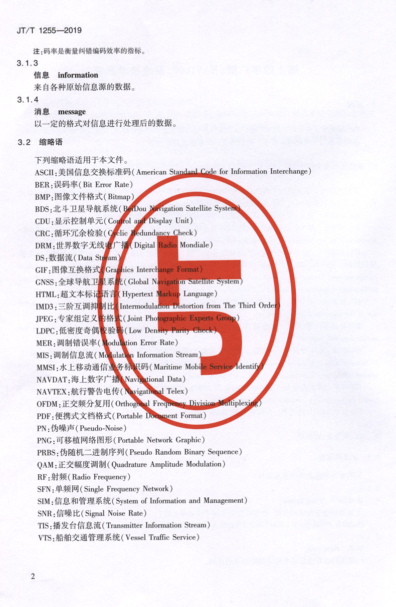 | 海上数字广播(NAVDAT)系统技术要求 JT/T1255——2019 | ||