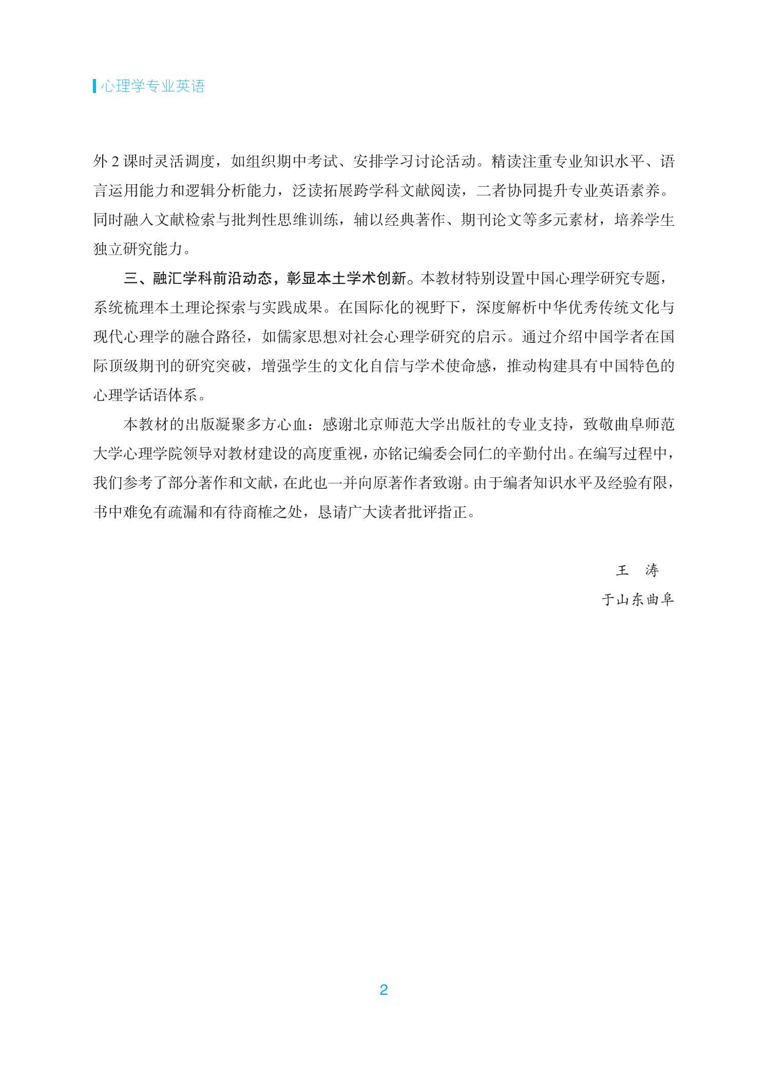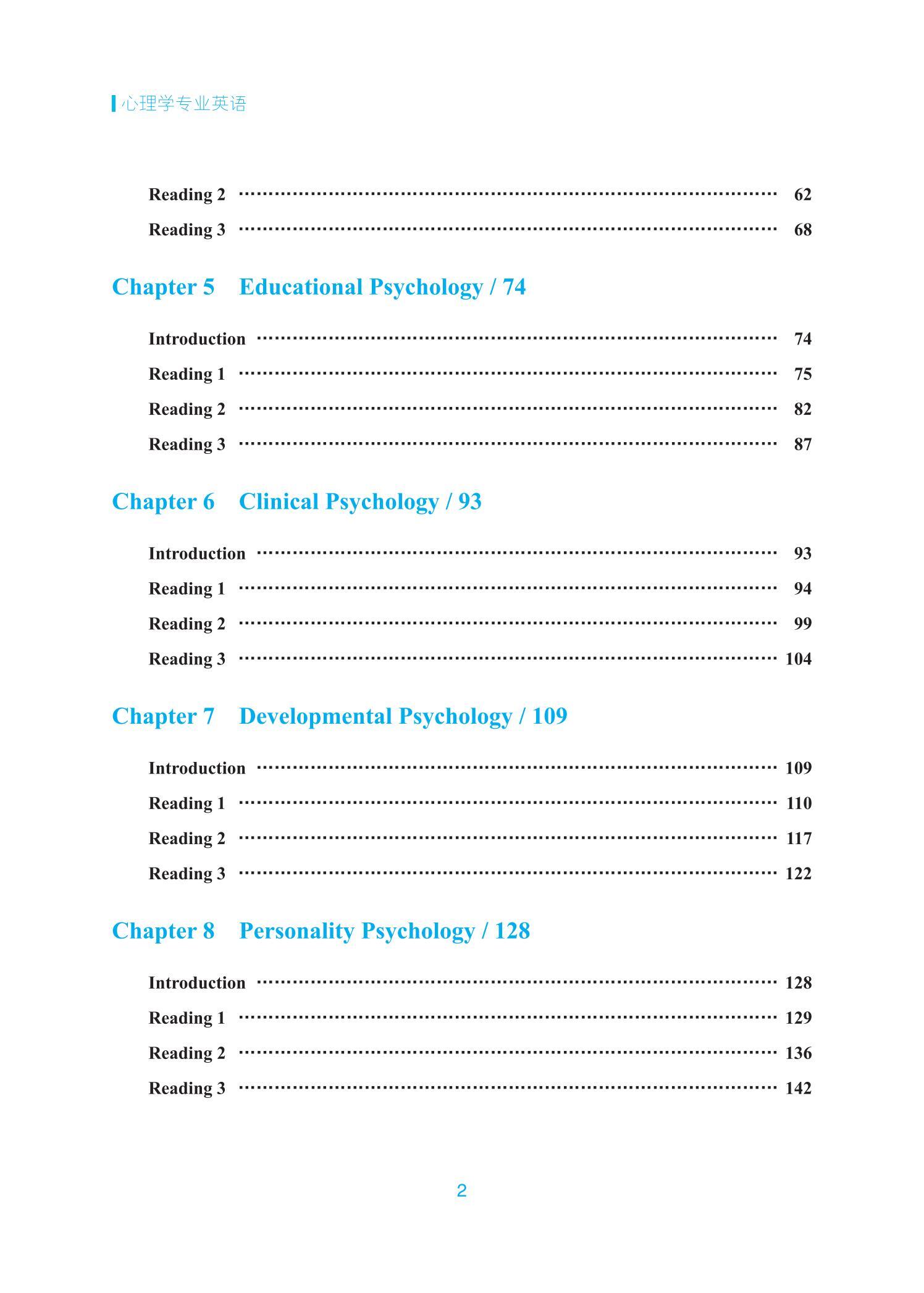 《心理学专业英语》是面向心理学专业的本科生和硕士生的心理学专业英语教材,力图培养学生运用英语处理心理学专业信息的能力,激发学术探索精神,引导学生成长为兼具专业素养与使命担当的心理学人才。