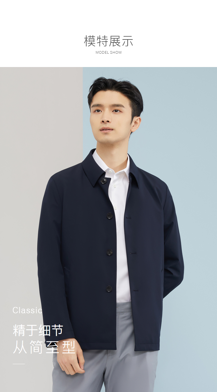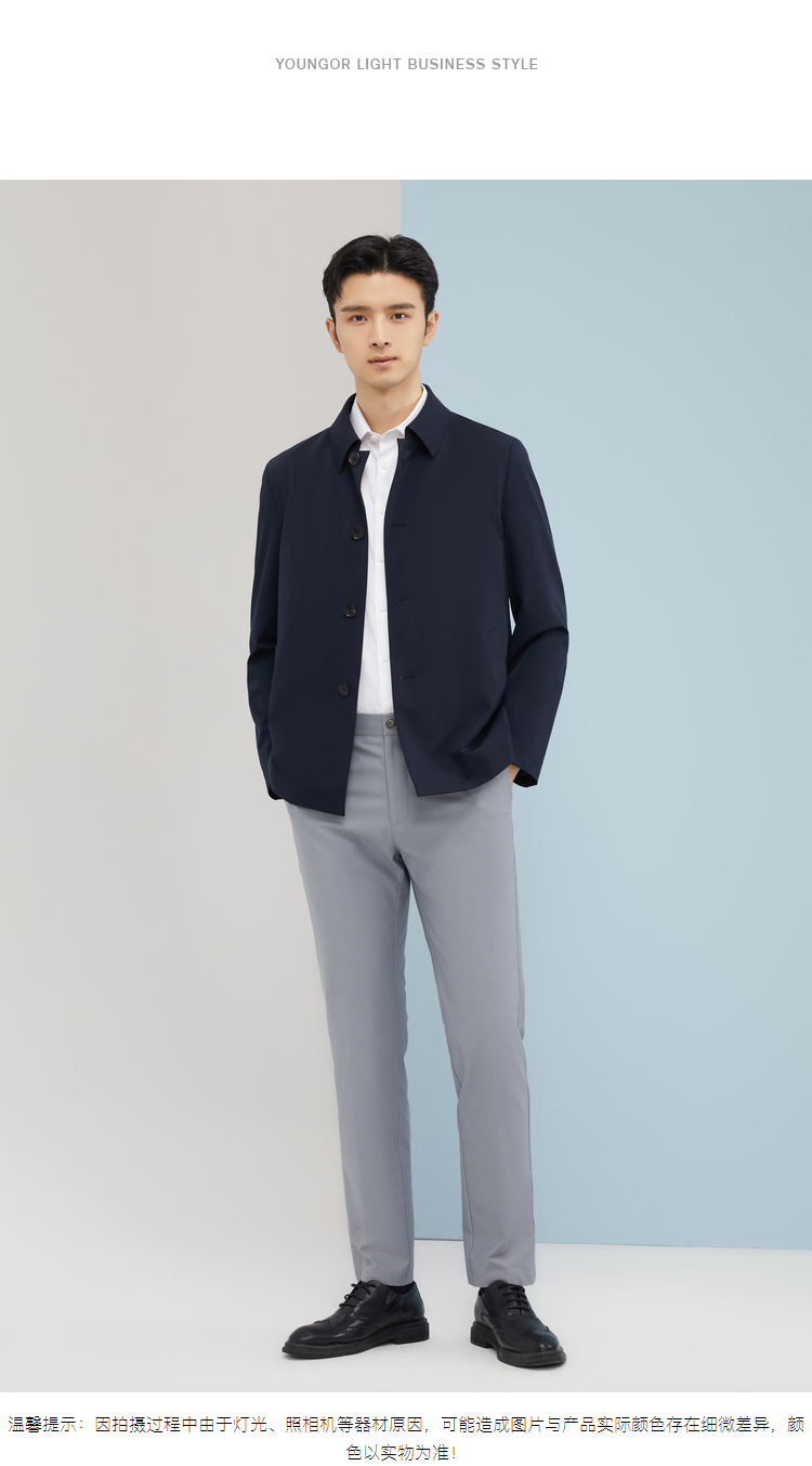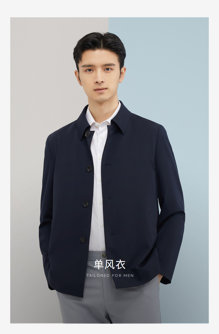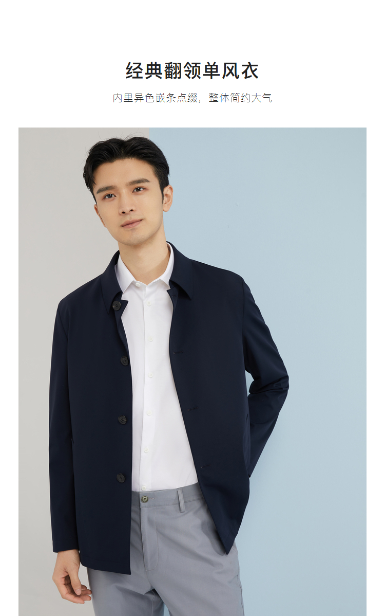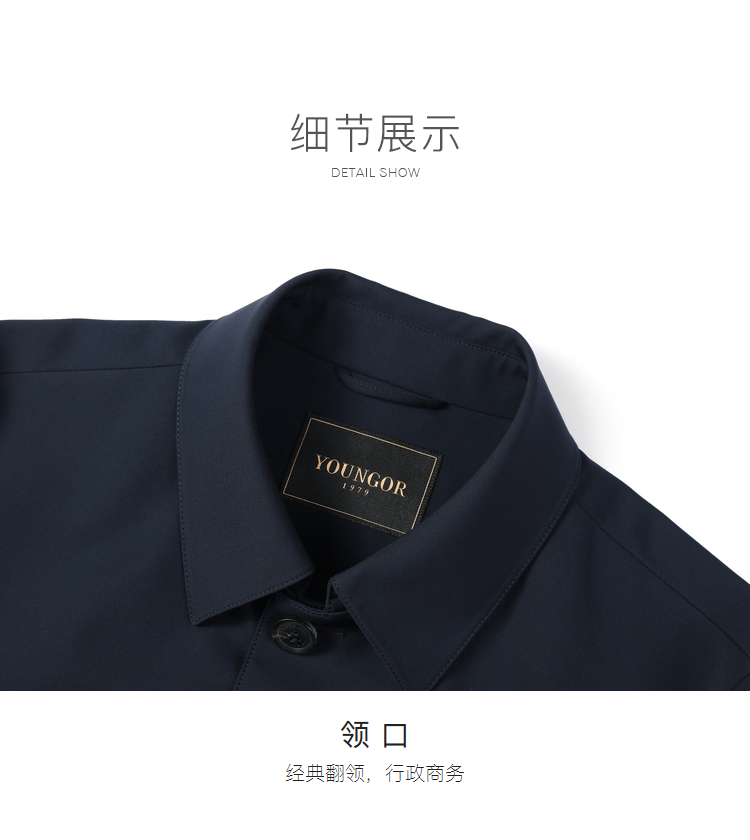 雅戈尔男士春翻领素色风衣标准版YYDF470094FQA