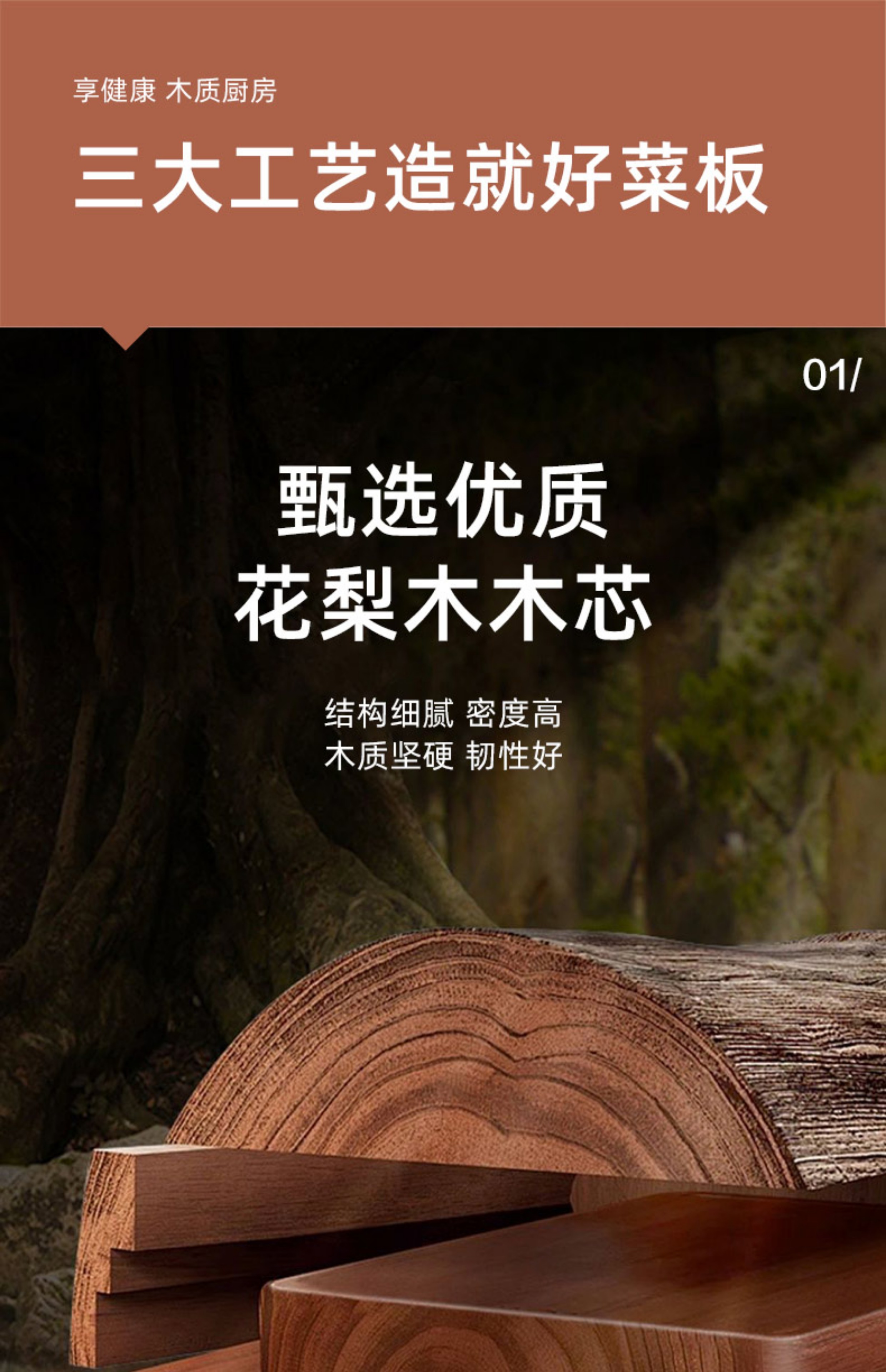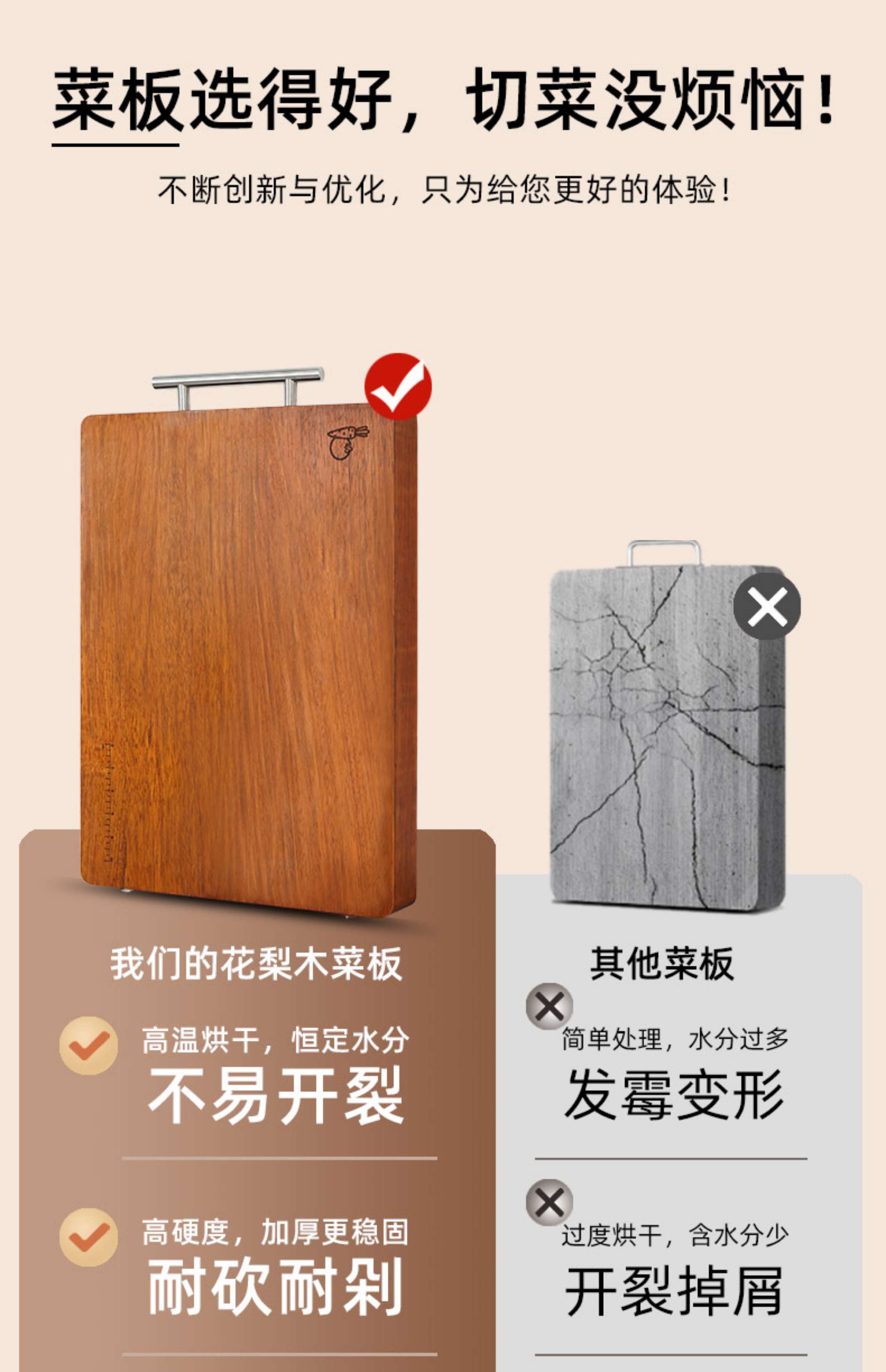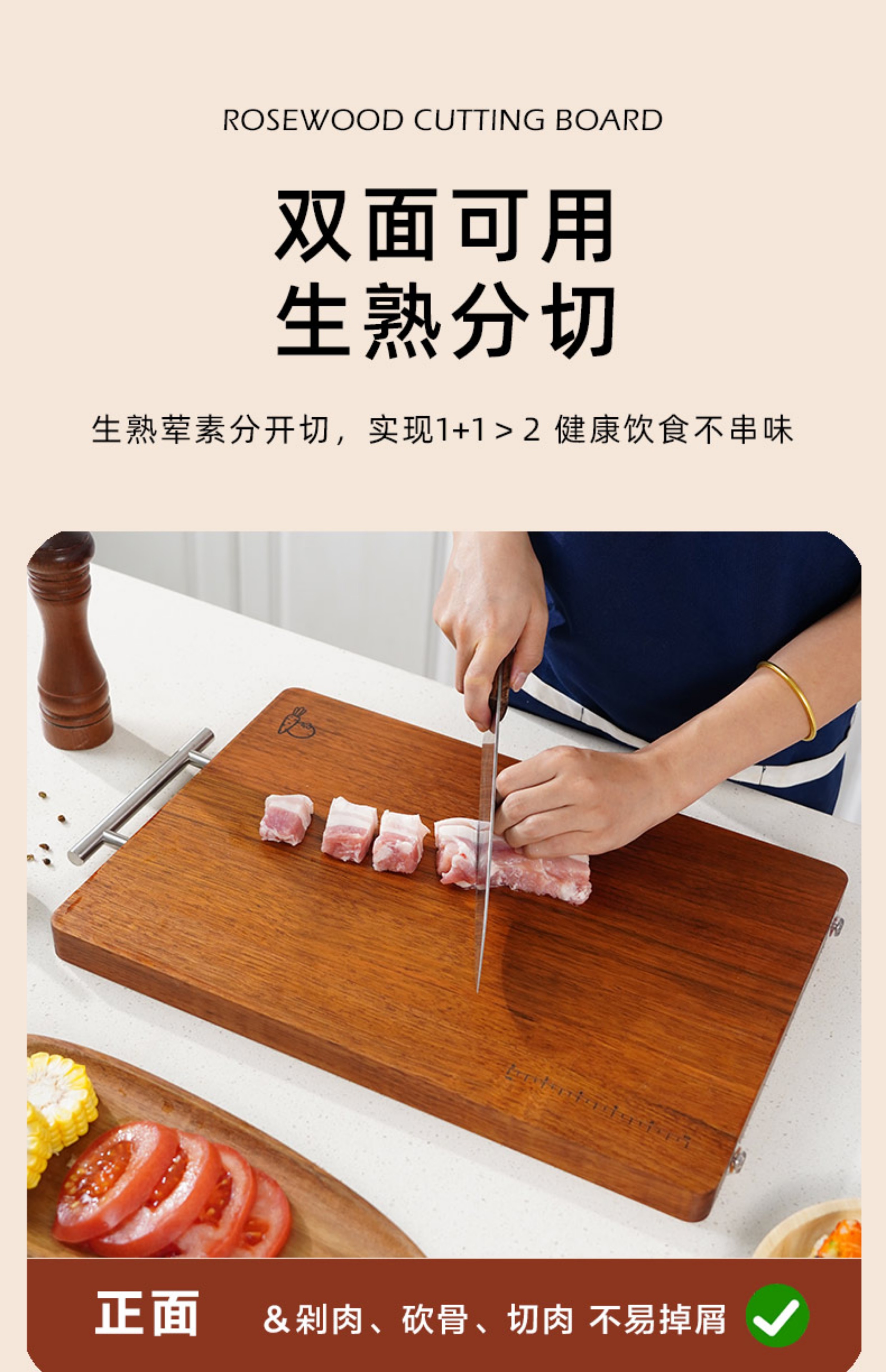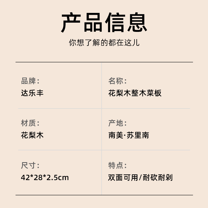 达乐丰花梨整木菜板砧板可砍剁40*28*2.5cm【不支持补差,非质量问题不退不换】S