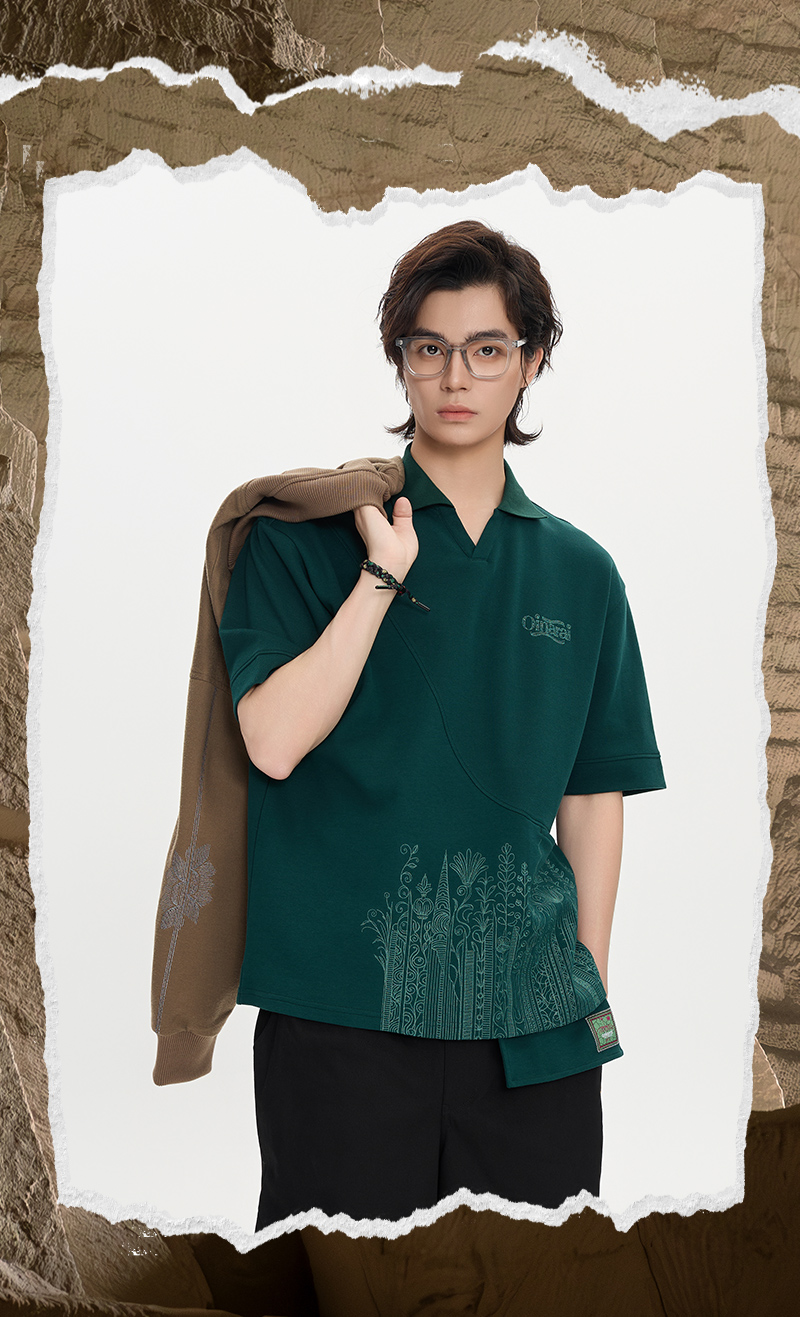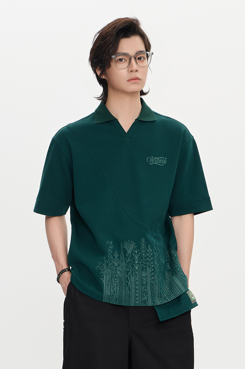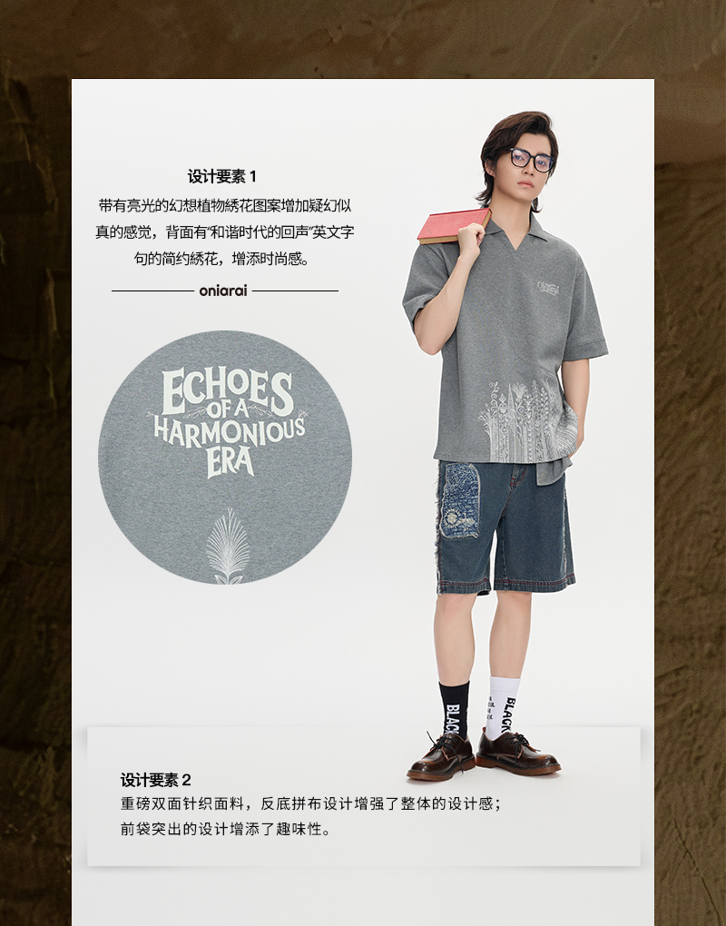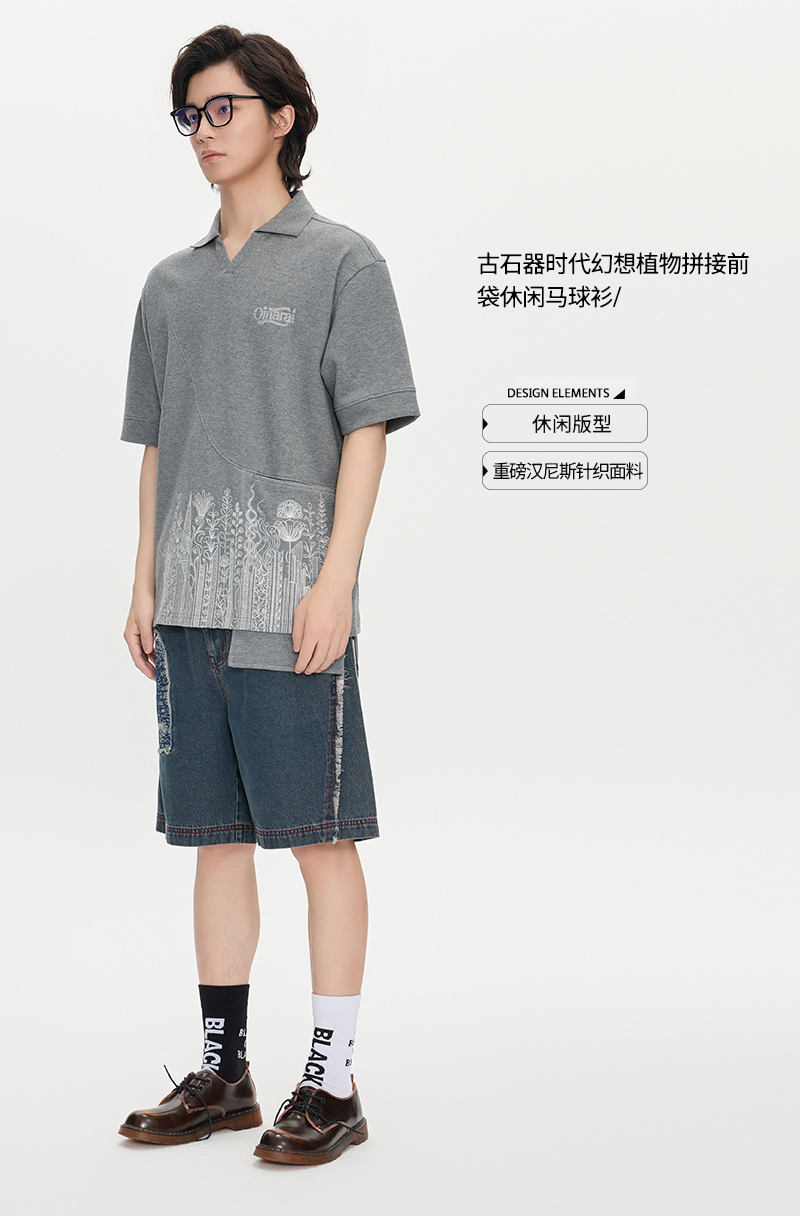 ONIARAI/鬼洗25秋季黑标幻想植物拼接前袋休闲马球衫男 A840021