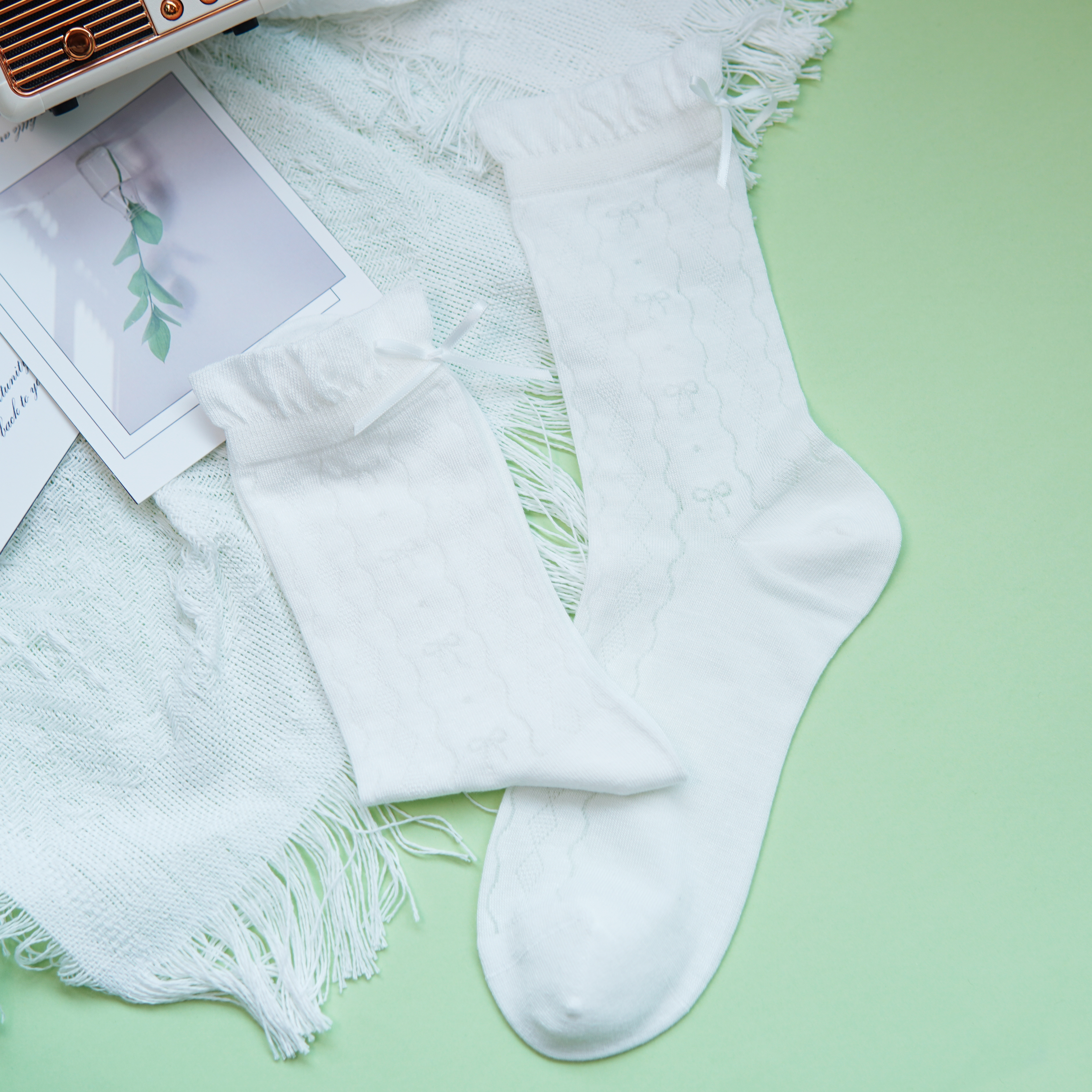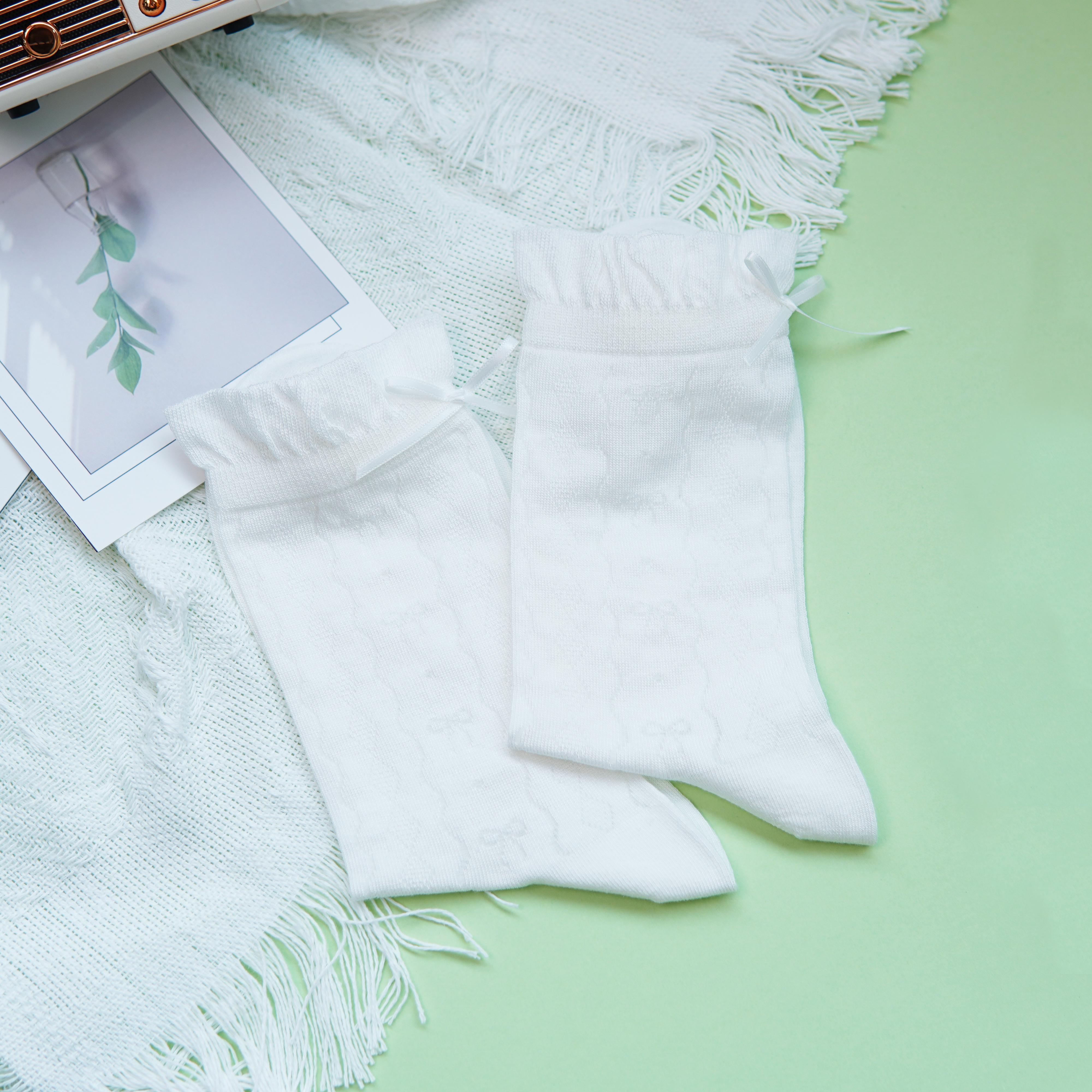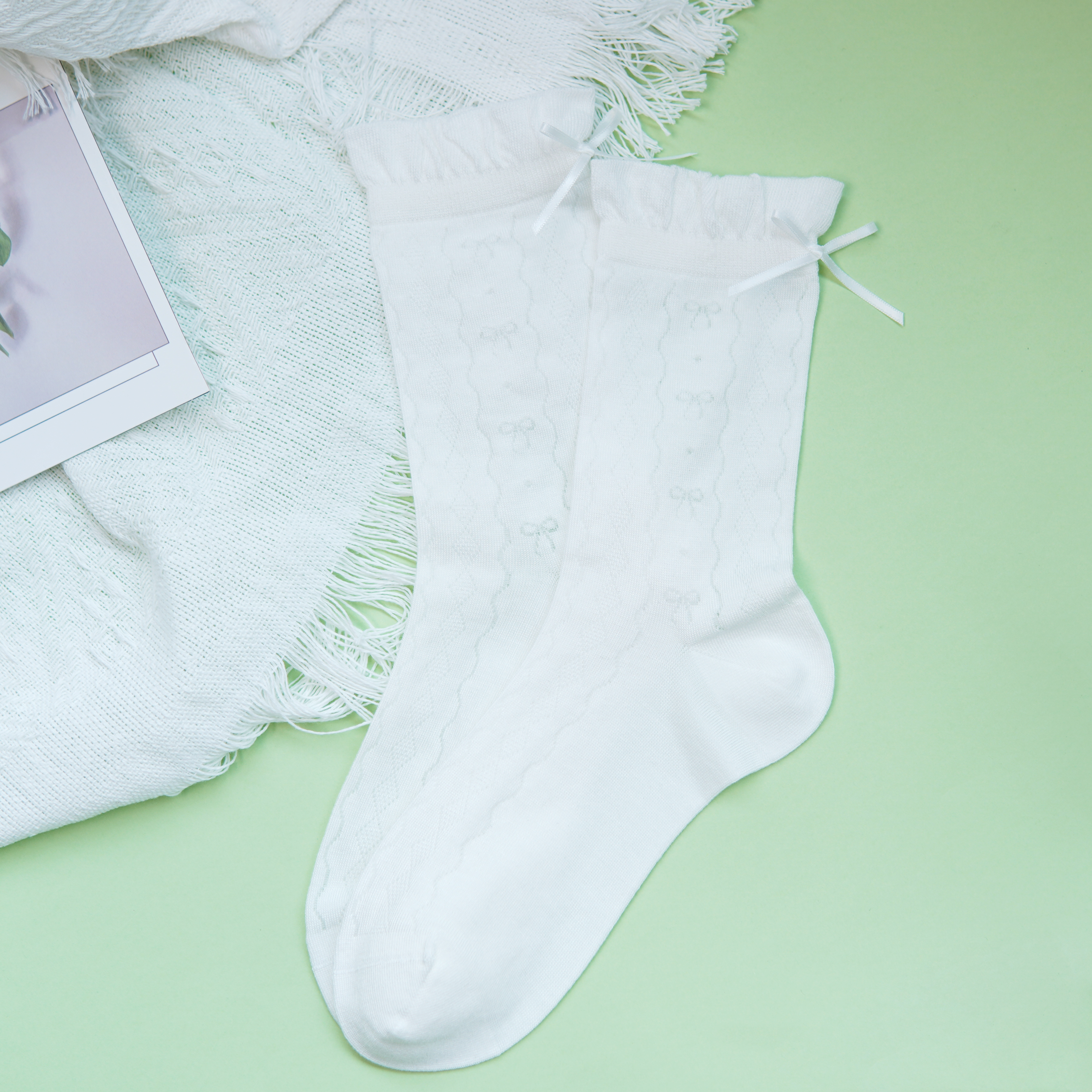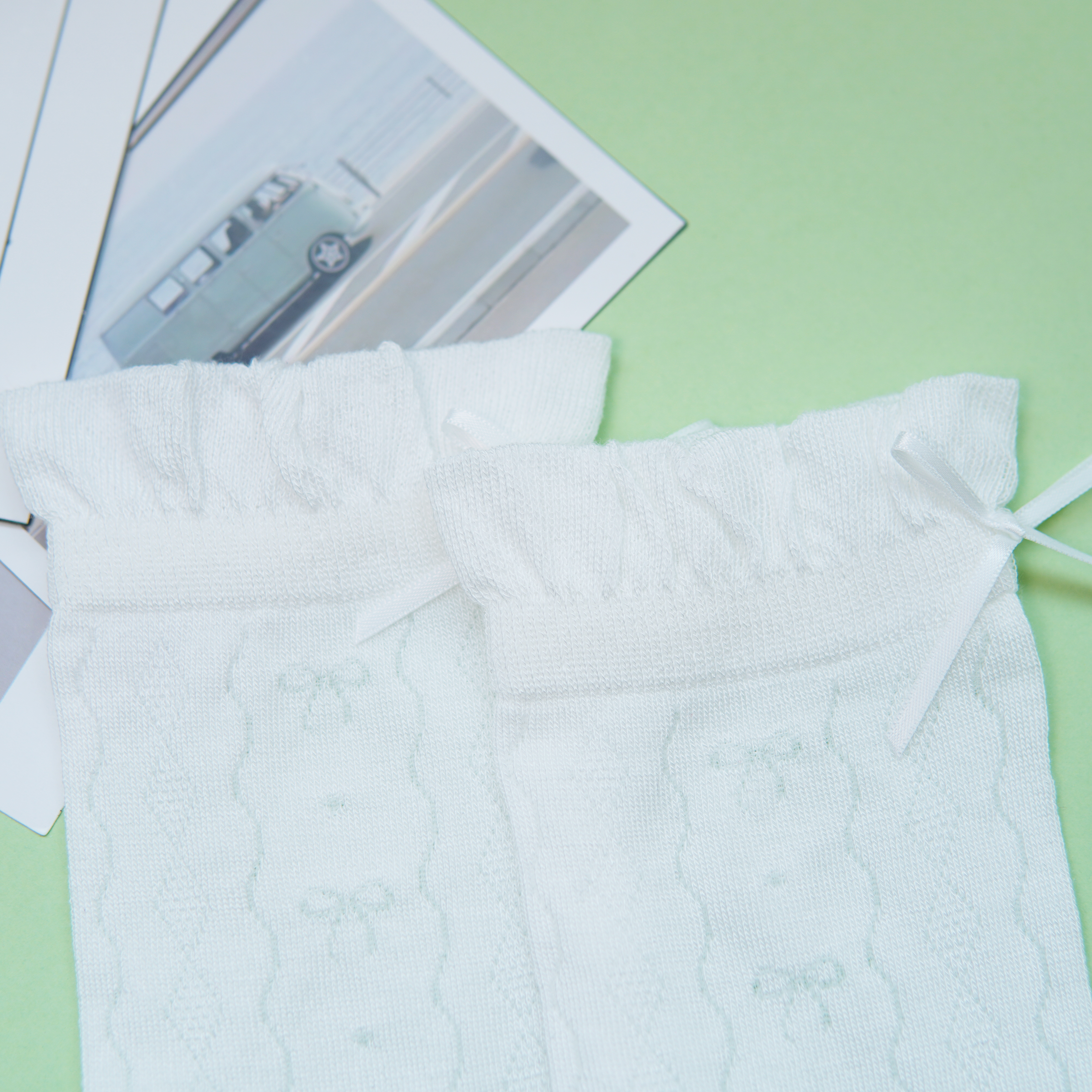 【59元3双】女士春夏时尚堆堆袜蝴蝶结荷叶边薄袜舒适百搭女袜【2612501】
