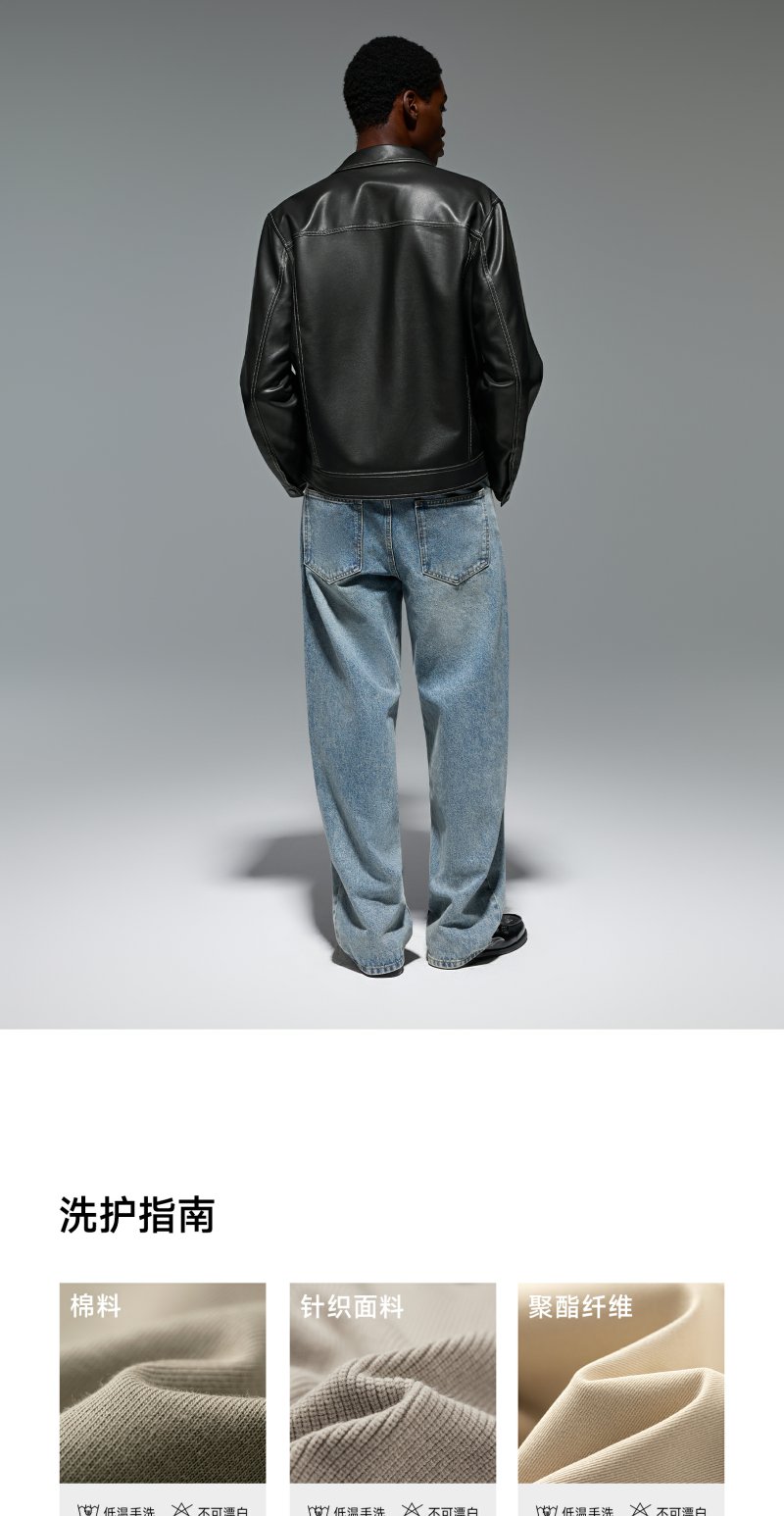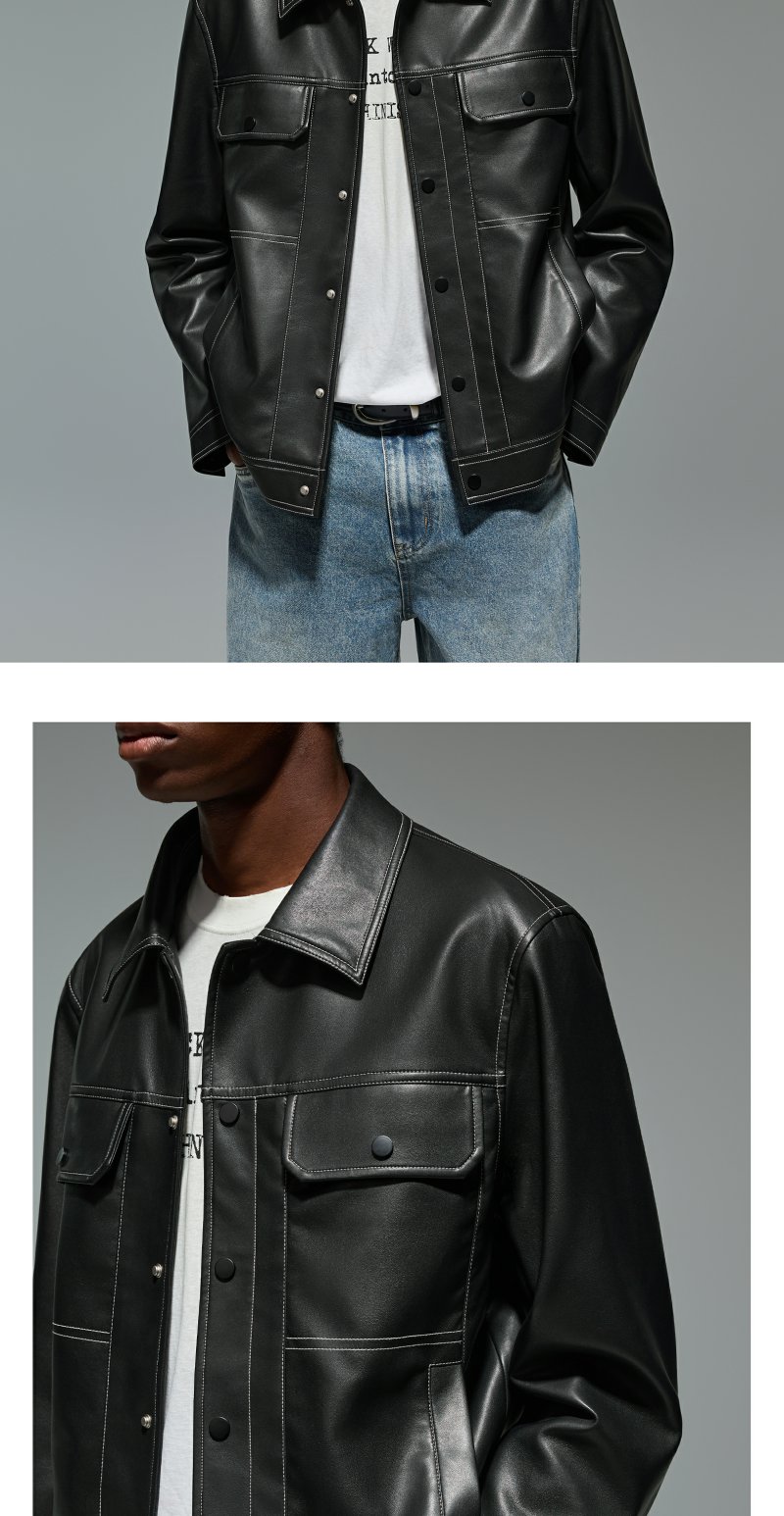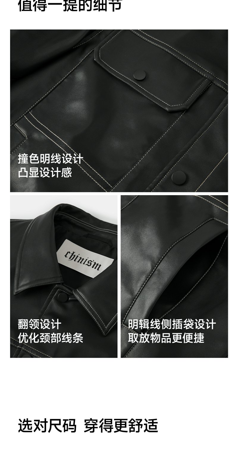 CHINISM赤尘 黑色合体PU皮机车夹克男秋季新款美式翻领皮衣外套