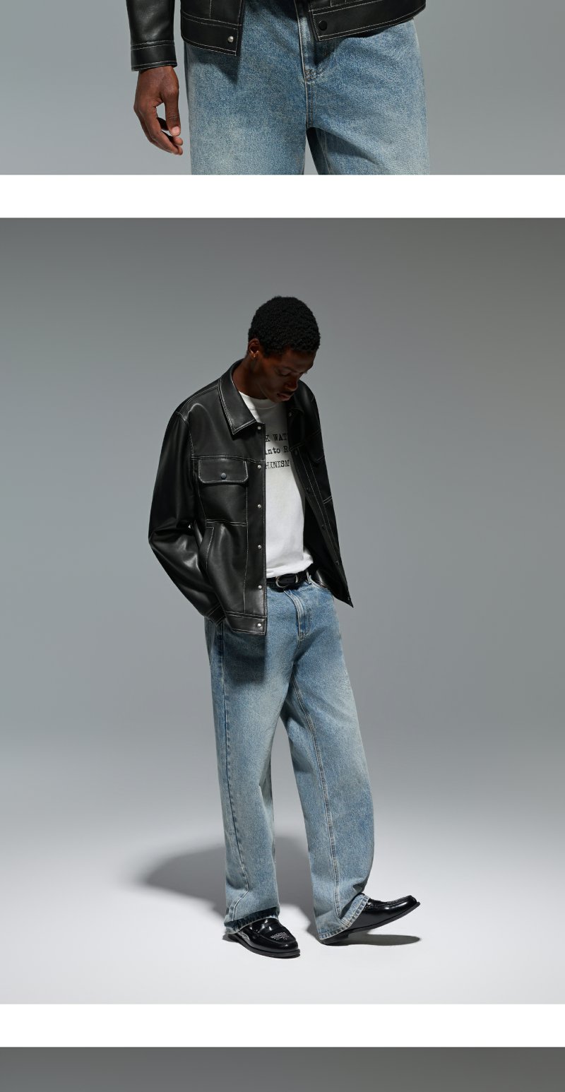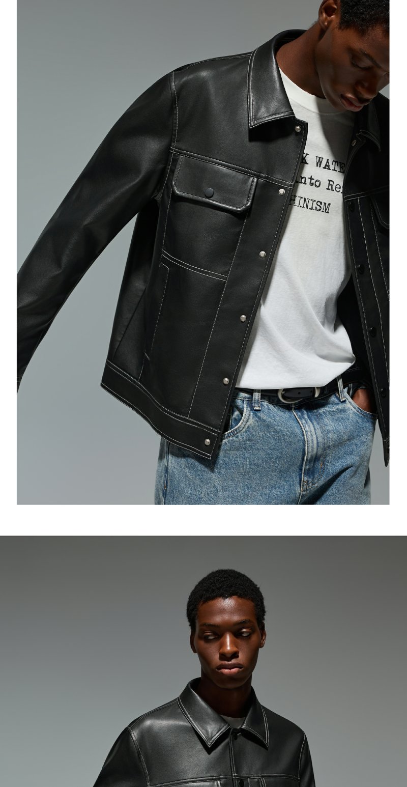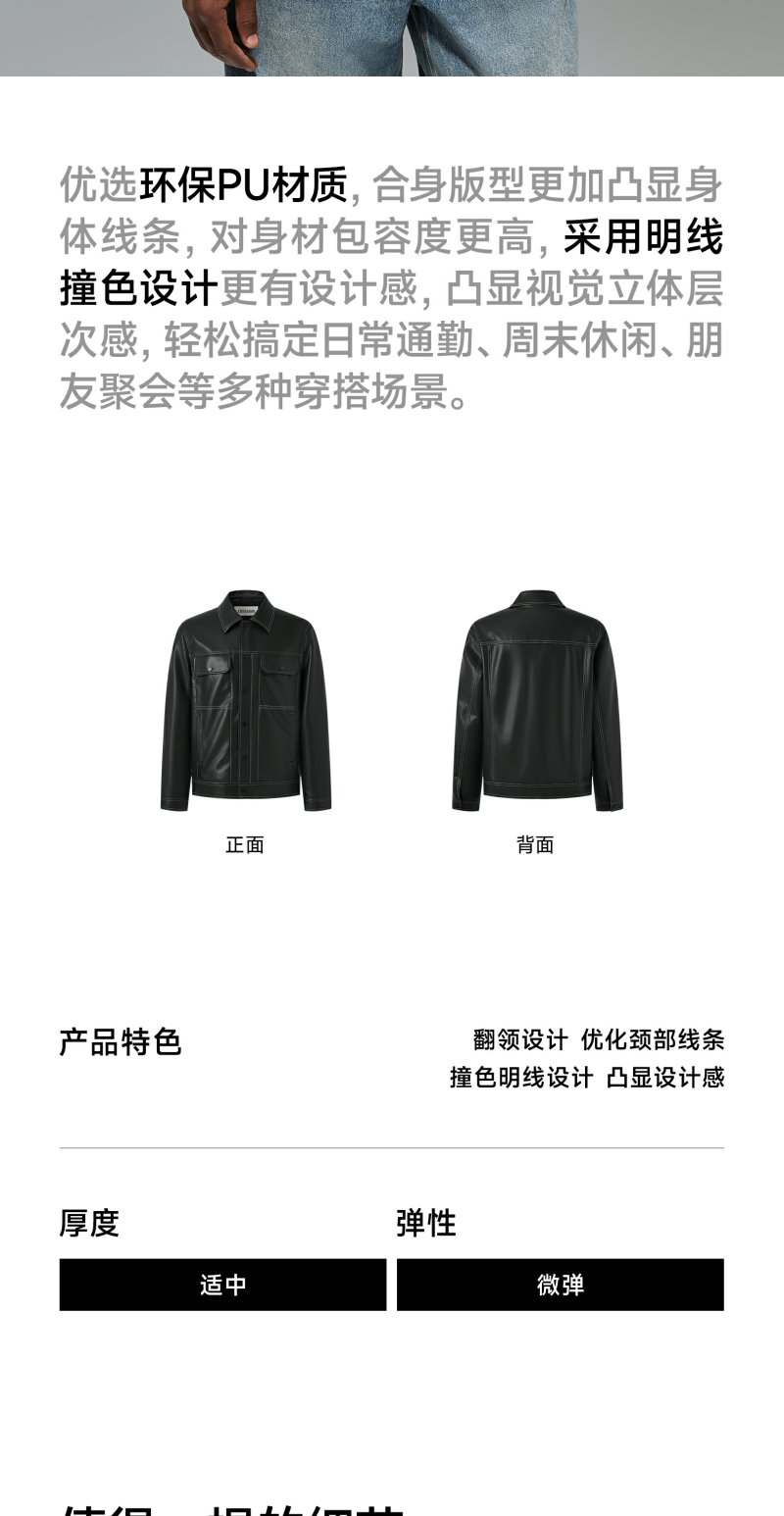 CHINISM赤尘 黑色合体PU皮机车夹克男秋季新款美式翻领皮衣外套
