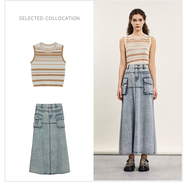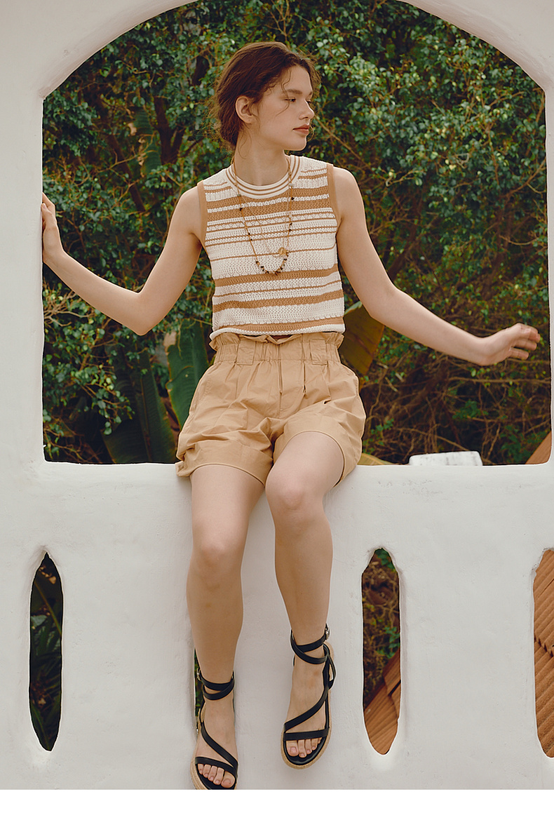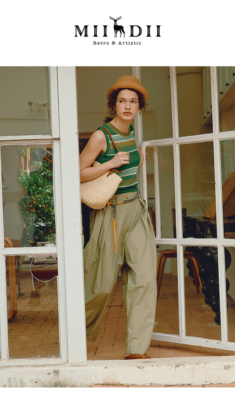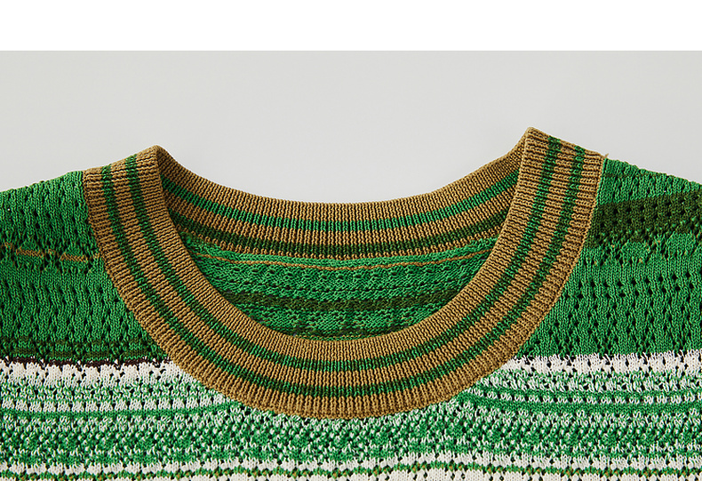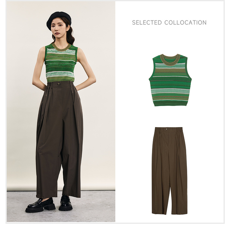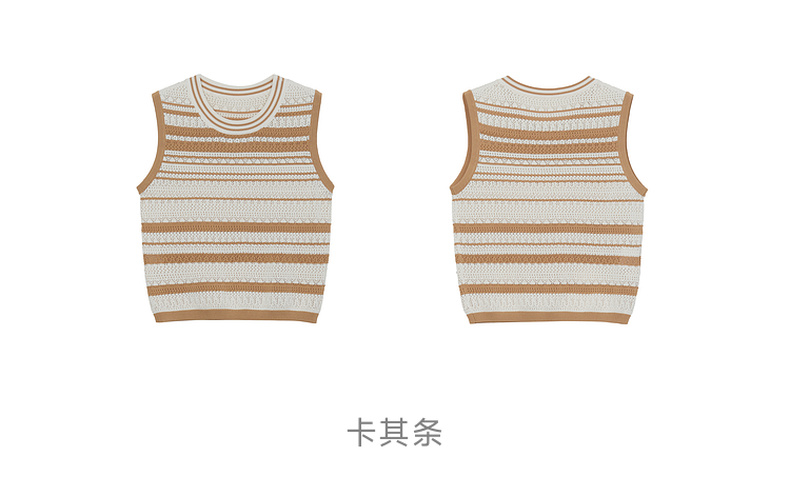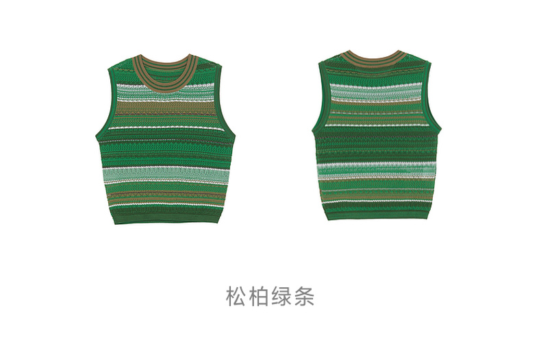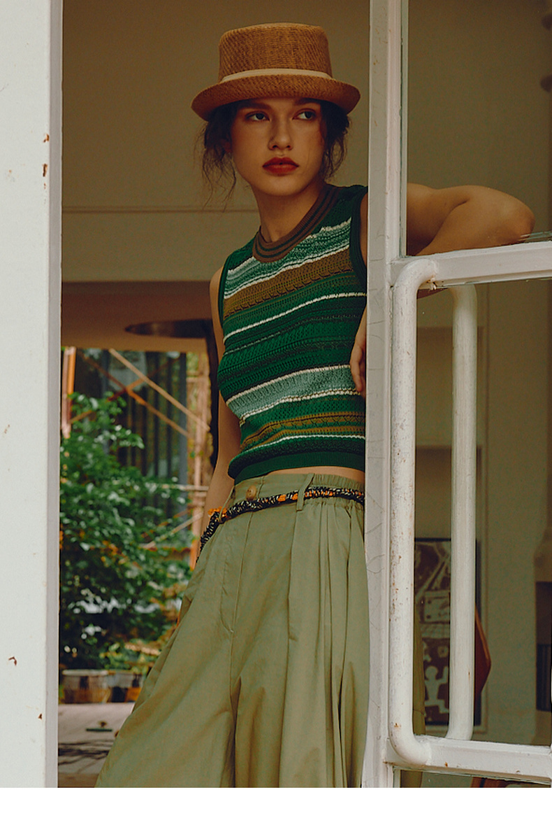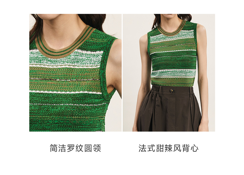 谜底套头针织衫无袖女2024夏款复古文艺风圆领条纹背心242MZ0854