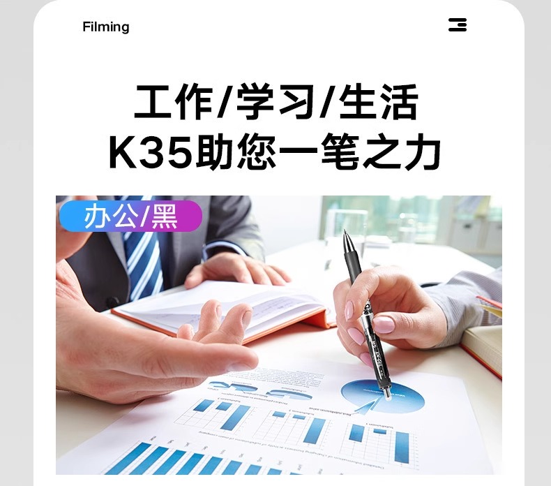 晨光K35按动中性笔0.5/0.7黑/蓝/红/墨蓝签字笔会议笔学生学习教师办公用笔1支/12支