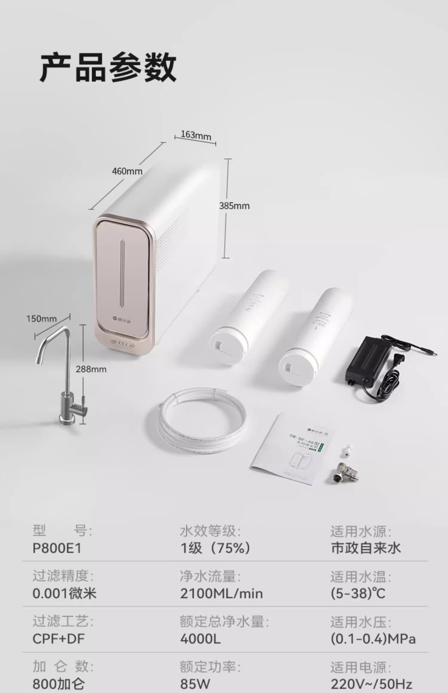 碧水源 P2保留矿物质的净水机纳滤净水机家用直饮800G厨下净水器