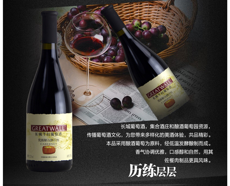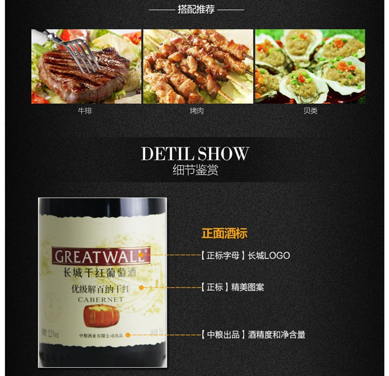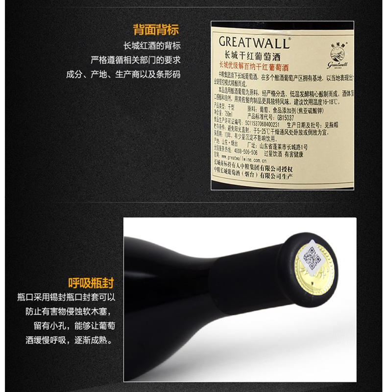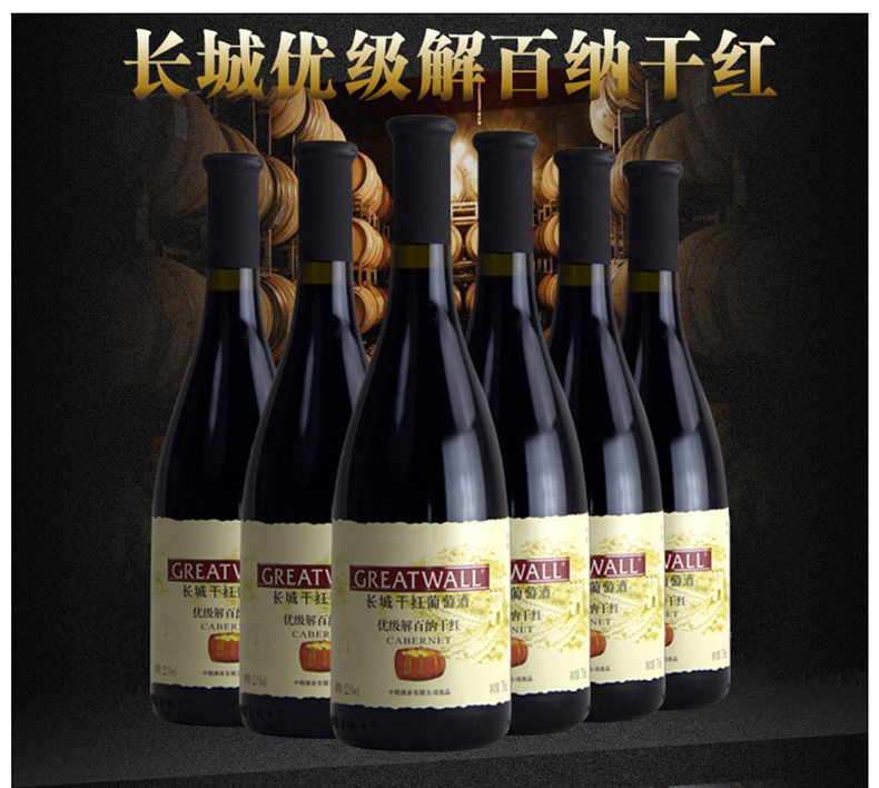 长城优级解百纳干红葡萄酒大肚瓶 整箱6瓶*750ml包邮特卖