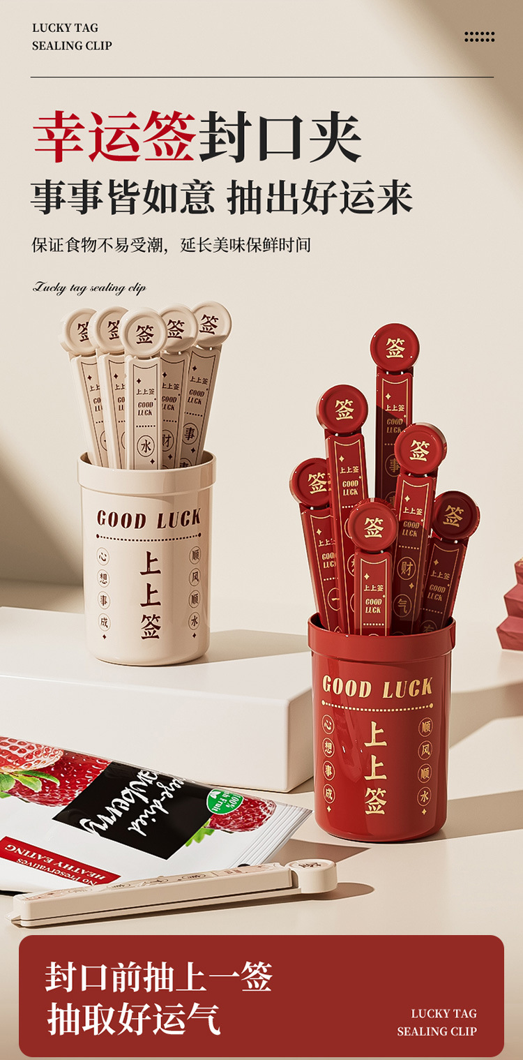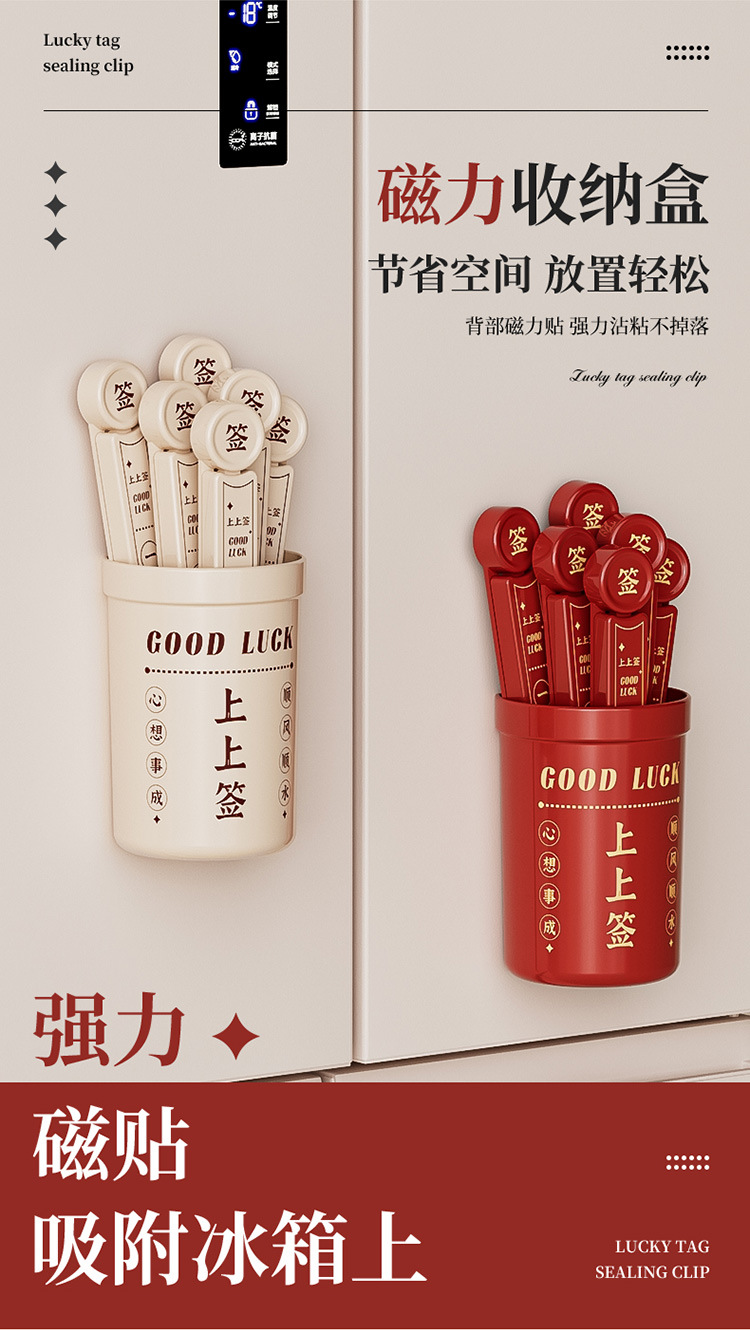 【磁力收纳盒❗️好运抽出来】新年春节幸运签封口夹食品密封夹食物保鲜袋茶叶封口防潮拼豆收纳新款。jc
