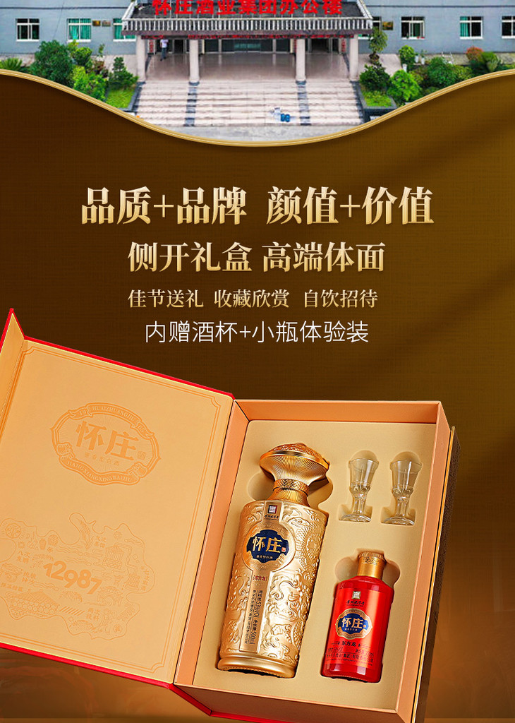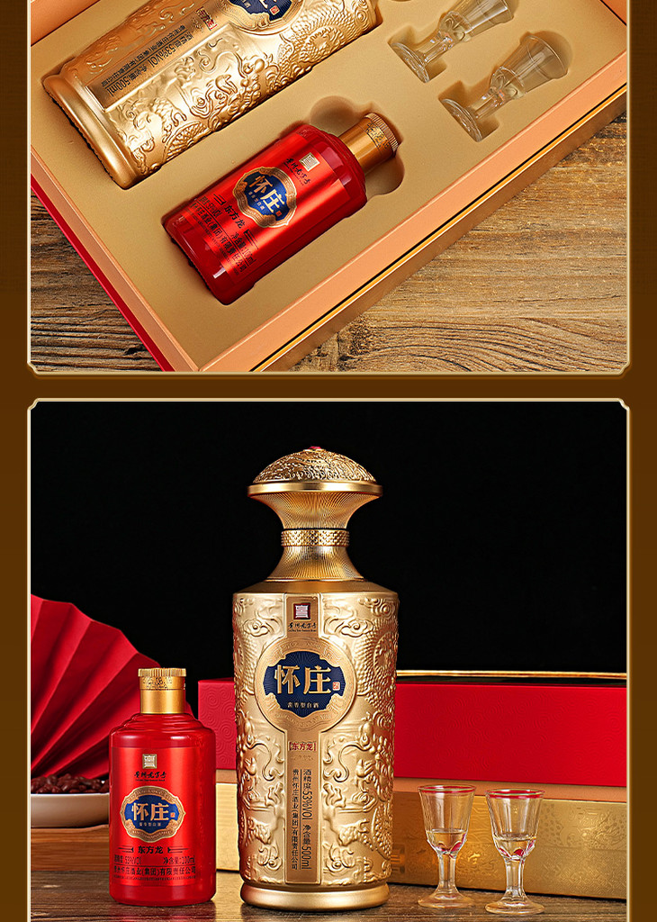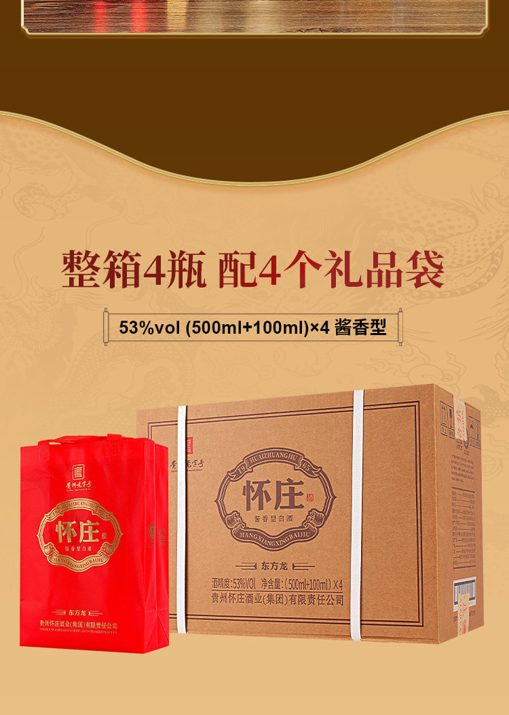 【怀庄酒·东方龙 】| 53°酱香型白酒,500ml/500ml*4盒,赠酒杯+100ml体验装原箱发货,礼盒包装
