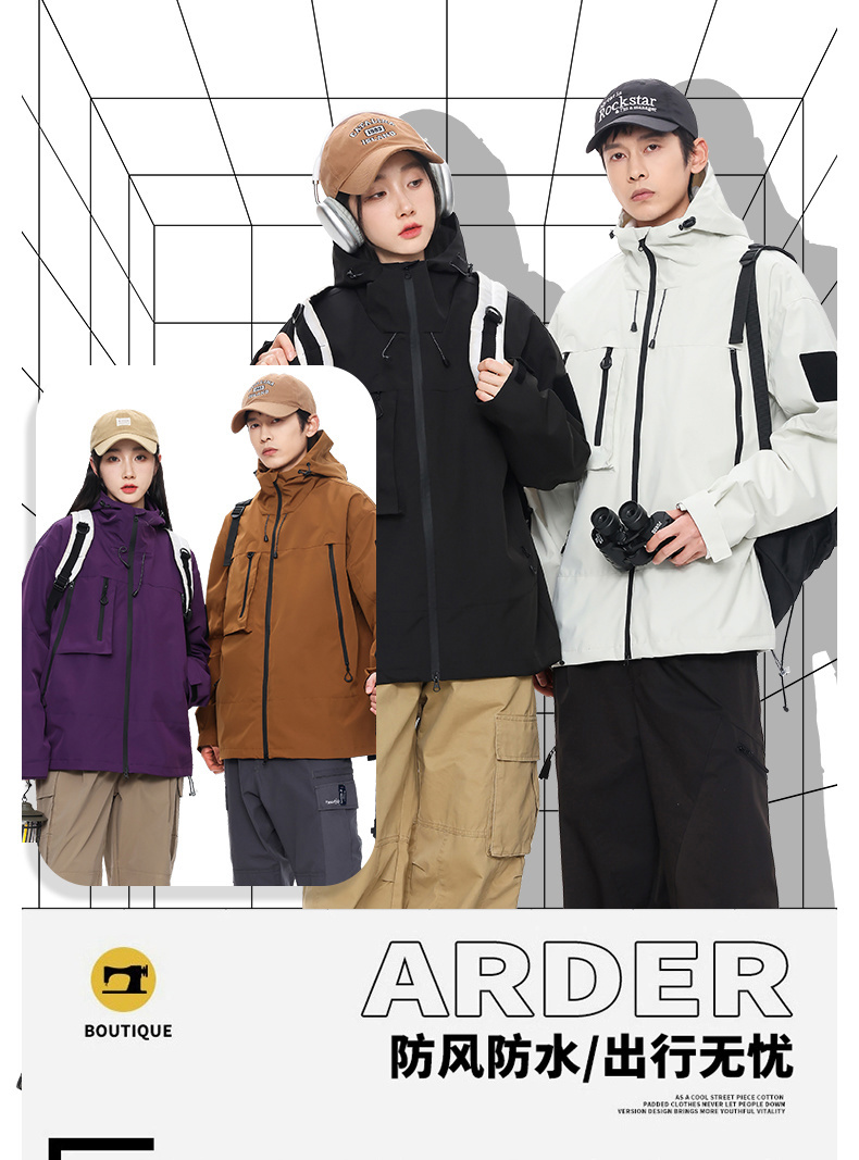 捡漏⚠️鸟同款🔘情侣山系撞色冲锋衣 客供柔韧梭织面料 三防面料 挺括有质感 高颜值高品质外套