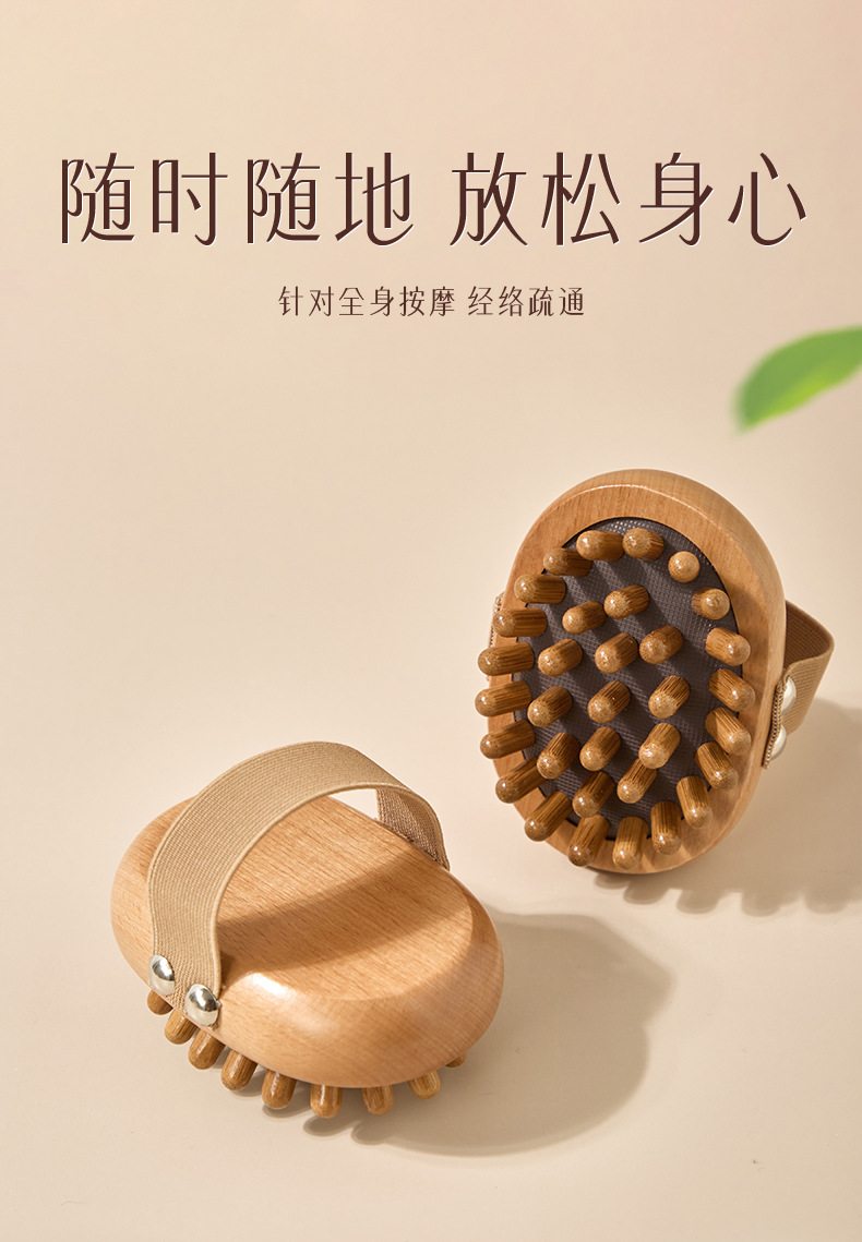 经络刷肚子木质气囊头皮按摩刷子五行身体经络疏通揉腹部刷腿神器
