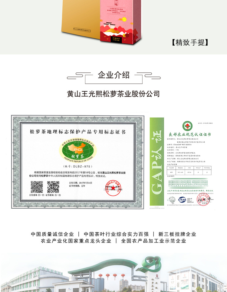 - 专注做茶近30年,连续十多年蝉联中国茶叶行业百强企业称号,是农业产业化国家重点龙头企业,通过ISO9001、ISO14001、ISO45001等体系认证。