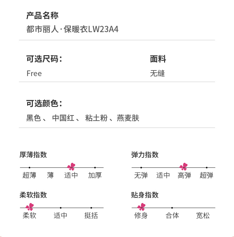 都市丽人强暖负15至负5度女士正价无缝无缝面料厚套装保暖衣LW23A4