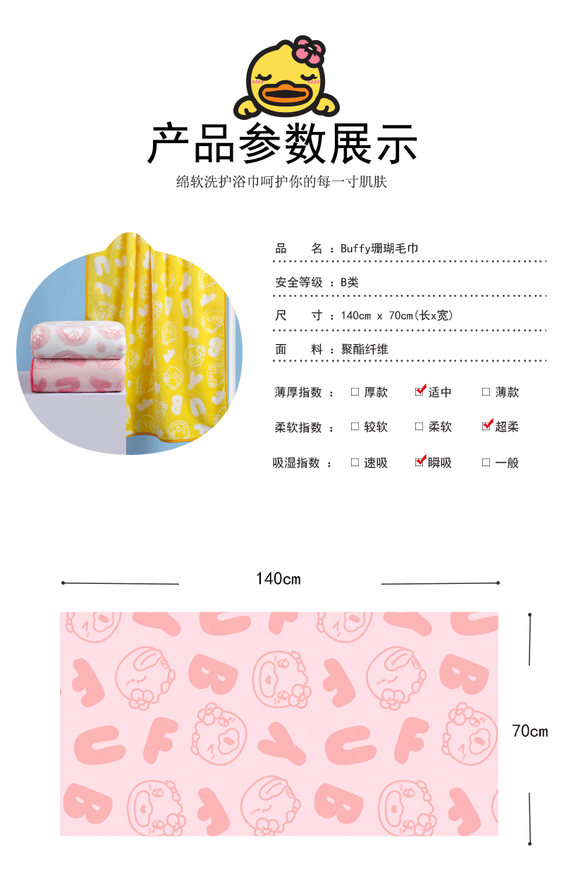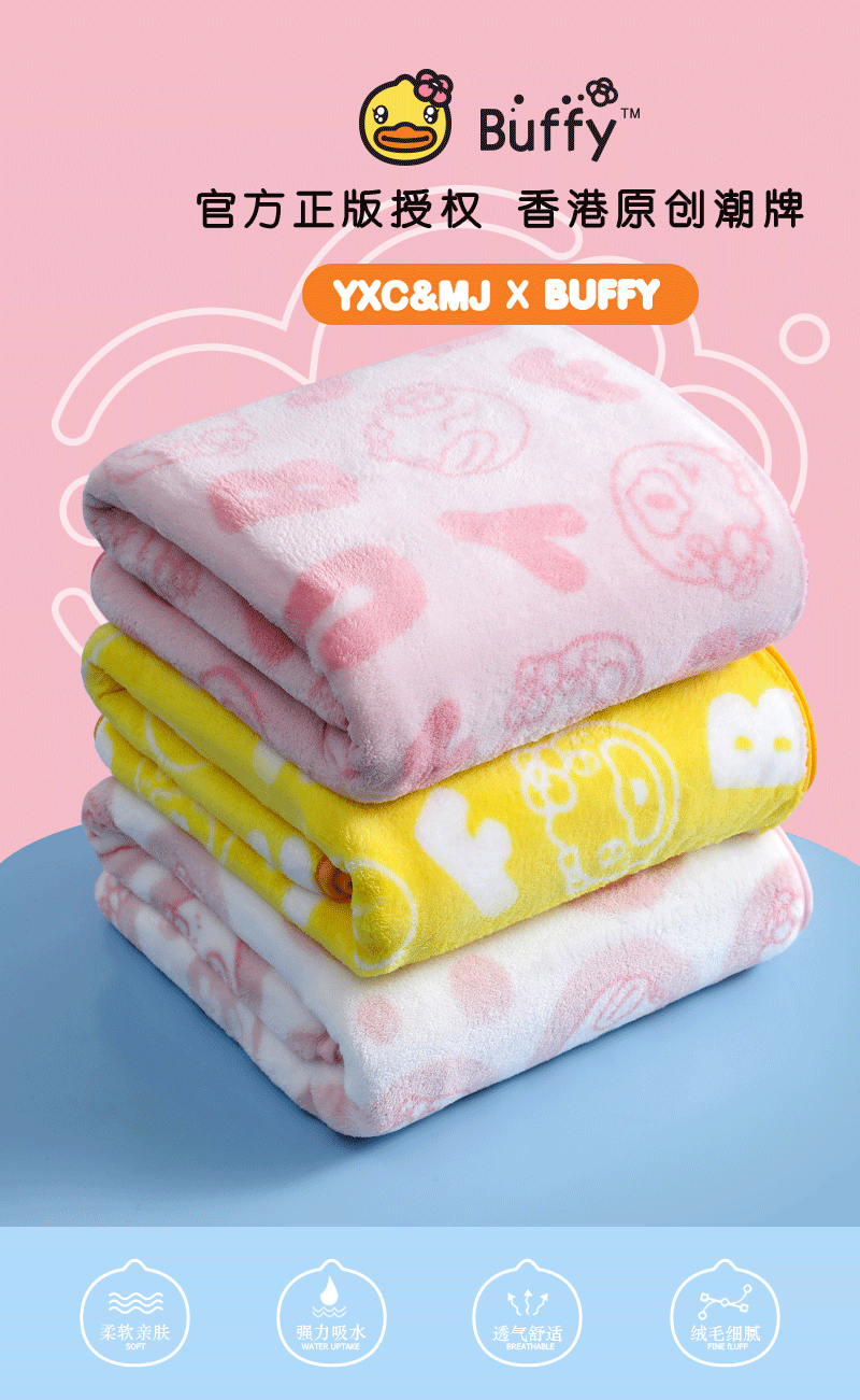 (小黄鸭联名正版)四季225羽兴诚珊瑚绒浴巾*1条