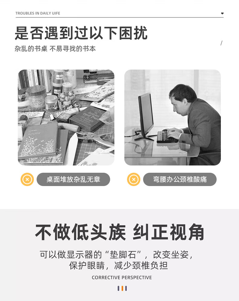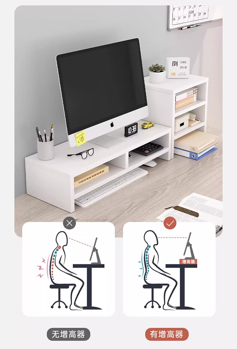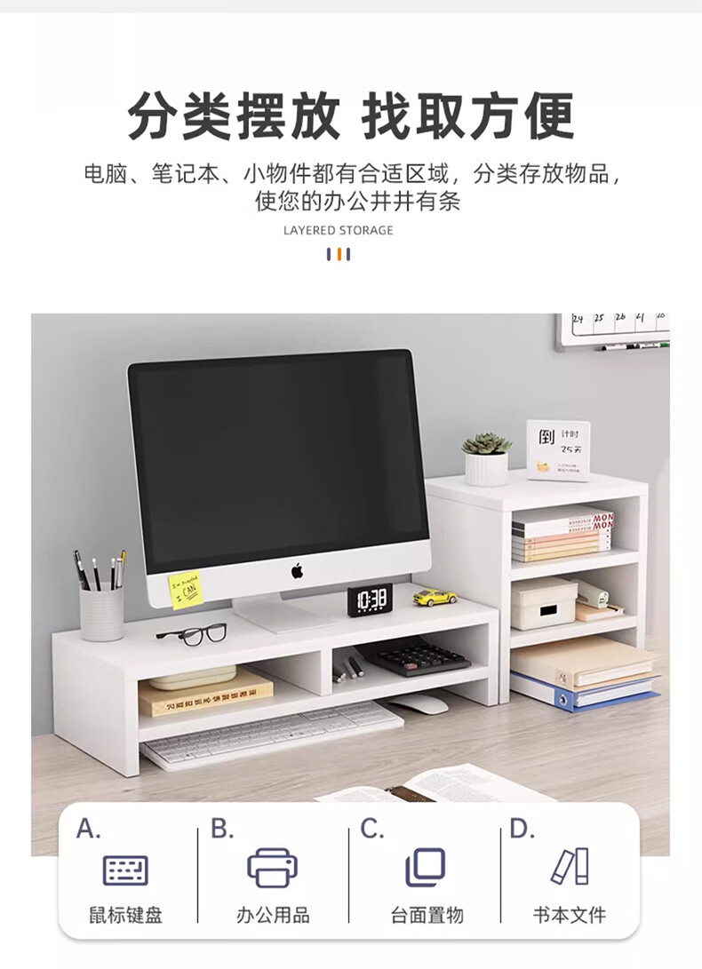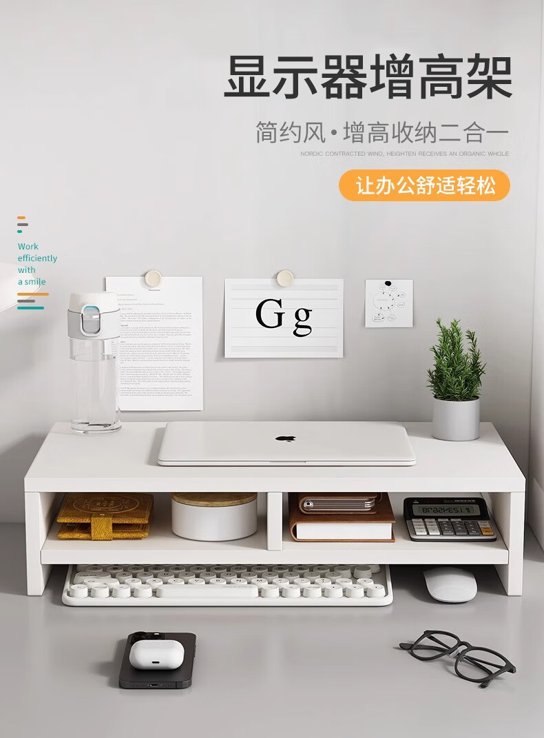 京佳宜电脑显示器增高架台式屏幕双层支架办公桌面储物架子收纳托架 100132692470