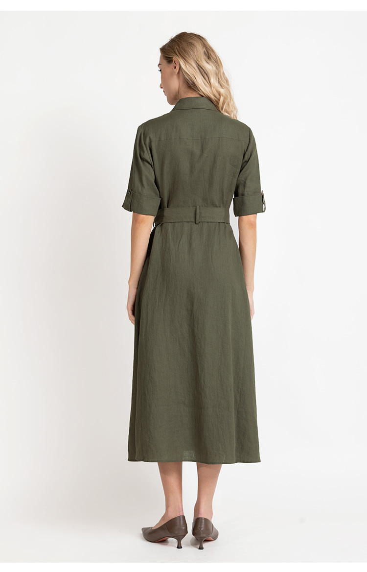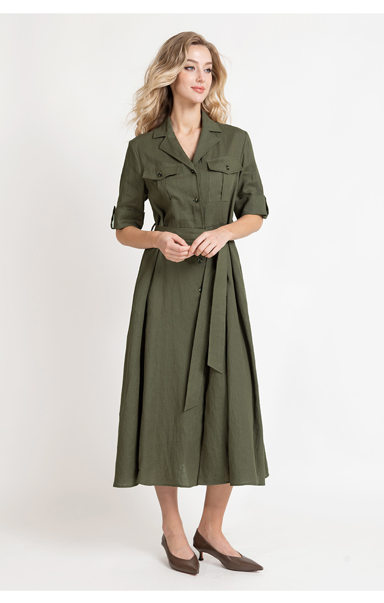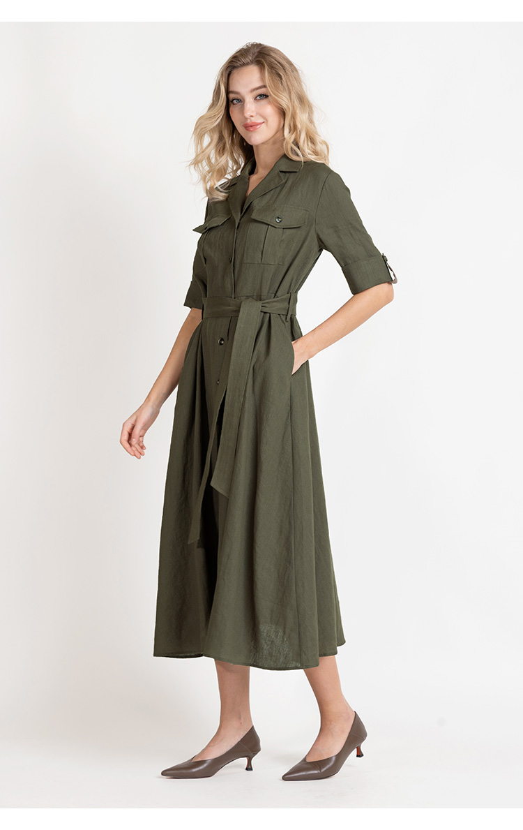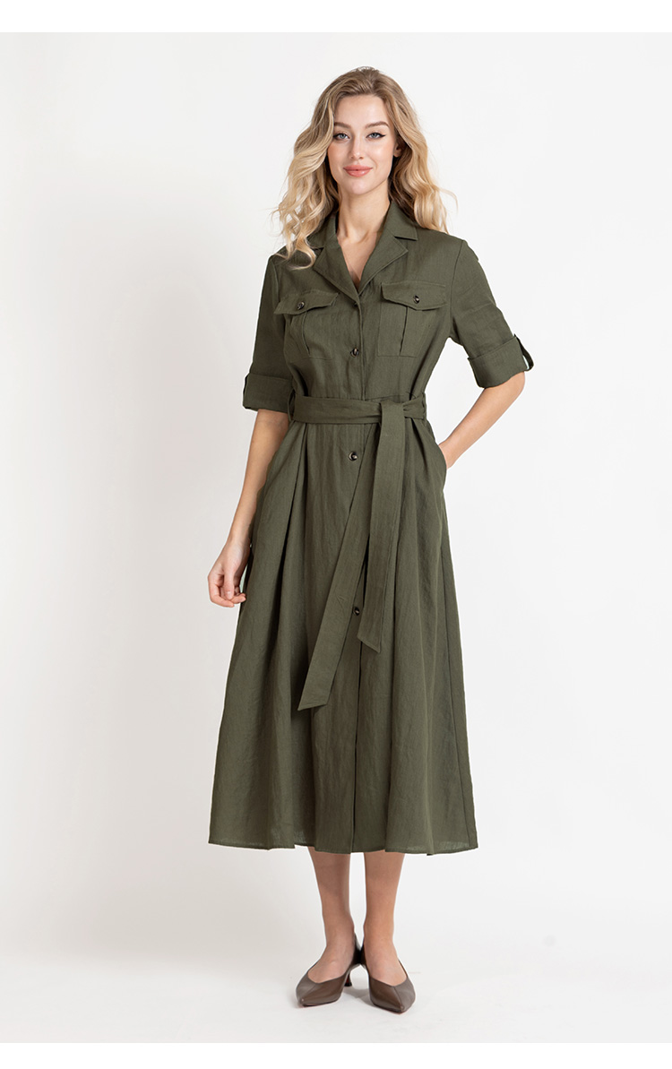 LIZZY 时尚气质西装领通勤休闲工装风短袖亚麻连衣裙8023