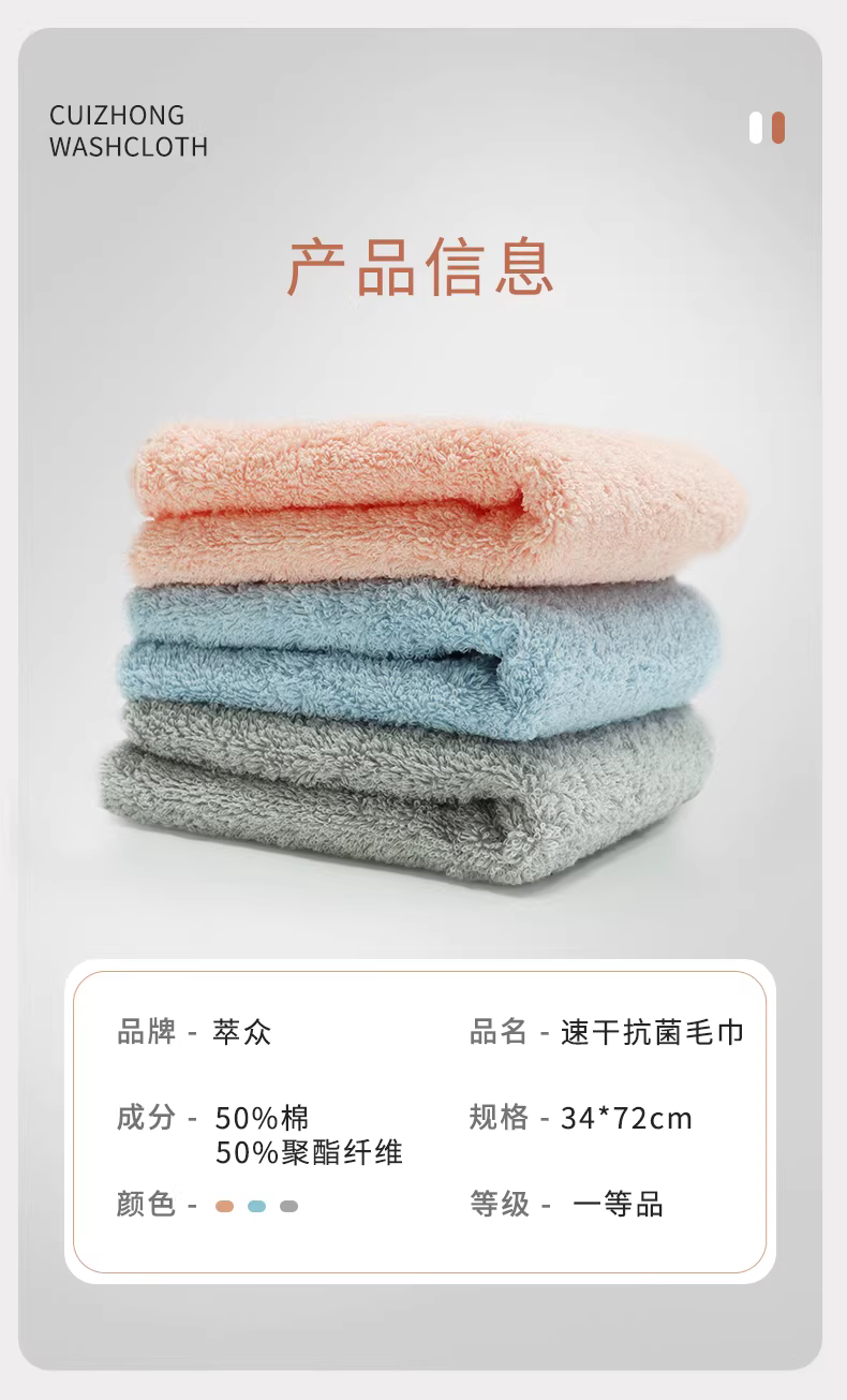 萃众414速干抗菌毛巾三条装-241106HXU
