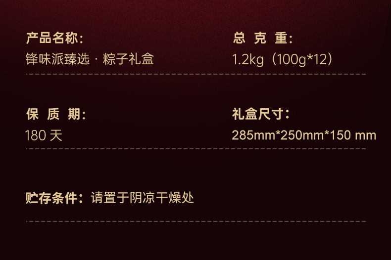 锋味派 臻选粽子礼盒(12粒装)- 1200g【端午】SKT