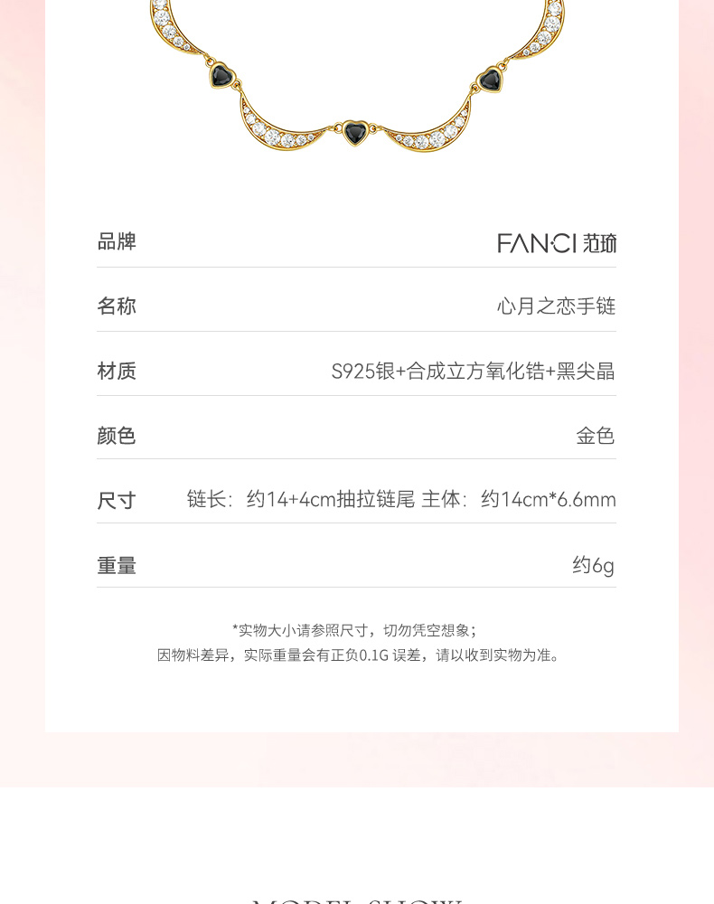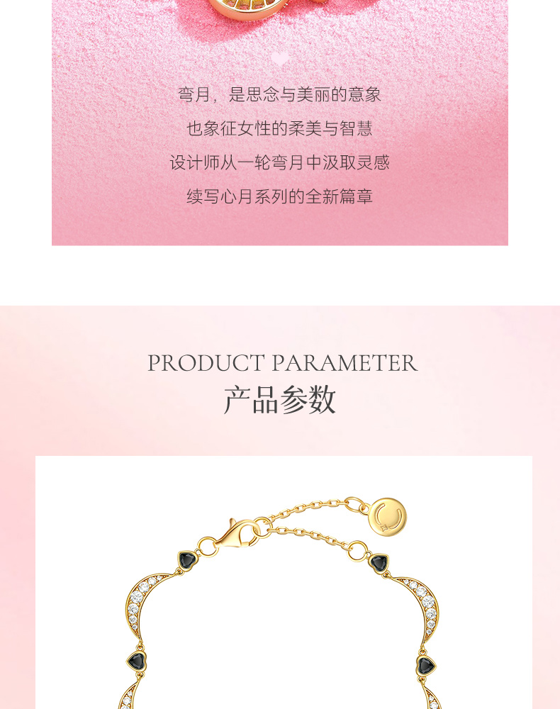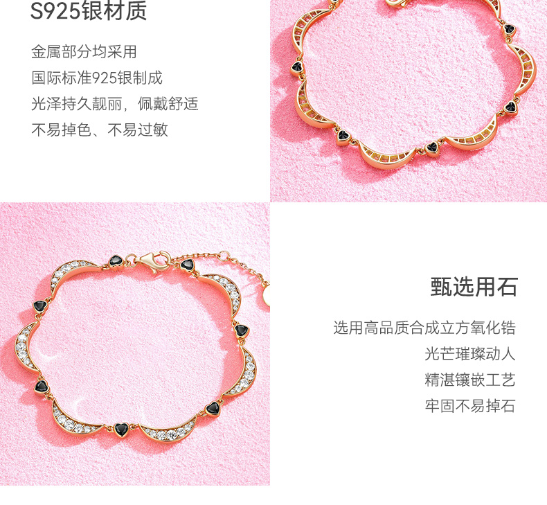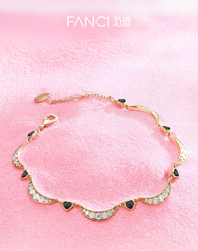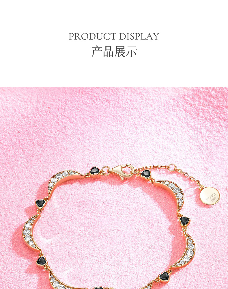 【心月之恋手链-黑金款】Fanci范琦银饰 幻梦心月系列 轻奢小众生日礼物送女友