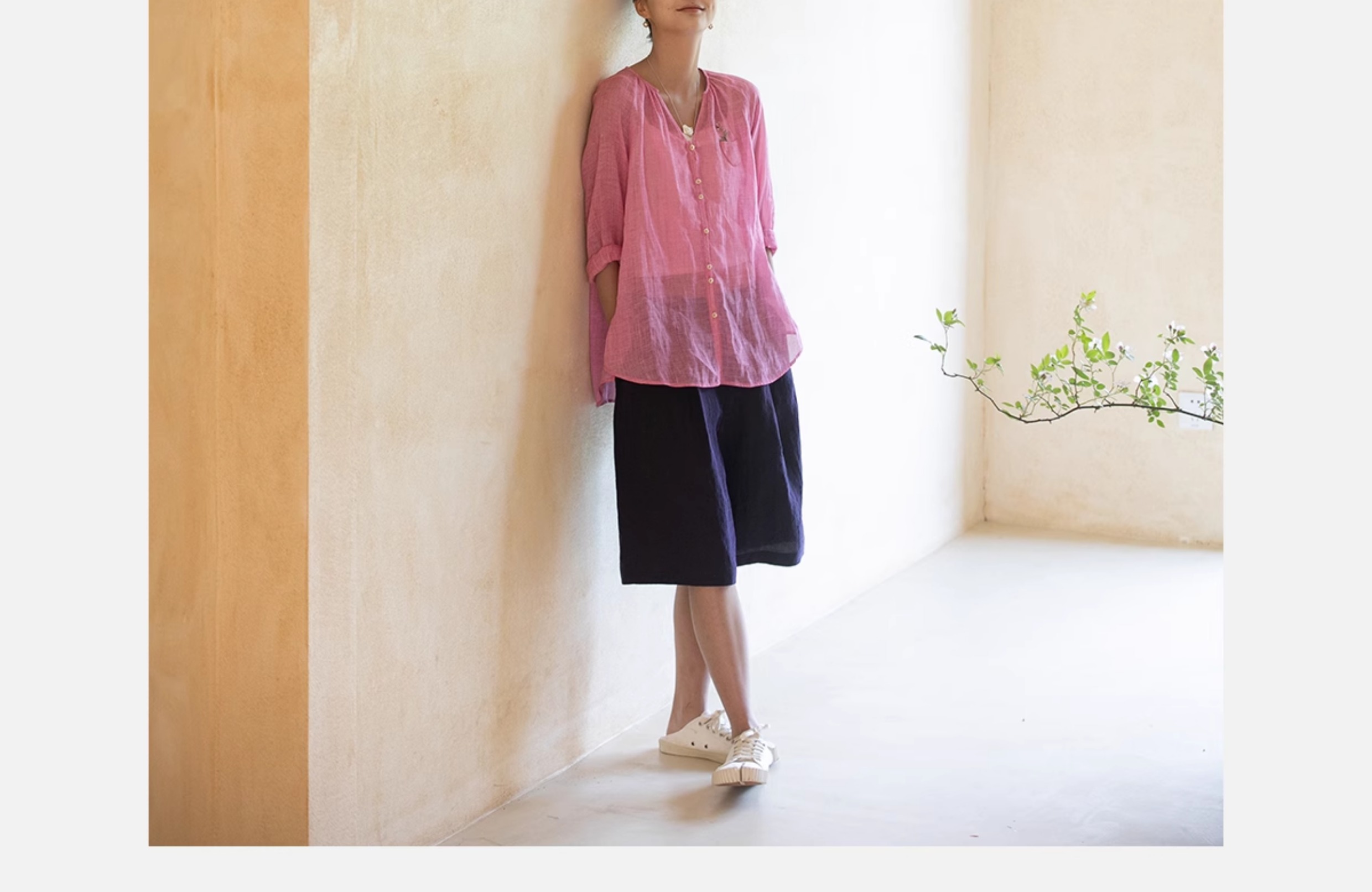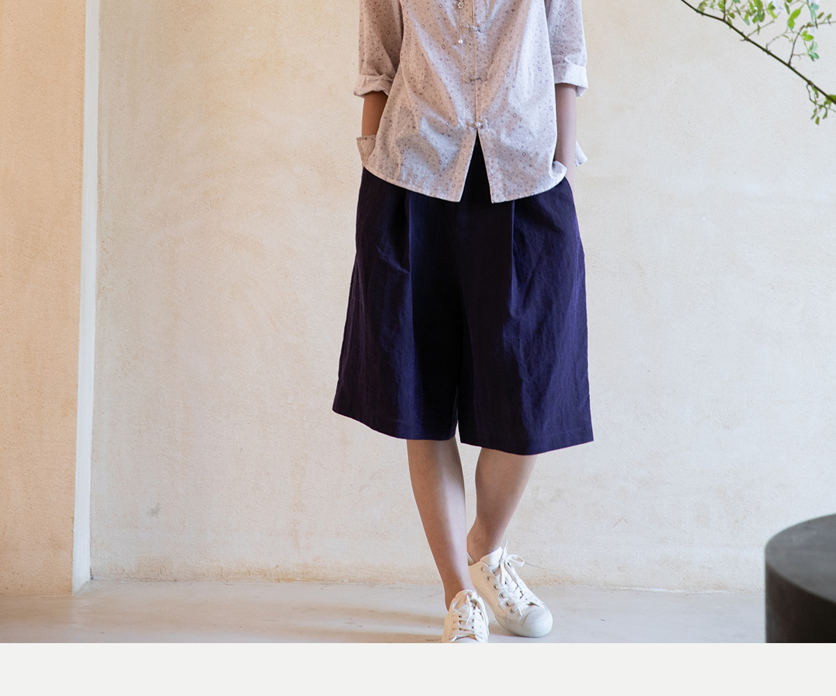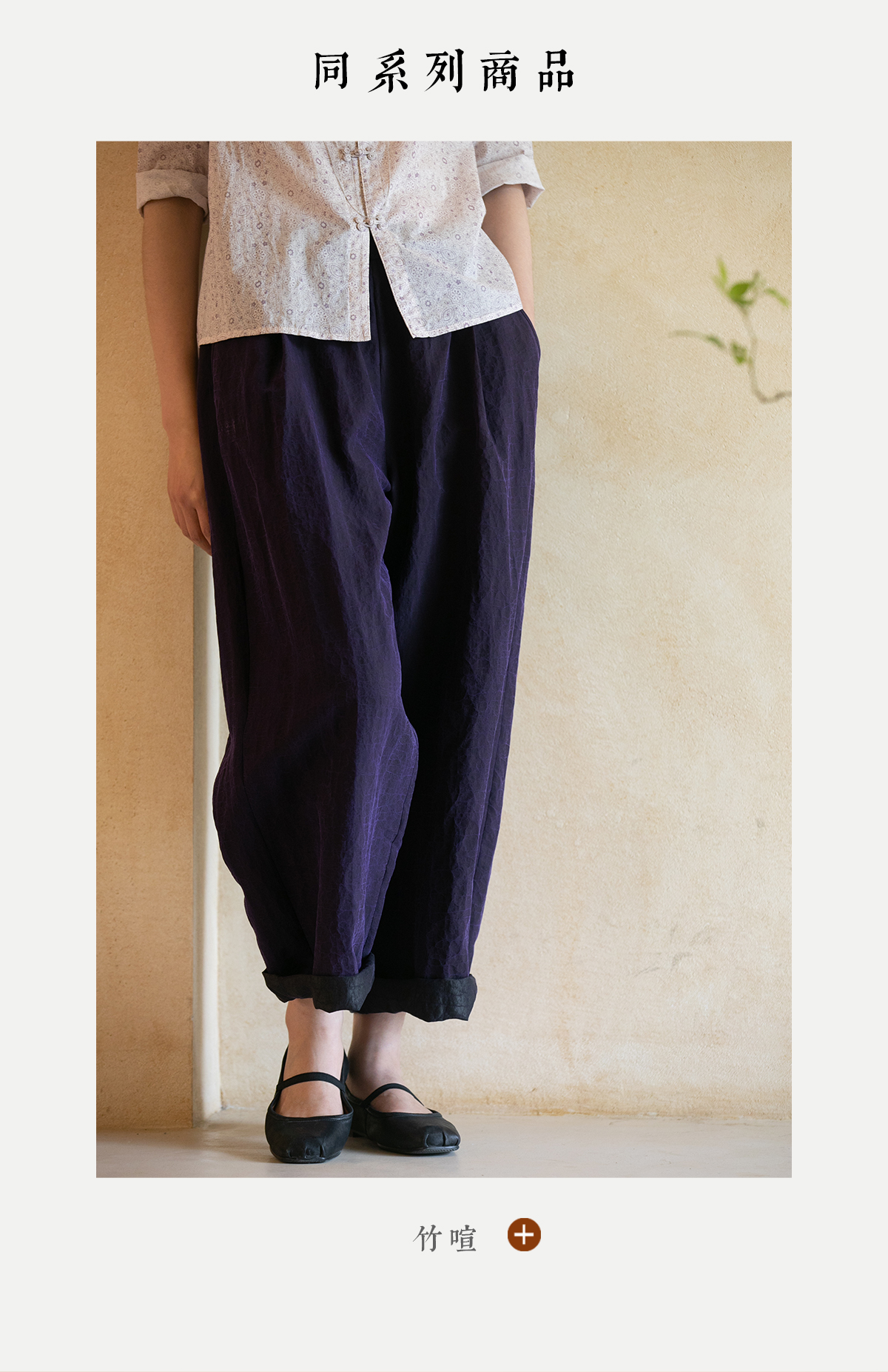 牧衣游原创 黑梅紫香云纱短裤女新款清凉舒爽休闲百搭五分裤 红叶