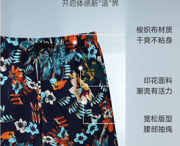 舒雅新款沙滩裤速干宽松印花家居梭织布中裤39/19932P