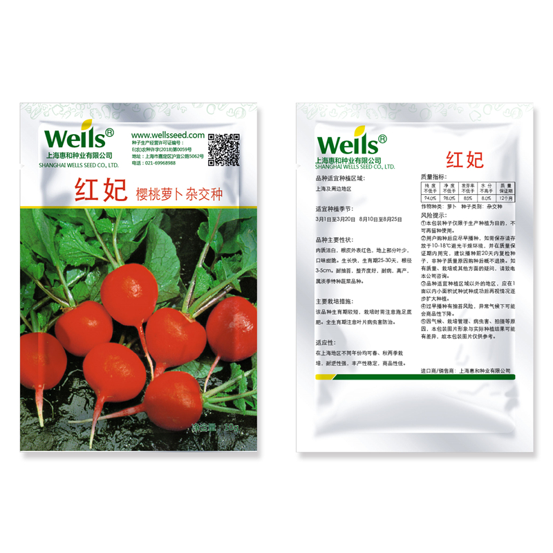 肉质洁白,根皮外表红色,地上部分叶少,口味甜脆。生长快,生育期25-30天,根径3-5cm。耐抽苔,整齐度好,耐病,高产,属淡季特种蔬菜品种。