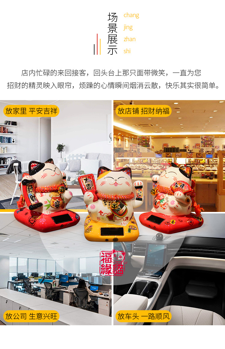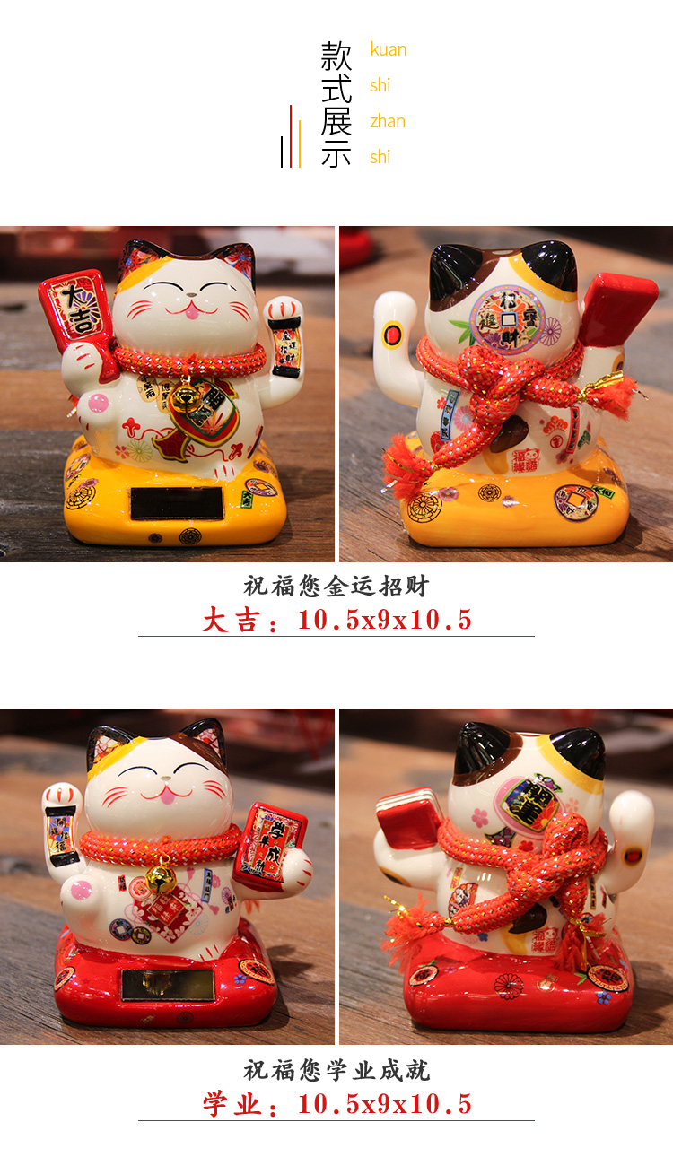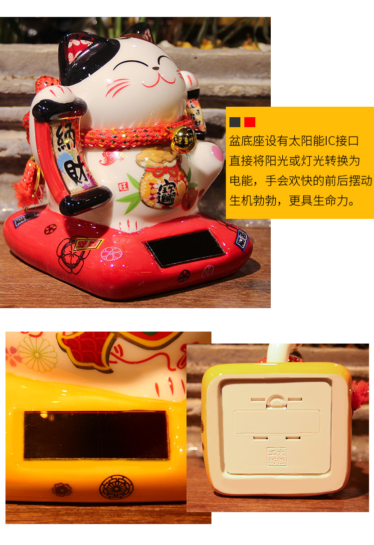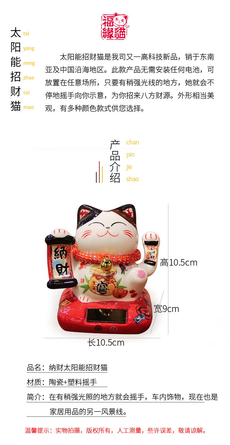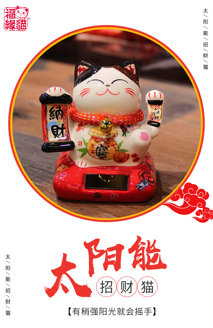 K-FYM-太阳能摇手 招财猫 自动招手小摆件创意办公桌饰品汽车内摇手猫装饰