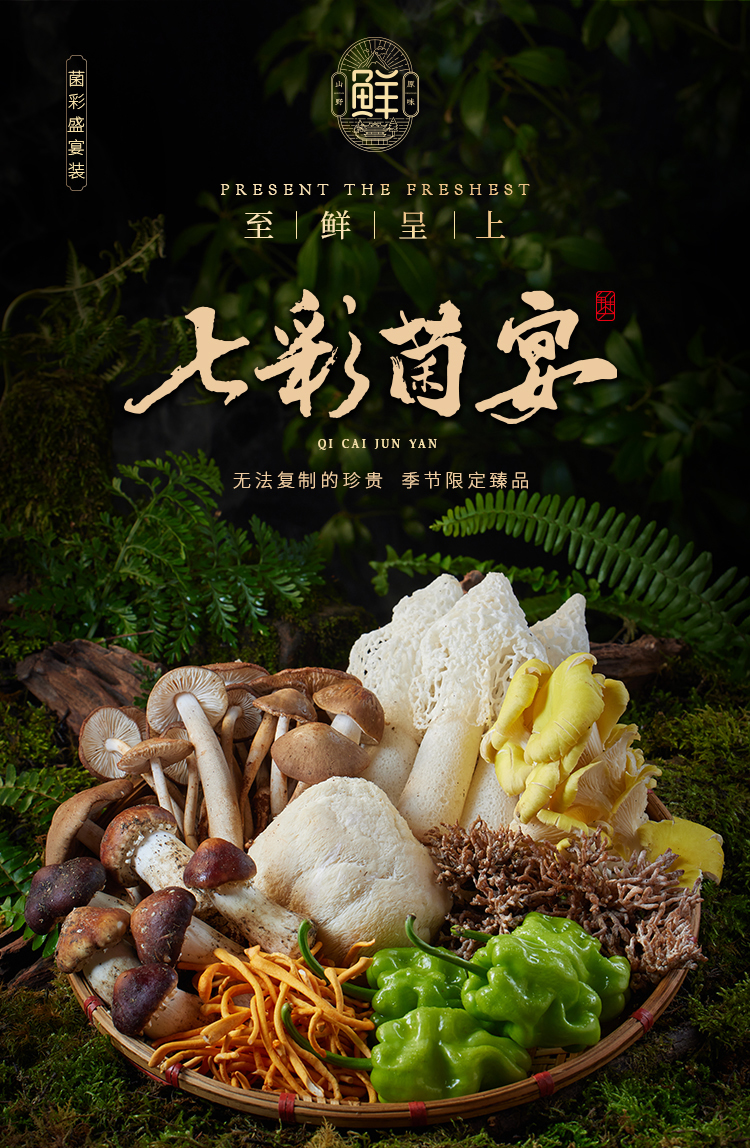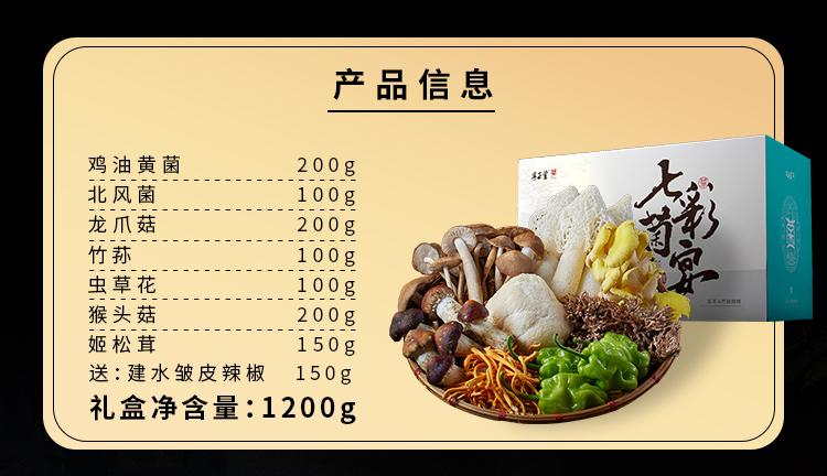宁正丰七彩菌宴鲜品398型(菌彩盛宴装) (净含量:1200克)卡券/现货直发