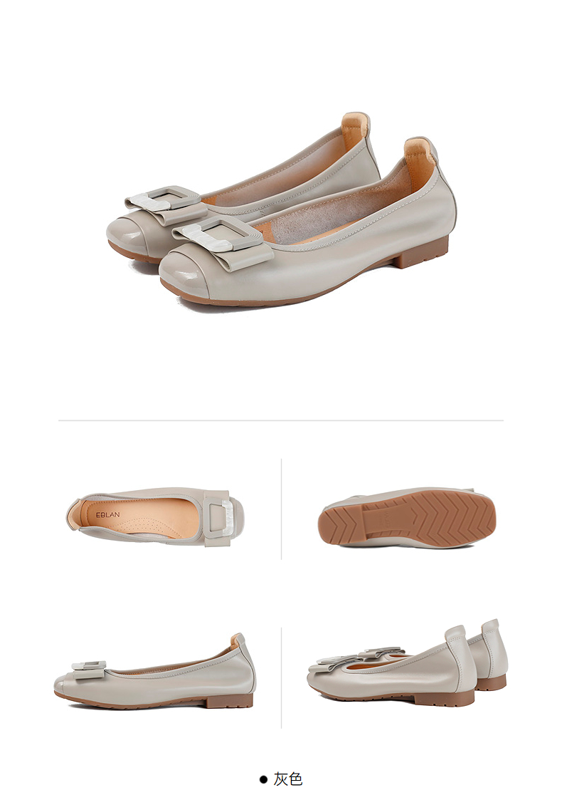 【上新】伊伴2026春季双拼方扣舒软一脚蹬牛皮低跟单鞋舒软便鞋B26118202