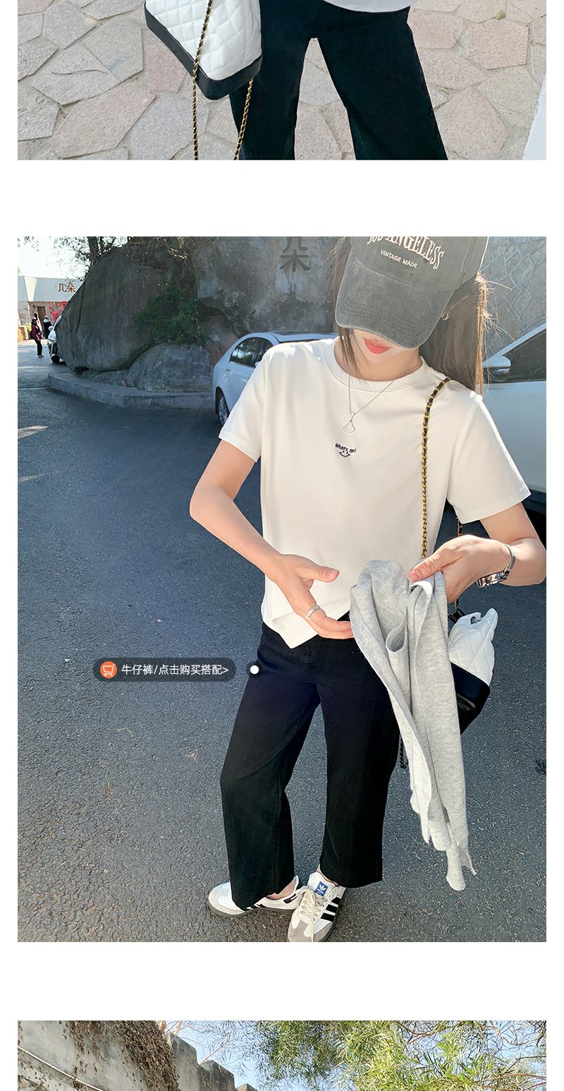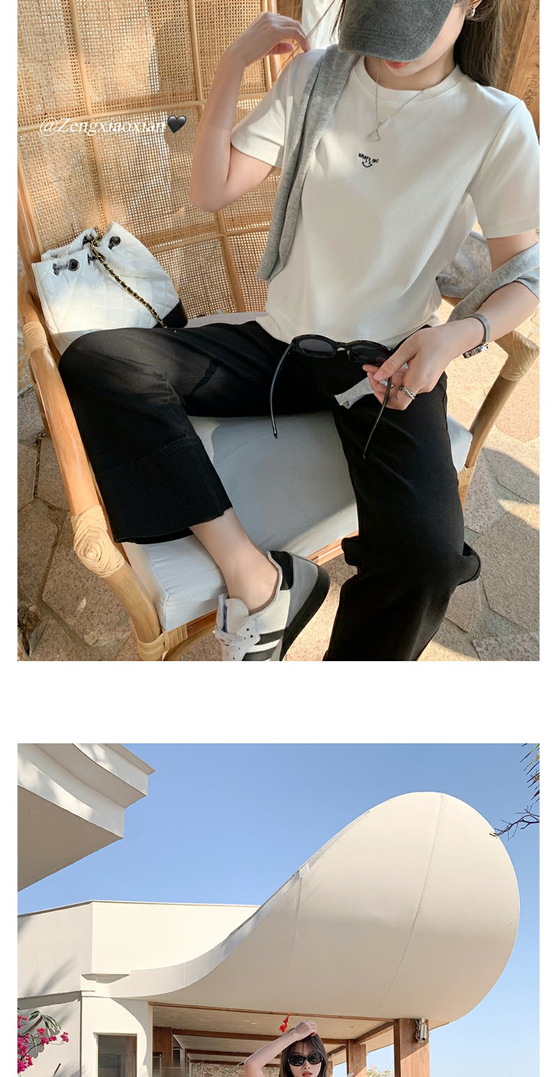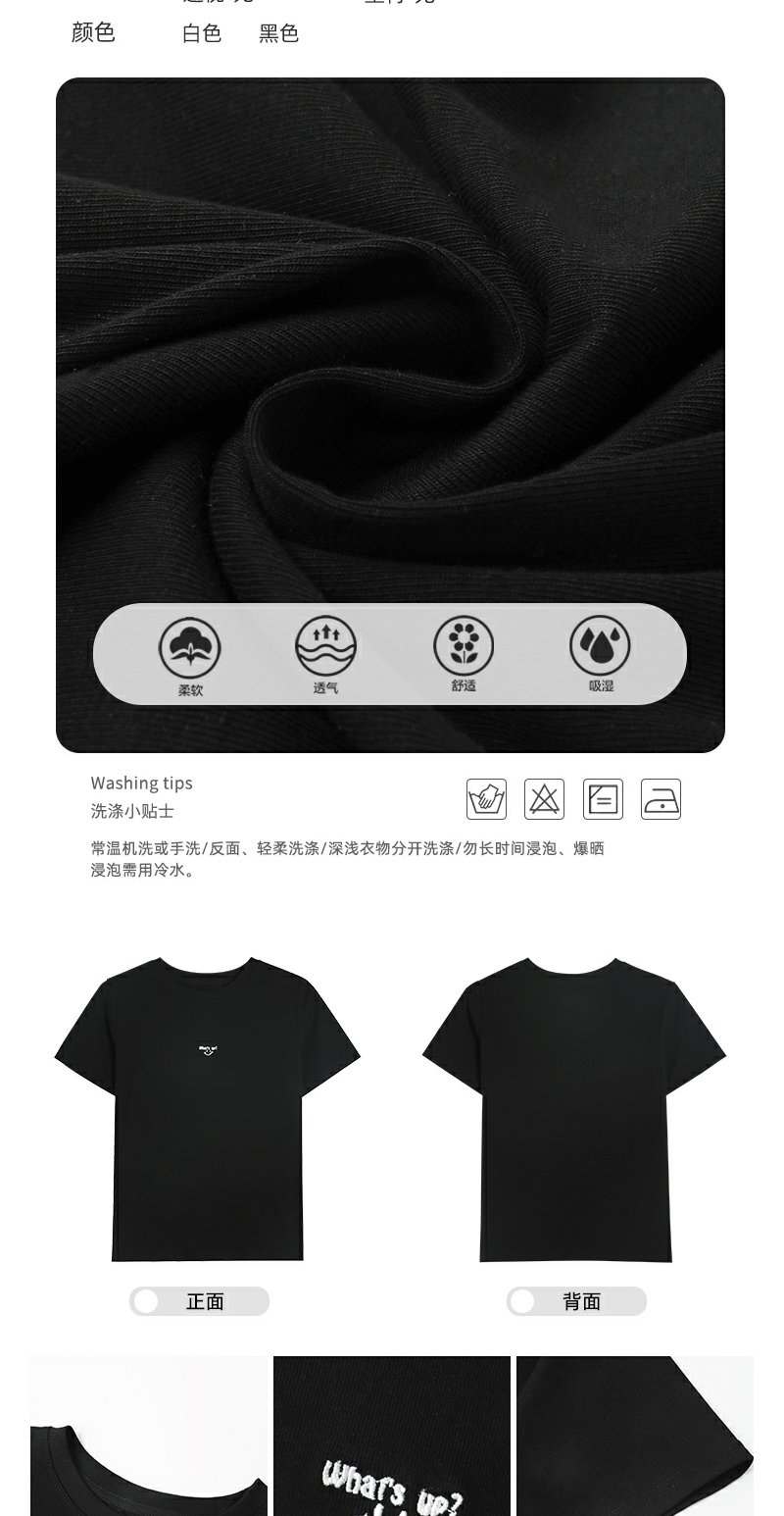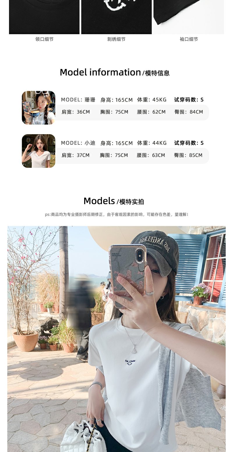 <曾小咸推荐>韩系简约笑脸刺绣正肩短袖T恤