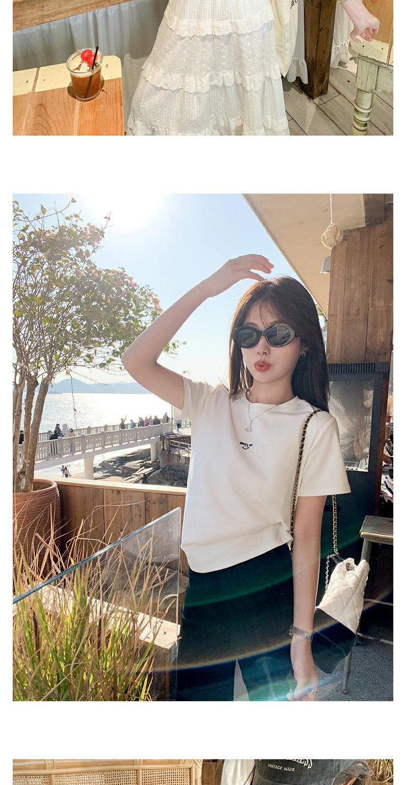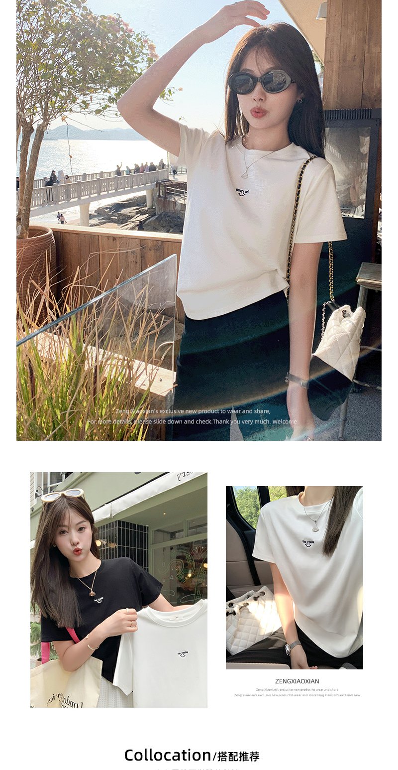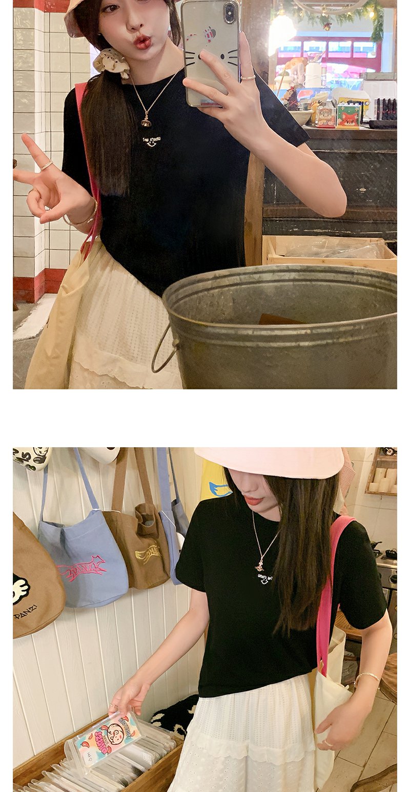 <曾小咸推荐>韩系简约笑脸刺绣正肩短袖T恤