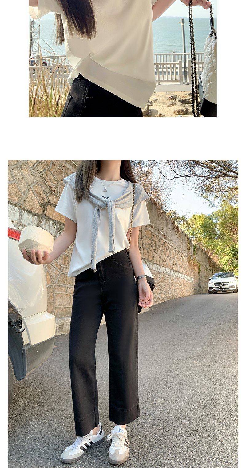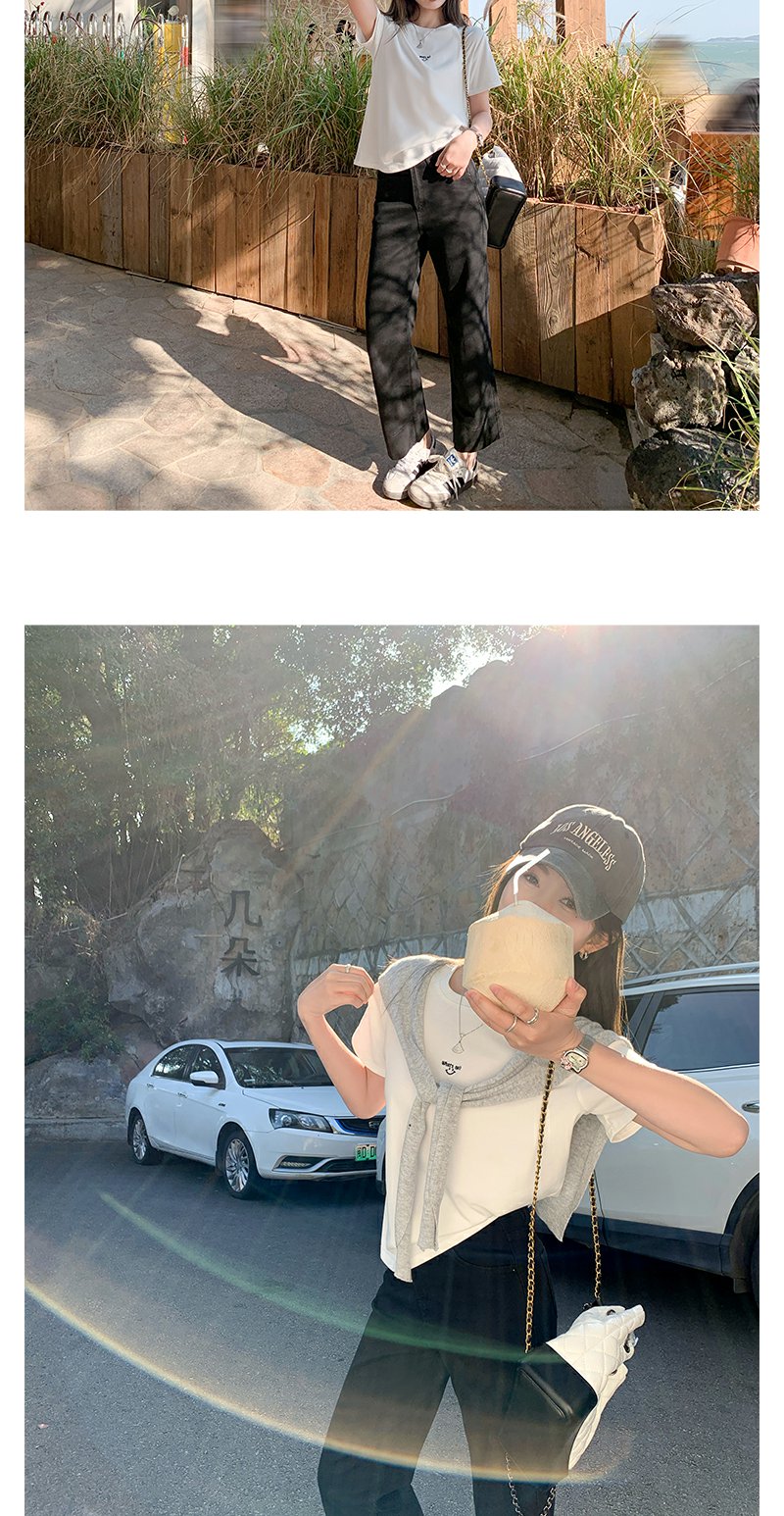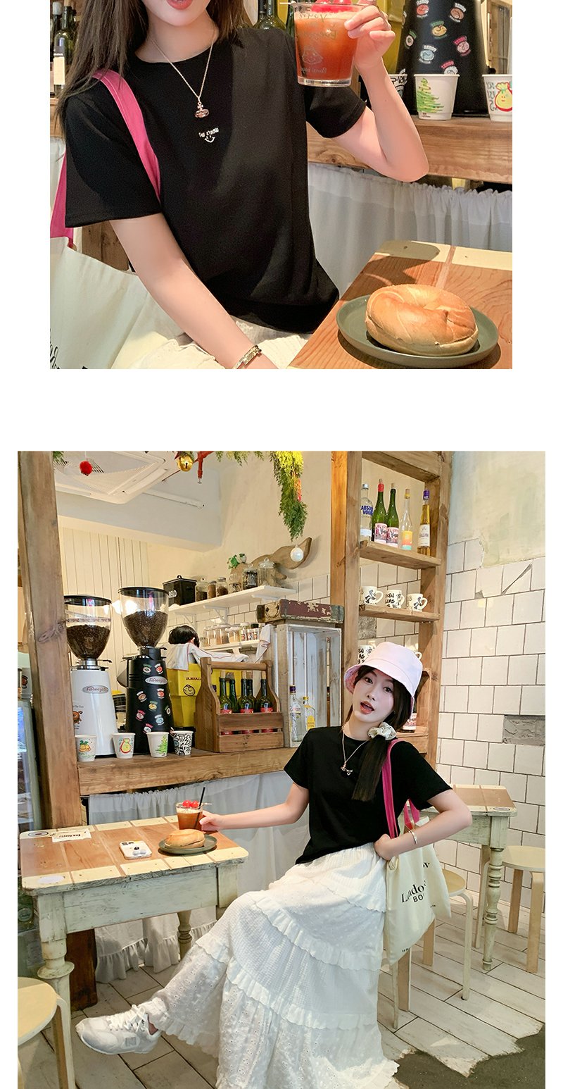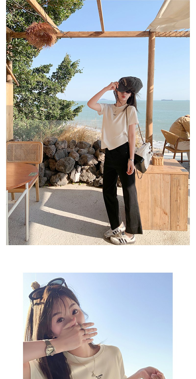 <曾小咸推荐>韩系简约笑脸刺绣正肩短袖T恤