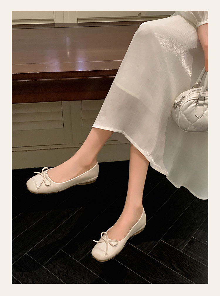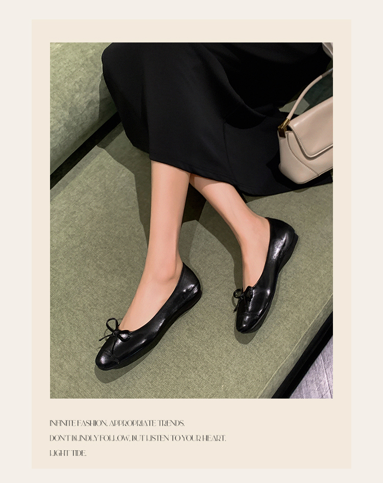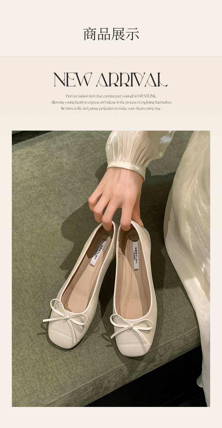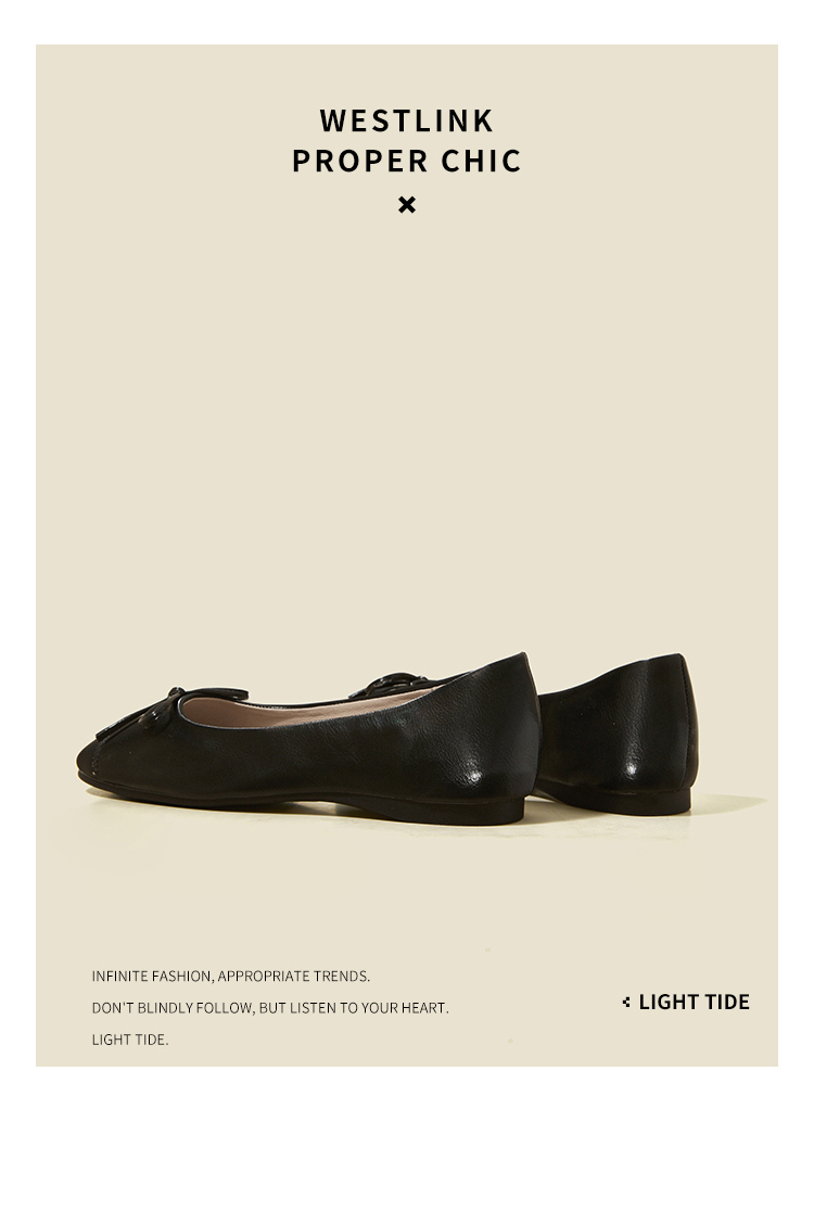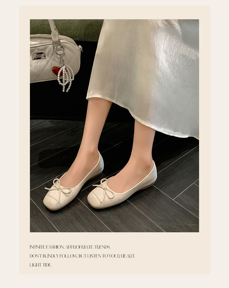 西遇蝴蝶结单鞋女新款秋季百搭通勤瓢鞋芭蕾风圆头浅口平底鞋V1656932