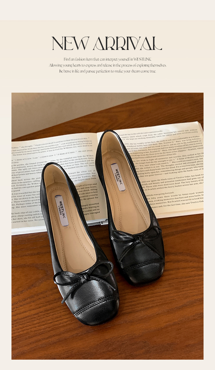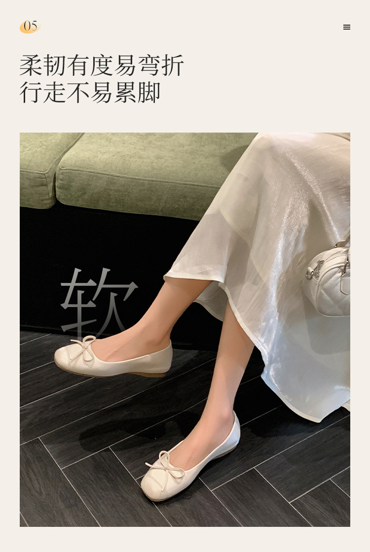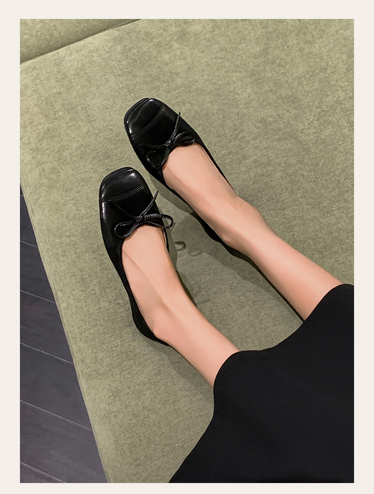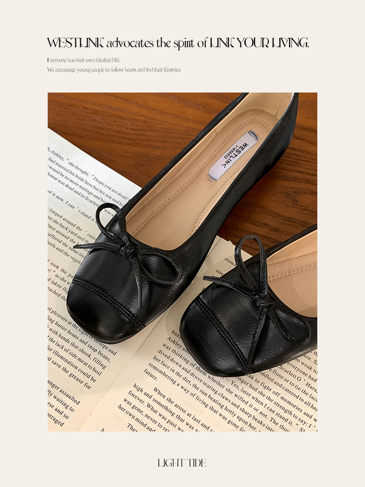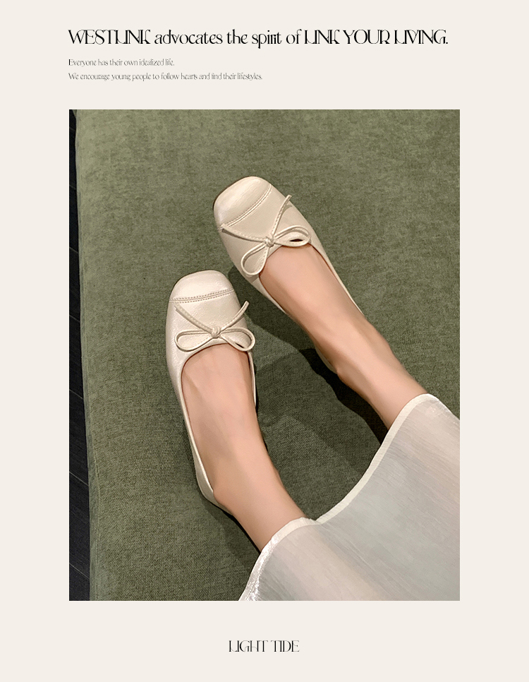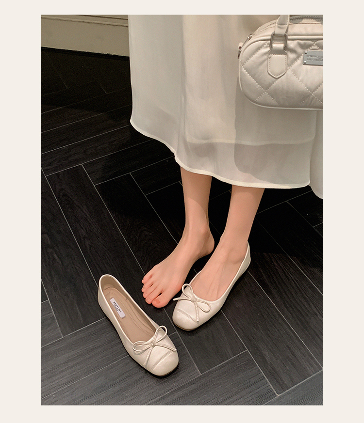 西遇蝴蝶结单鞋女新款秋季百搭通勤瓢鞋芭蕾风圆头浅口平底鞋V1656932