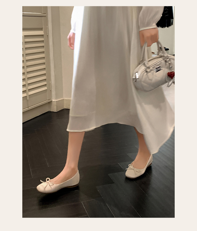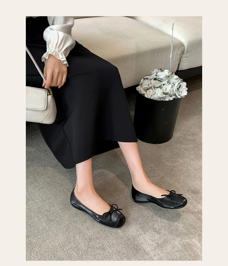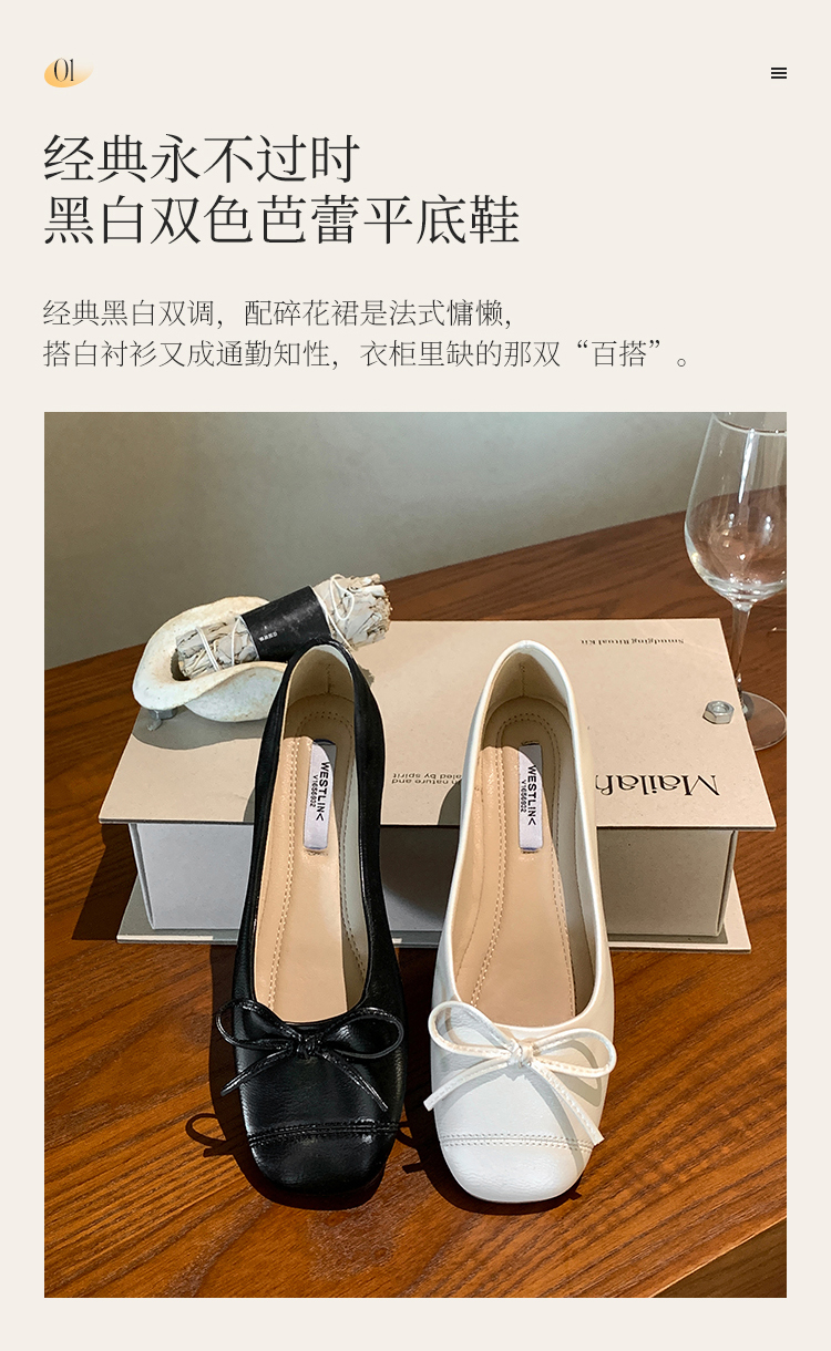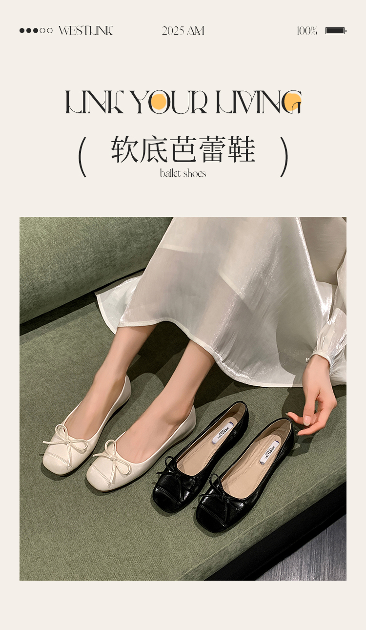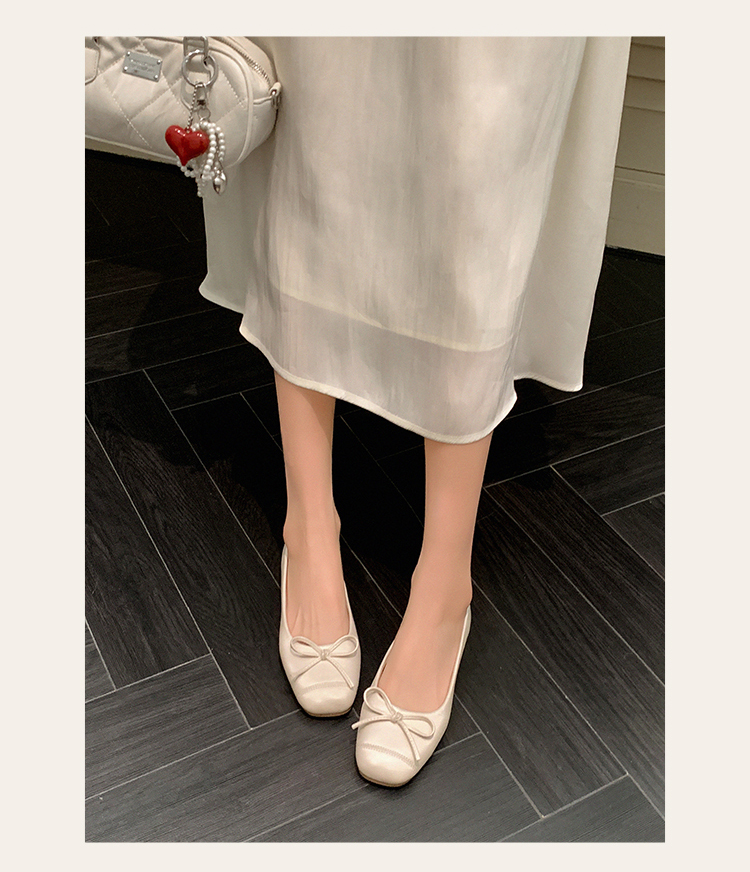 西遇蝴蝶结单鞋女新款秋季百搭通勤瓢鞋芭蕾风圆头浅口平底鞋V1656932