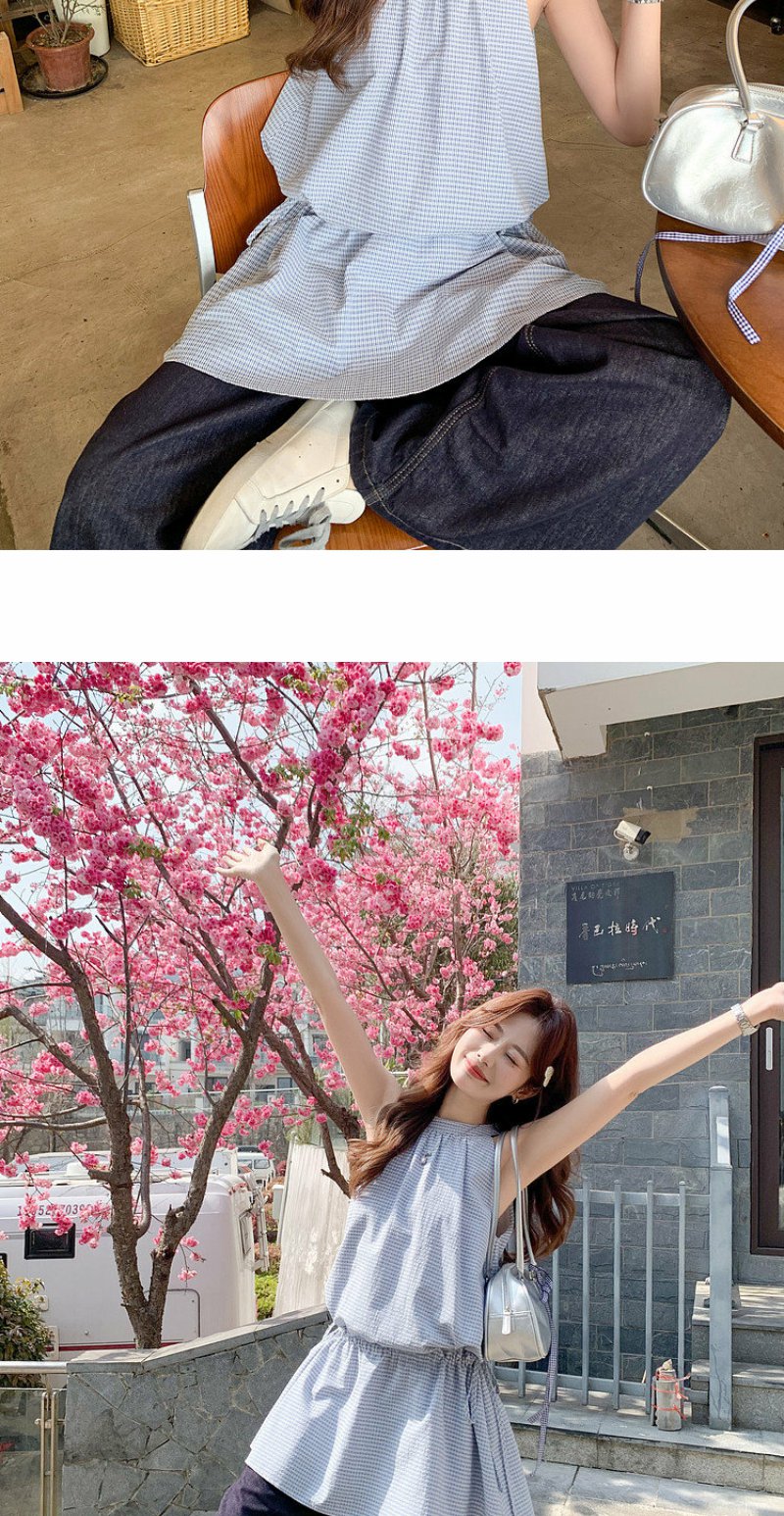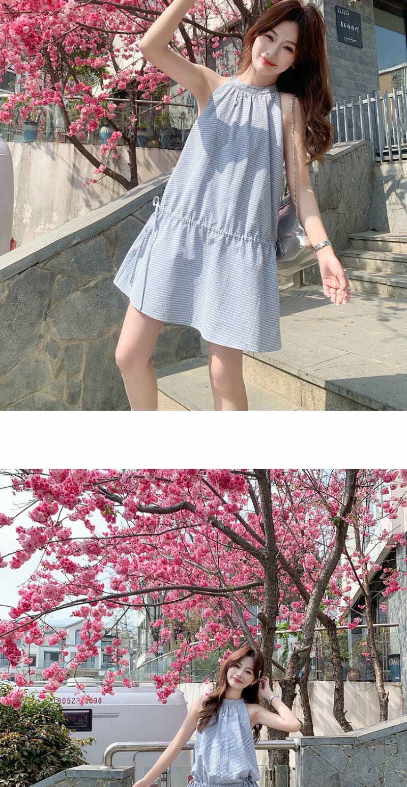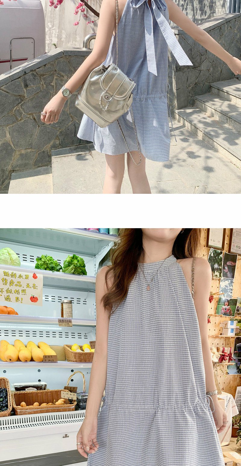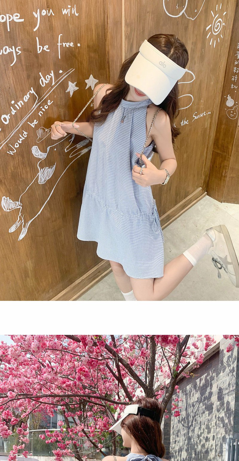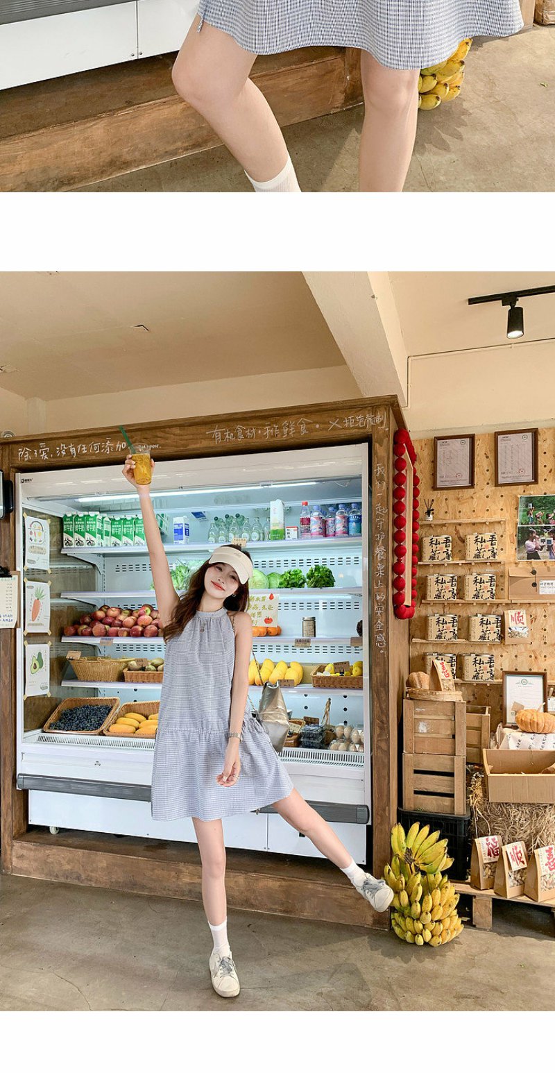 <曾小咸推荐>4.20现货秒杀 !微信超特价!韩系格纹无袖挂脖连衣裙 日常229.99 立减140 秒杀89.99!!