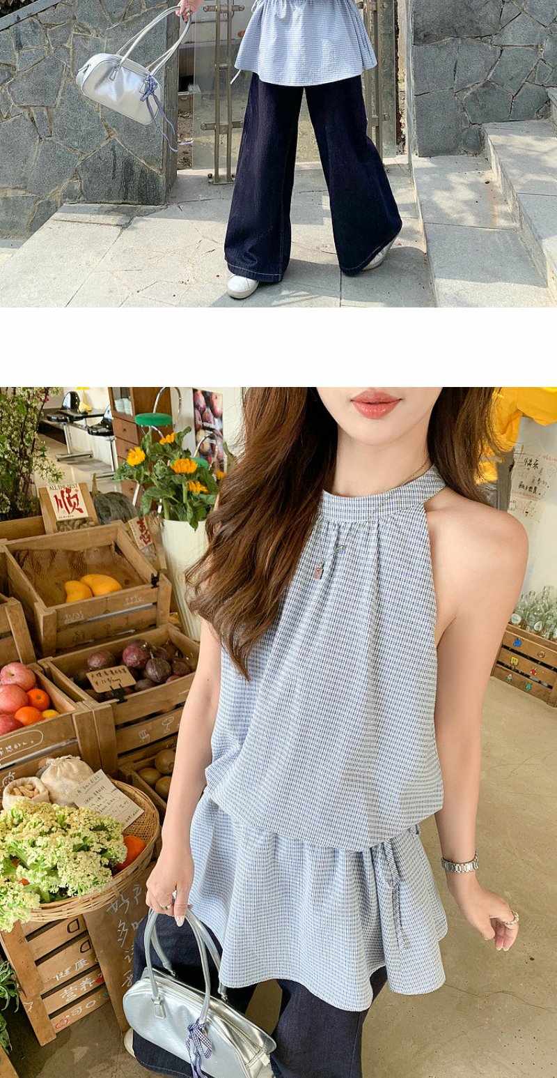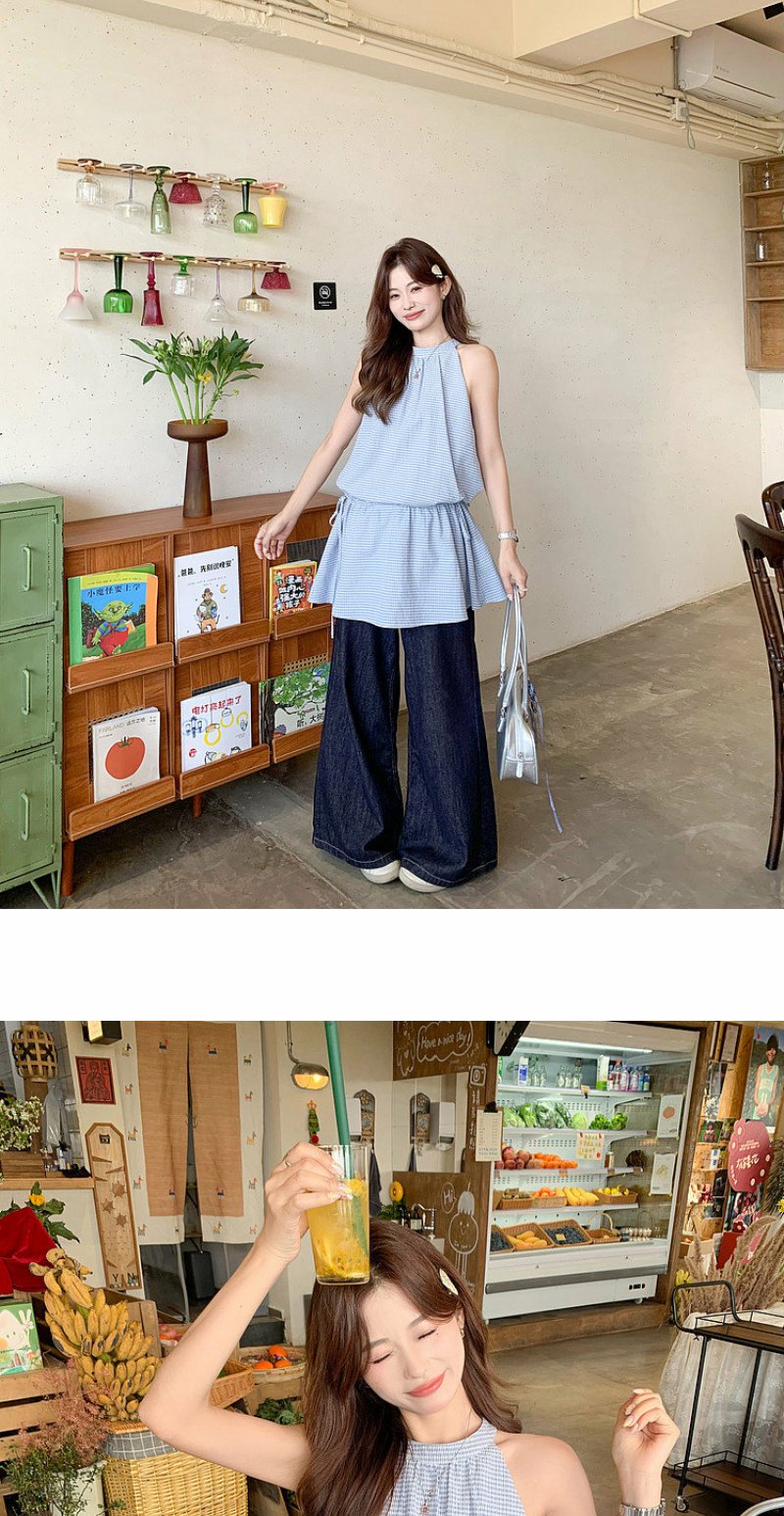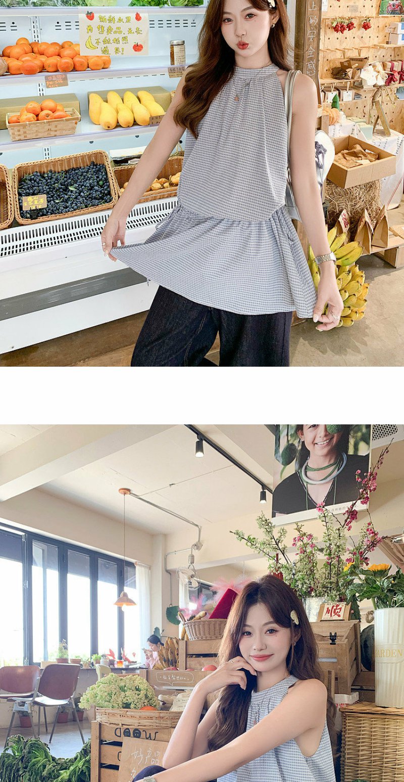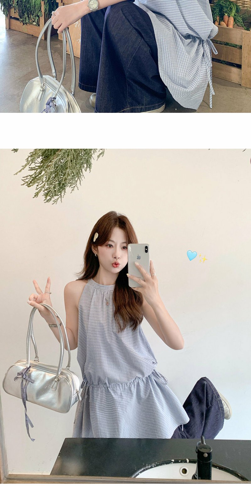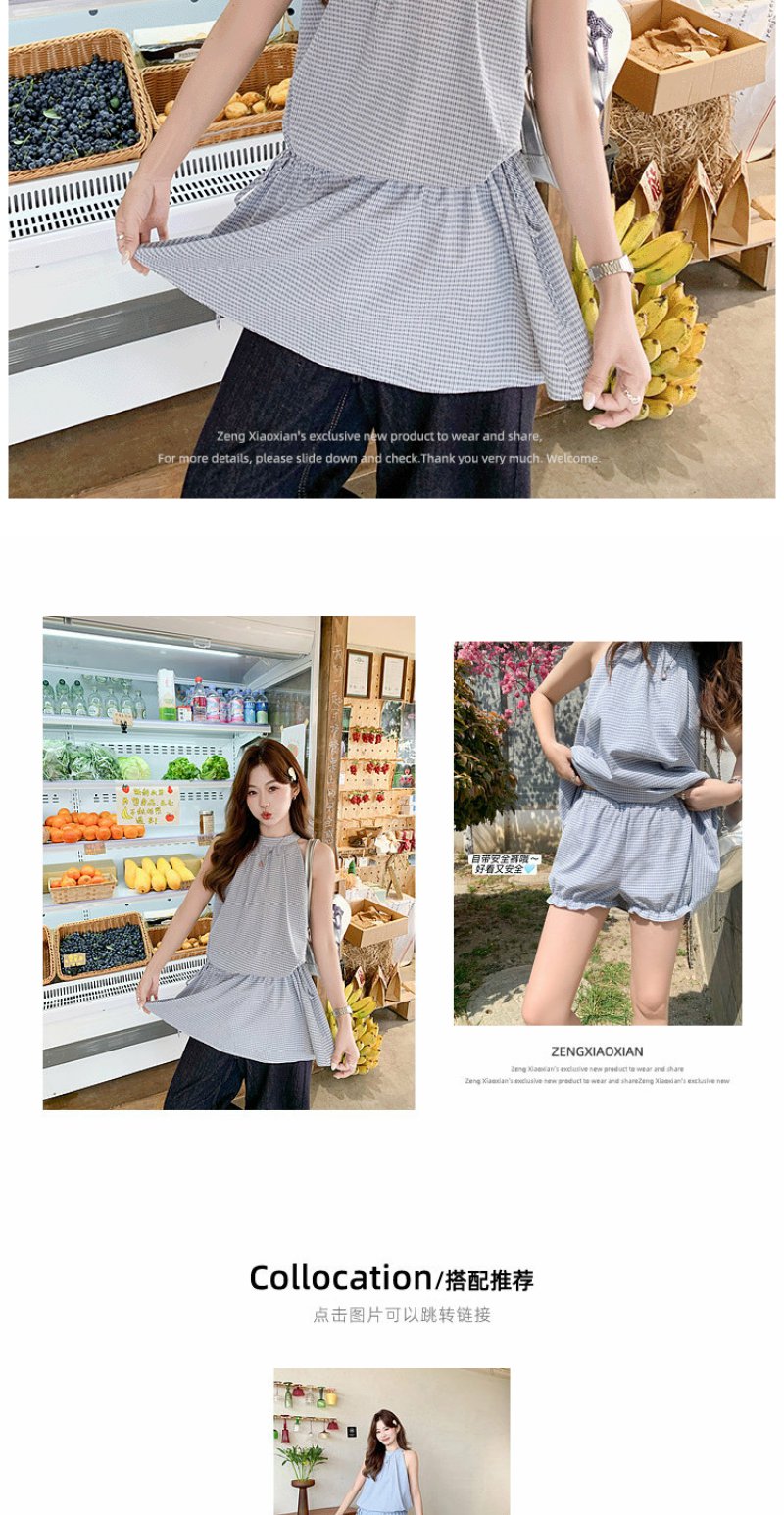 <曾小咸推荐>4.20现货秒杀 !微信超特价!韩系格纹无袖挂脖连衣裙 日常229.99 立减140 秒杀89.99!!
