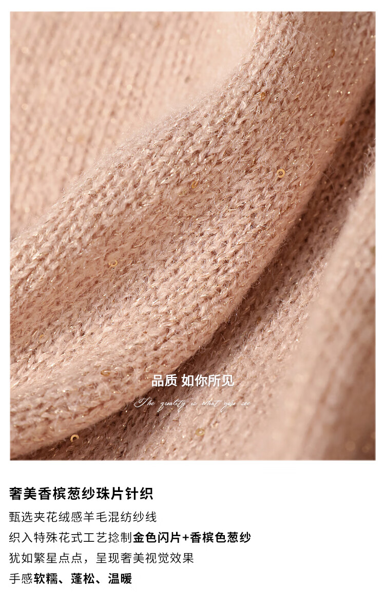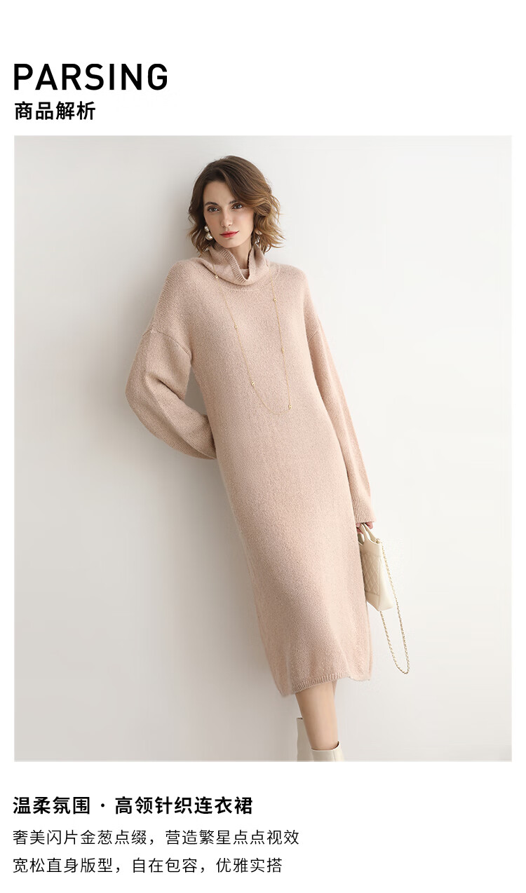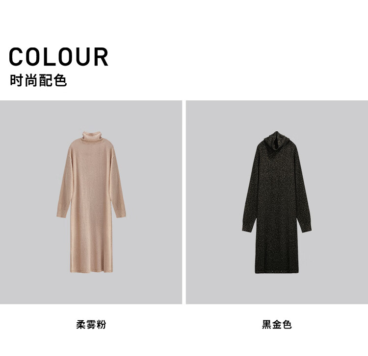 COCOBELLA[璀璨星河]金葱亮片针织连衣裙女高领毛衣裙FR3066