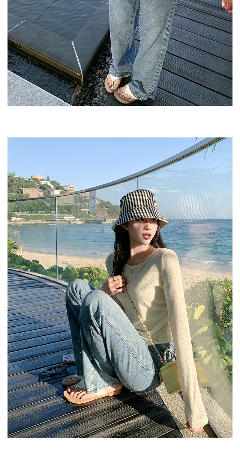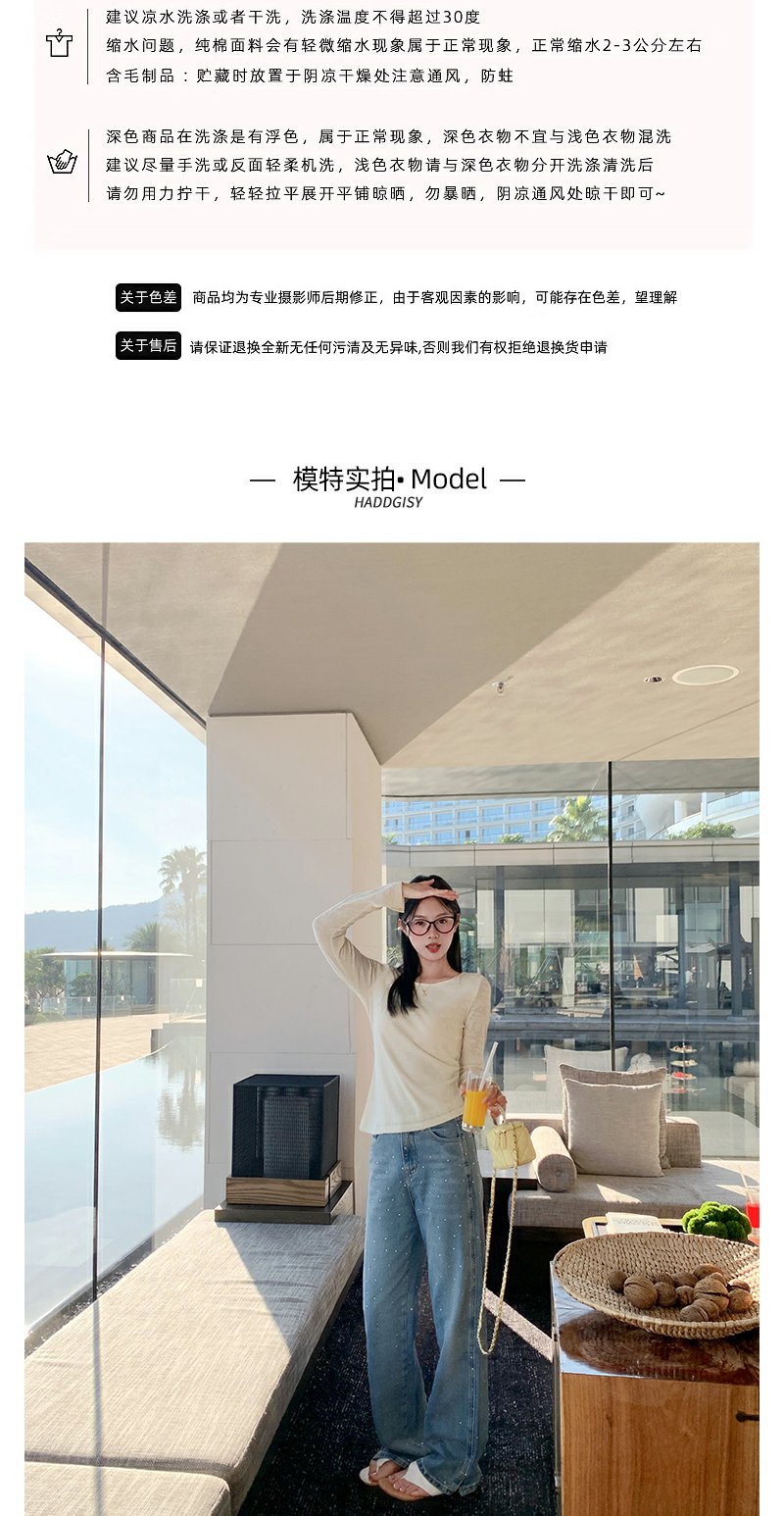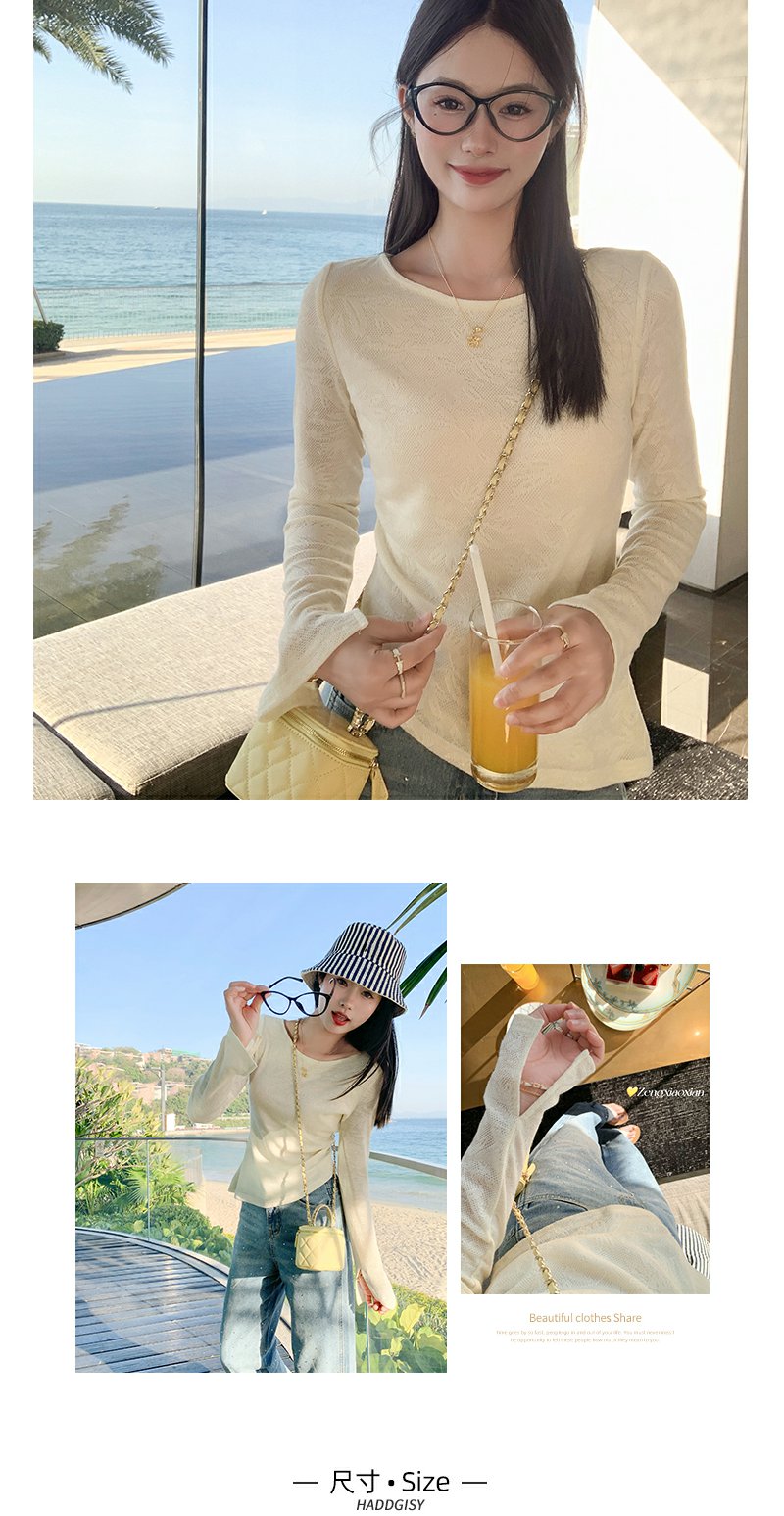 <曾小咸推荐>设计感袖口开叉圆领长袖T恤打底衫