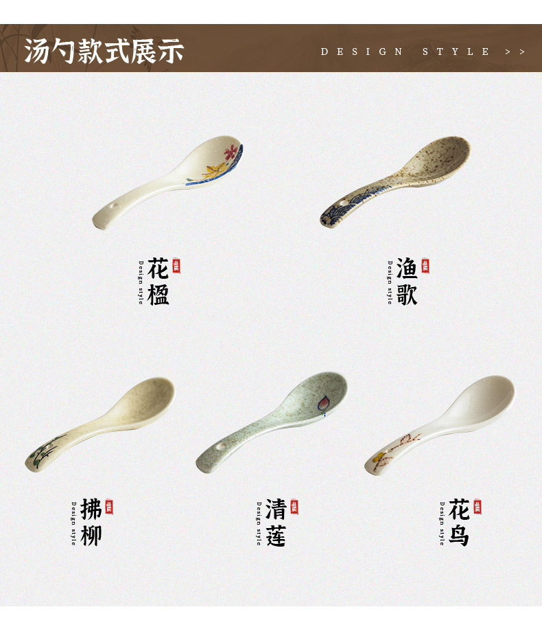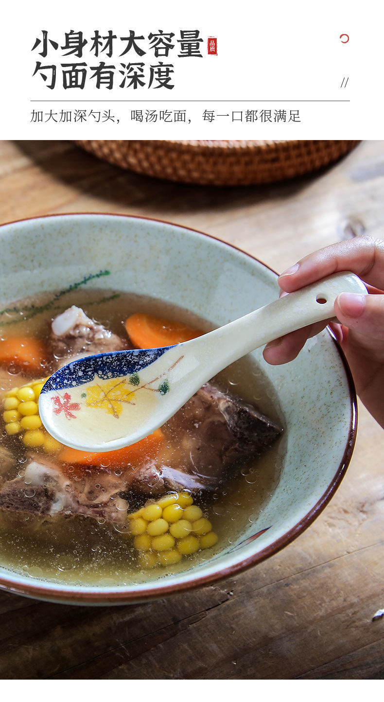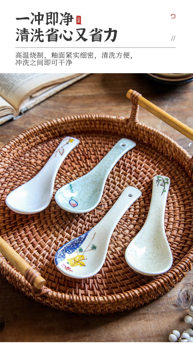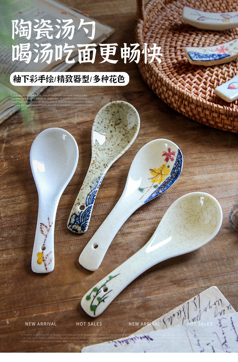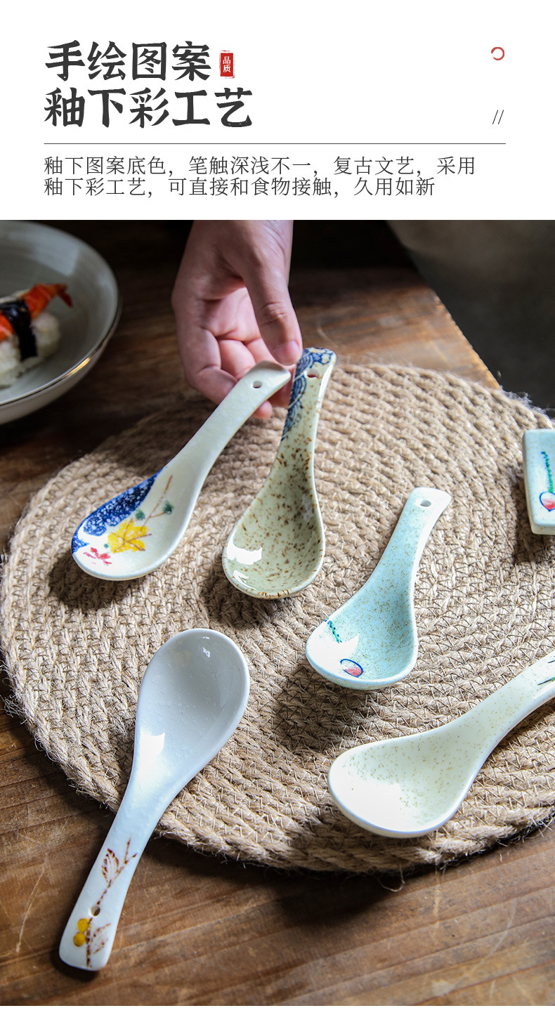 【出口陶瓷勺子】日式陶瓷勺子家用小汤勺高颜值釉下彩喝汤调羹甜品勺餐厅酒店餐具