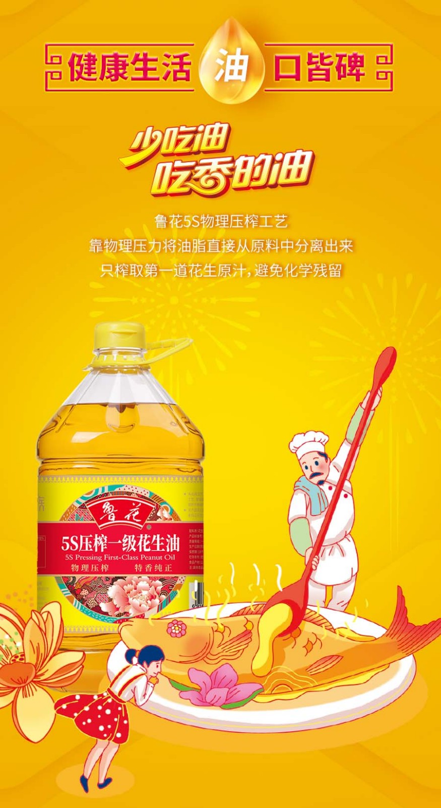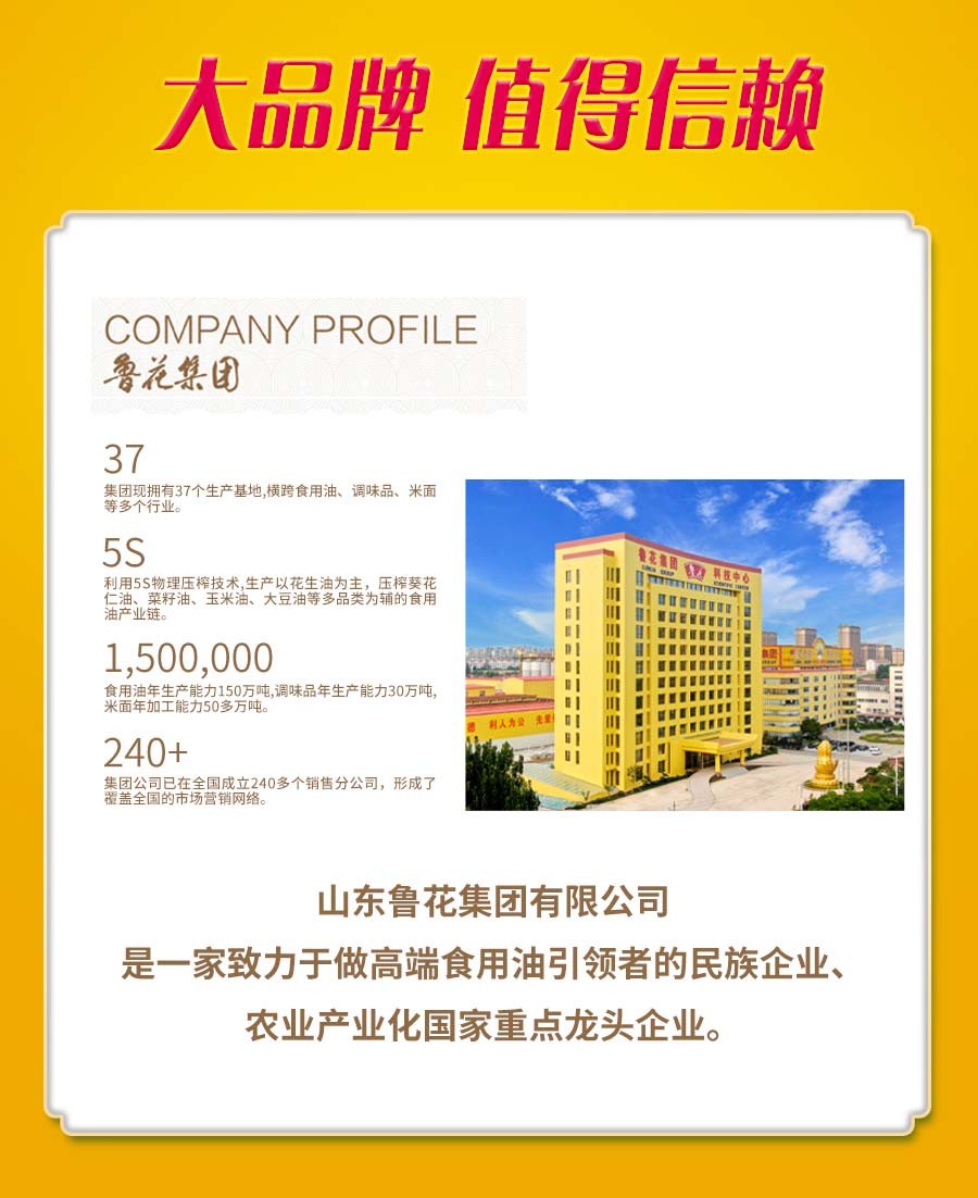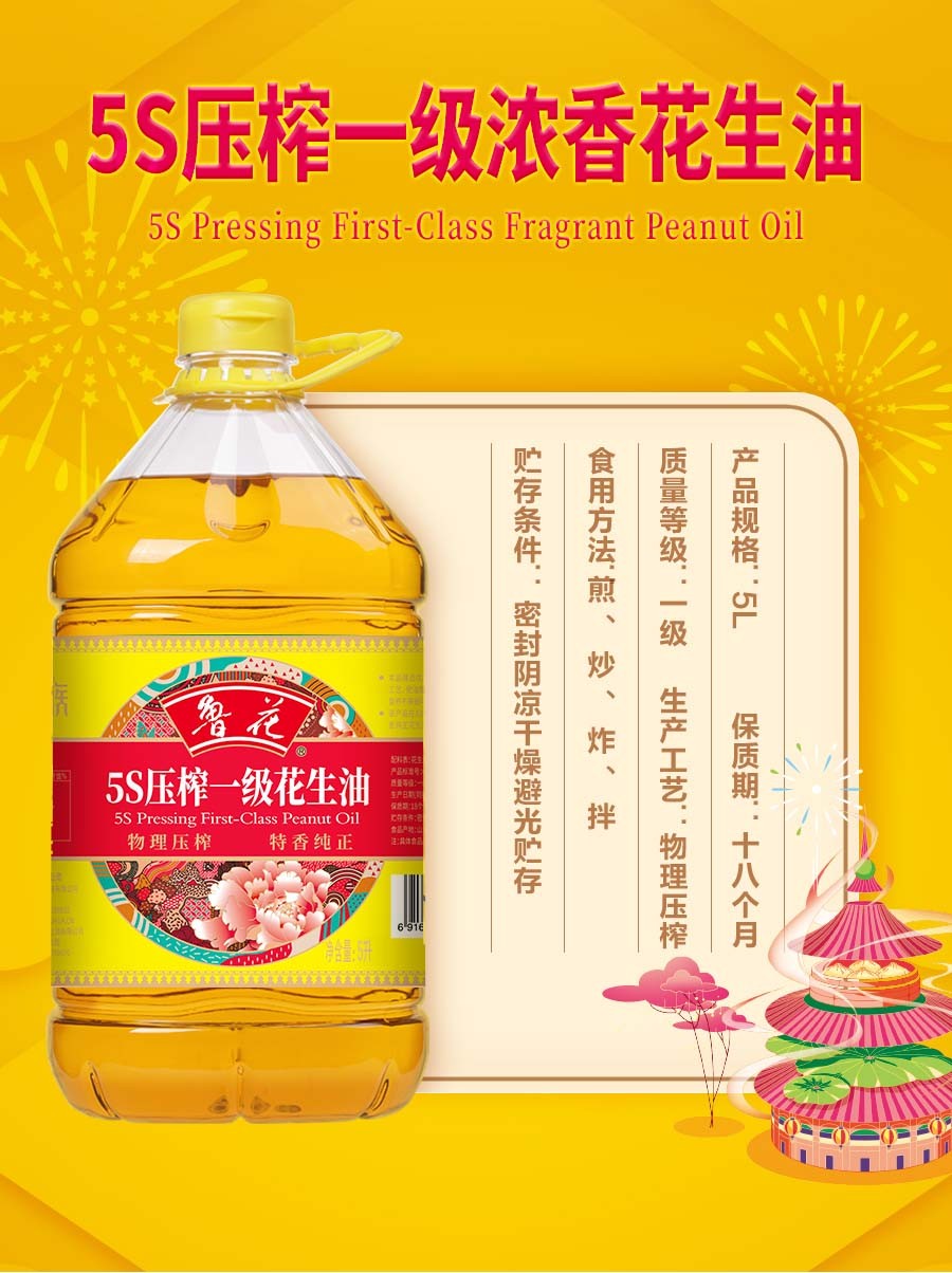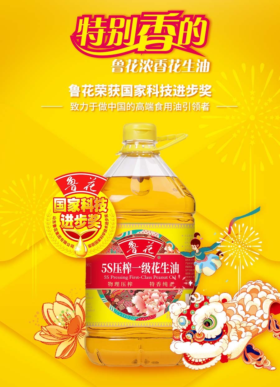 【自营】鲁花香味家族5S压榨一级花生油5L