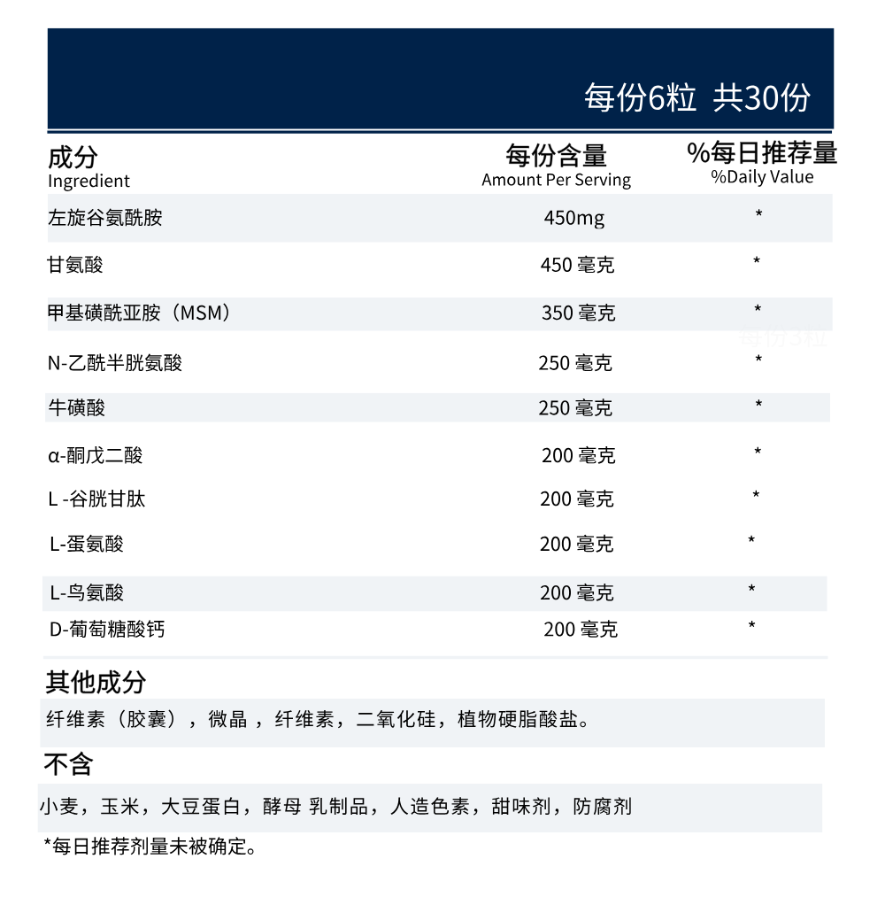 每日 6 粒,餐间服用,或遵医嘱。