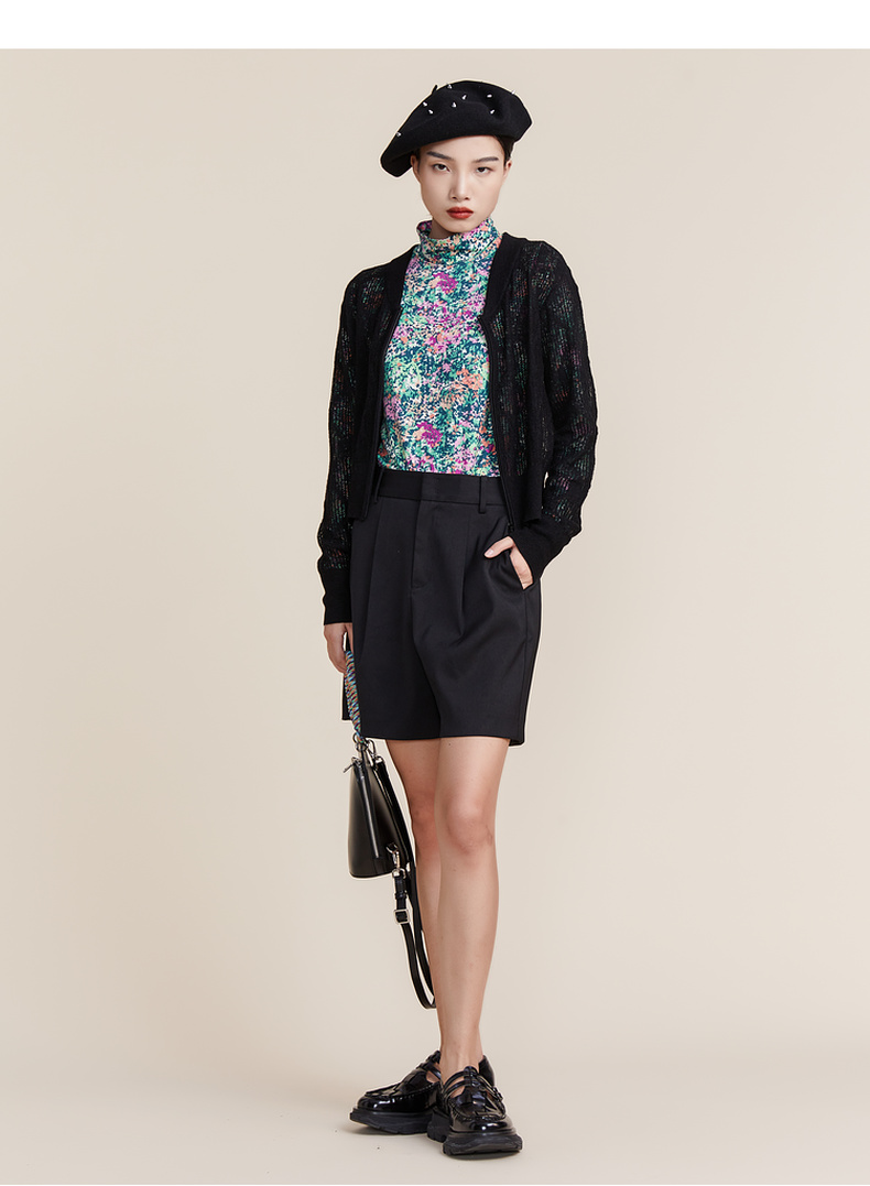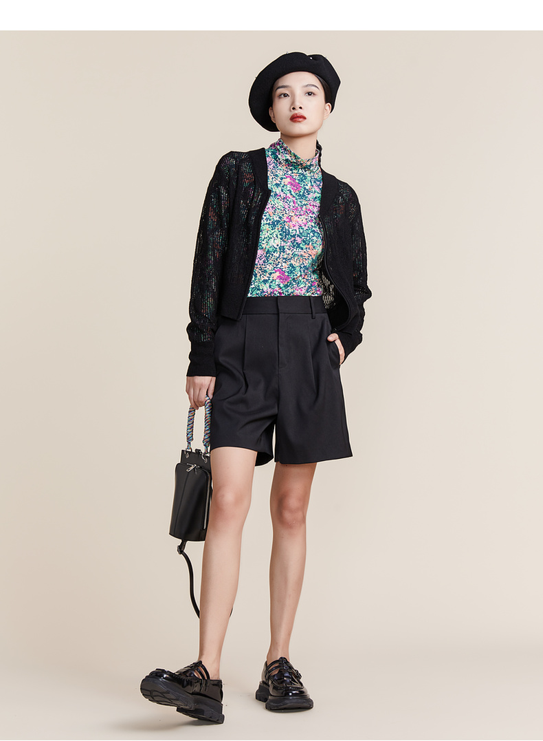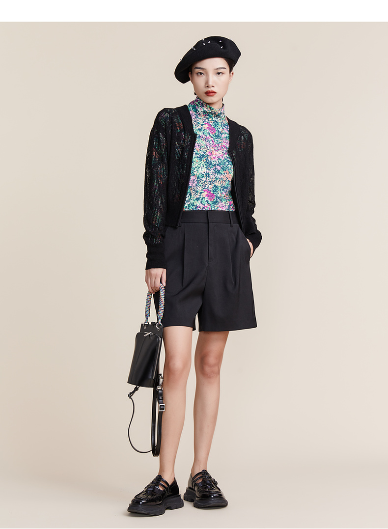 MIIDII谜底2022春新款简约时髦帅气休闲西裤短裤女221MK0043