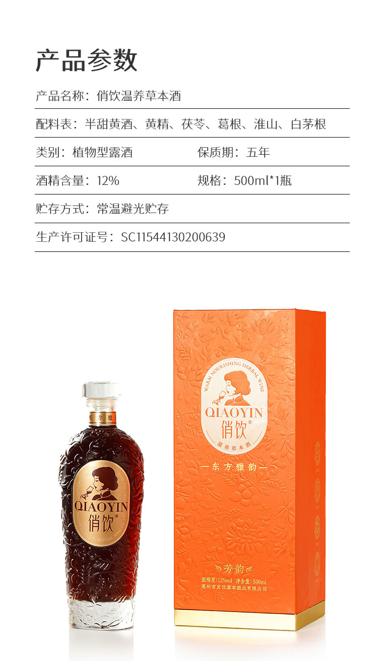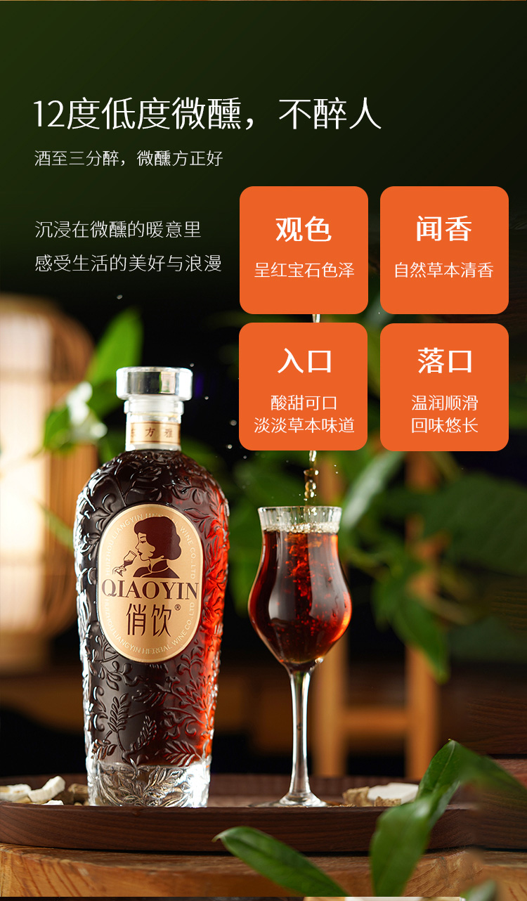 俏饮mini 芳韵温养草本酒礼盒装500ml*1瓶12度女士酒