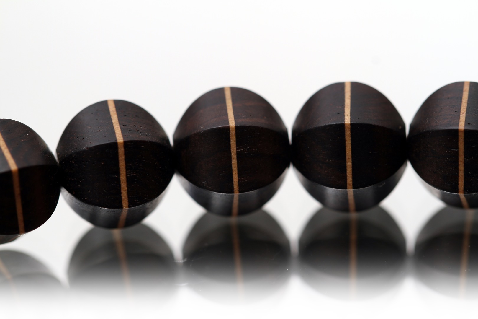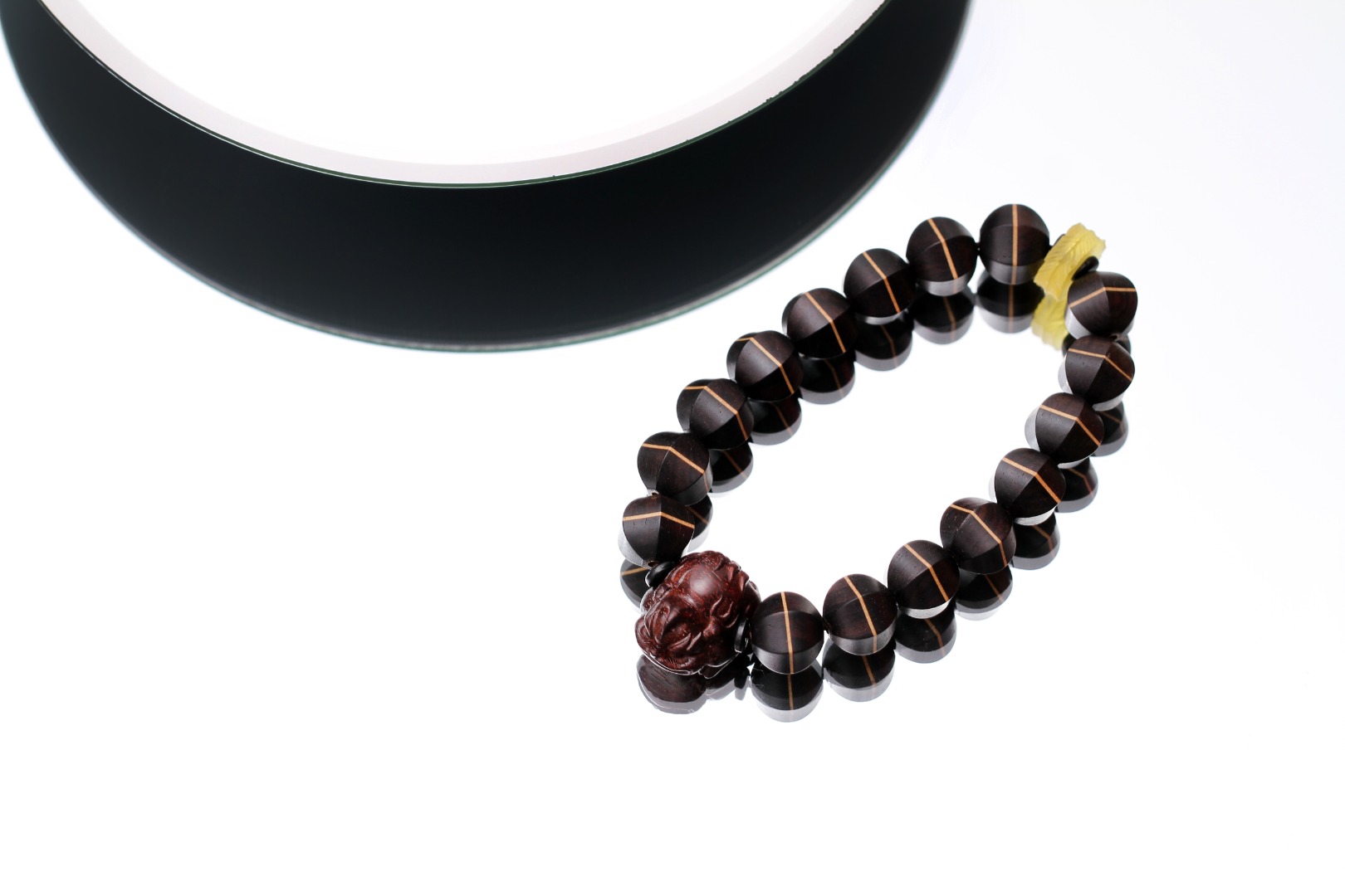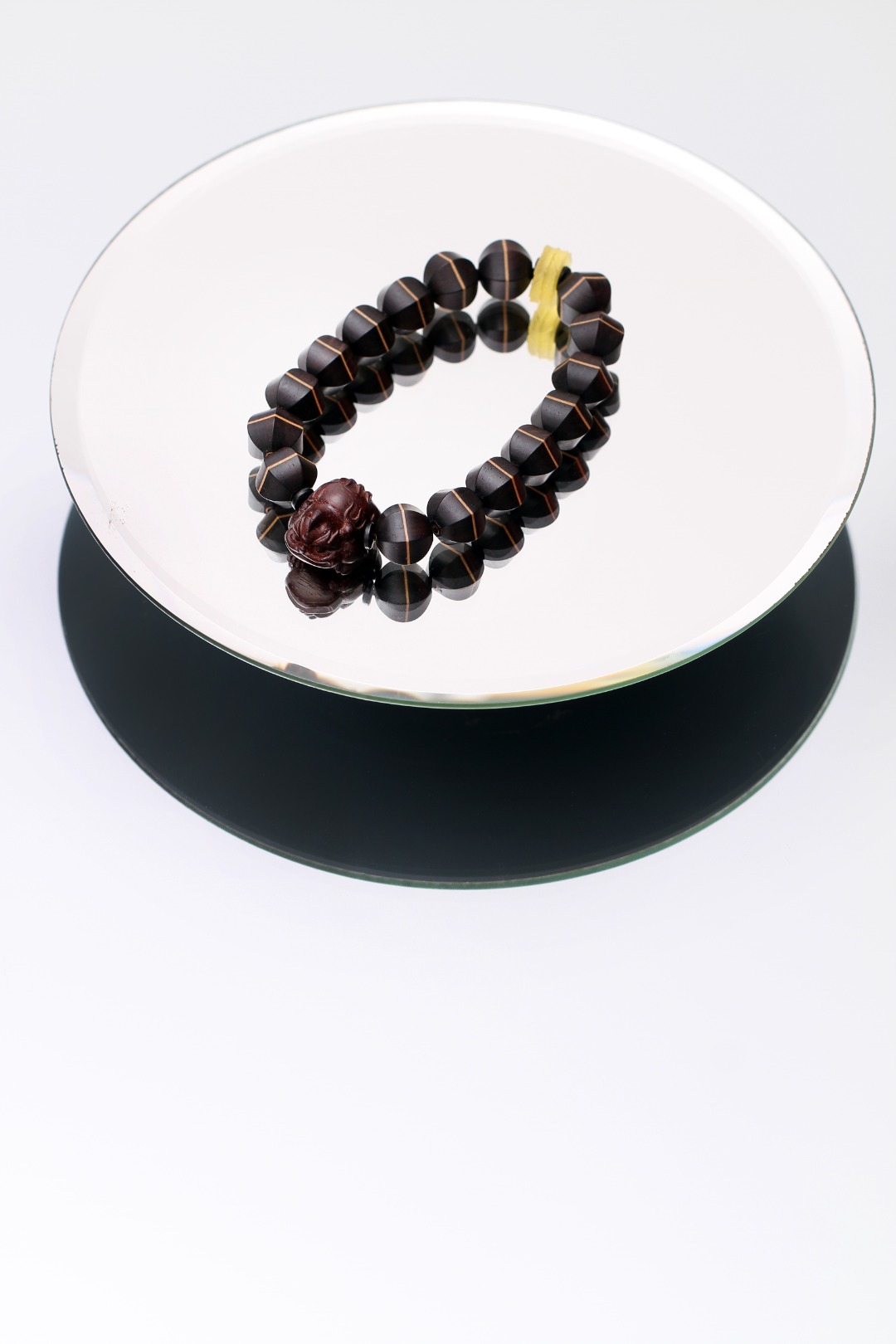 取紫檀&鹿角&银管制作而成的瓜棱双色珠,